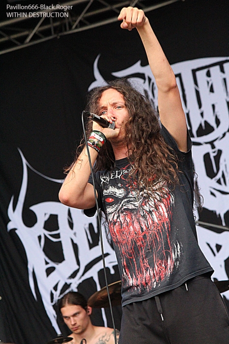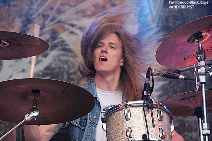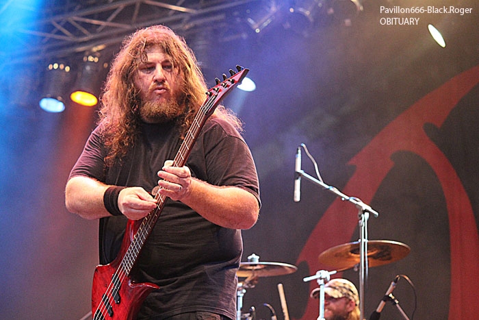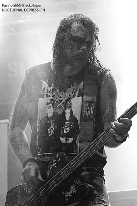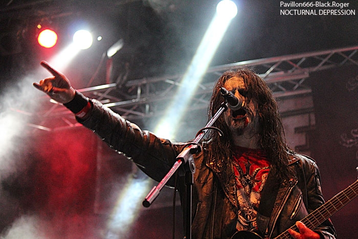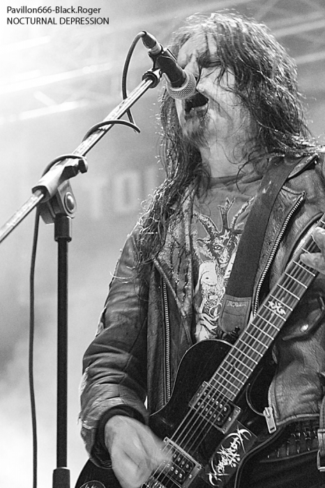 En ce qui me concerne j’ai tout d’abord rendez-vous à 16 heures backstage pour une interview avec NOCTURNAL DEPRESSION. Ensuite après 16heures20 le premier groupe à investir la mainstage se nomme WITHIN DESTRUCTION. Honneur aux Slovènes car ce groupe est originaire de Jesenice. Au menu du death avec une louche de riffs deathcore et une pincée de black. Et finalement la sauce prend bien avec ce jeune groupe formé en 2010. Jeune combo donc mais au caractère bien trempé qui a déjà enregistré un premier album (« From The Depths ») en 2012 et en prépare un second en ce moment. Le groupe a déjà ouvert pour Benighted et Suicide Silence et tiens bien la scène avec ses envois qui se révèlent pas mal du tout pour un début, on les encourage. Avec GOLD je ne savais vraiment pas à quoi m’attendre et la surprise est venue… de la chanteuse. Et pourtant les groupes avec chanteuses lyrique ne sont pas vraiment ma tasse de thé habituellement, mais là j’ai carrément accroché au heavy/dark de ce groupe Hollandais. D’accord, il y a cette voix particulière sombre et mélancolique, mais le power-rock énergique qui soutient l’édifice reste tout le temps puissant, intense et profond. Bref, c’est un groupe à suivre car il s’est engagé dans une voie particulière sortant quelque peu des sentiers battus du style « métal à chant féminin ». Allez, on suit avec du hard-rock, celui du trio Batave VANDERBUYST, trio que j’avais déjà vu au Hellfest je ne sais plus dans quelle édition. Mais aujourd’hui à Tolmin je n’accroche pas plus que la première fois à leur prestation, pourquoi ? Je ne sais pas en fait, peut-être que leur hard & heavy en trio manque de puissance et d’originalité, c’est bon sans être mauvais et au bout de quelques titres, malgré les riffs et soli convenus de Wilhem je me lasse tout simplement. Rien d’autre à dire sur ce groupe, sorry… Et maintenant en provenance de Tampa en Floride, voici un groupe vétéran du death en passe de devenir une légende avec un son qui lui est propre car reconnaissable dès les premières notes. Il s’agit bien sûr d’ OBITUARY. Les Floridiens se complaisent dans leur style et il ont raison, lourdeur, atmosphères glauques, titres qui restent imprimés dans votre matière grise pour longtemps. Le groupe est toujours meilleur en live, l’un des meilleurs groupes de death sur scène vous l’aurez comprit. Le noyau dur constitué des frères Tardy, John et Donald, et de Trevor Perez maintient le cap contre vents et marrées et autres changements de line-up. C’est un inconditionnel du groupe qui vous parle, alors difficile d’être à 100% objectif, mais reconnaissez que Obituary est un groupe qui après 30 ans de carrière vous remonte toujours les intestins au cerveau, et pour longtemps encore je l’espère. Le set se termine par le début, entendez par là avec « Slowly We Rot » enregistré en 1989, un titre inoubliable parmi tant d’autres. Alors bavez en lisant la set-list de ce soir à Tolmin et « Inked In Blood » préfigure le nouvel enregistrement à venir, que du bon vous dis-je. Set-list : Stinkupuss, Intoxicated, Bloodsoaked, Gates To Hell, Infected, Visions In My Head, Violence, Chopped In Half, Turned Inside Out, Body Bag, Back To One, Killing Time, The End Complete, Dead Silence, Inked In Blood, I’m In Pain, Slowly We Rot. Allez hop, à 20heures50 direction la seconde scène pour du black, celui des Français de Grenoble NOCTURNAL DEPRESSION. Nocturnal Depression qui fait figure de pionnier dans le style black dépressif, avec des ambiances bien tourmentée, des riffs dissonants des 90’s comme le faisait Forgotten Tomb à ses débuts au final. Ce soir si vous rentrez dans cette ambiance suicidaire aux accents doom et parfois heavy, vous aurez du mal à en sortir. Votre « moi » intérieur en prendra un coup car le groupe possède l’art et la manière de vous disséquer les neurones et de vous emmener dans une certaine noirceur d’où vous risquez de ne pas en sortir indemne. Compositions travaillées et peaufinées, présence forte procurant une certaine oppression, ce groupe opère dans l’ombre avec passion et doigté, alors laissez-vous guider et suivez de près leur aventure originale et conceptuelle vous ne le regretterez pas. Le set de ce soir ne fut qu’un préambule en fait, alors si vous avez aimé, allez plus loin avec cette horde maléfique. A 21heures30 sur la mainstage nous avons droit à BORKNAGAR venant de Bergen en Norvège. Depuis une vingtaine d’années la formation navigue entre black et folk, entre le chant clair de ICS Vortex et les « growls » de Vintersorg. Il est difficile d’entrer dans leur jeu aux dérapages progressifs, mais une fois entré dans leurs compositions inter-stellaires, nous voyageons entre Viking metal et envoûtement symphonique et féérique. Borknagar surprend donc mais vous interpelle fatalement au bout d’un moment pour peu que vous soyez ouverts à la richesse de leur musique et de leurs chants, moment magique donc ! Set-List : The Genuine Pulse, Oceans Rise, Epochalypse, Ruins Of The Future, Ad Noctum, The Eye Of Oden, Dauden, Drum solo, Frostrite, Universal, The Dawn Of The End, Colossus. Tiens, allons voir maintenant sur la seconde scène les vieux briscards du heavy-metal MANILLA ROAD, groupe du Kansas formé en 1977, c’est bien loin tout ça! Après 16 albums le groupe tient encore debout et devrait être respectable dans cette veine heavy US, alors respect, mais avouons que le quatuor fait figure de ‘has been’ en live. On écoute et l’on regarde par curiosité leur prestation mais leurs titres ne nous resterons pas en mémoire c’est certain. Le principal c’est qu’ils se fassent plaisir, quant à nous… Il est 23heures15 et SATYRICON nous attends maintenant sur la mainstage. Les ayant vu en live x fois notamment en Décembre dernier à Genève, Suisse, je sais à quoi m’attendre et me réjou