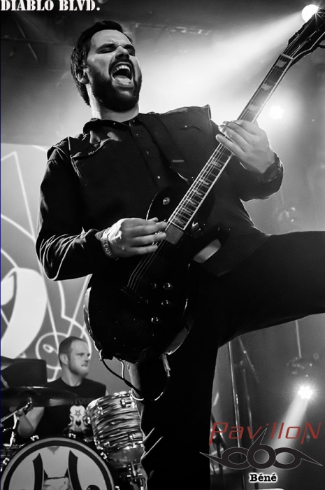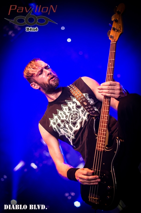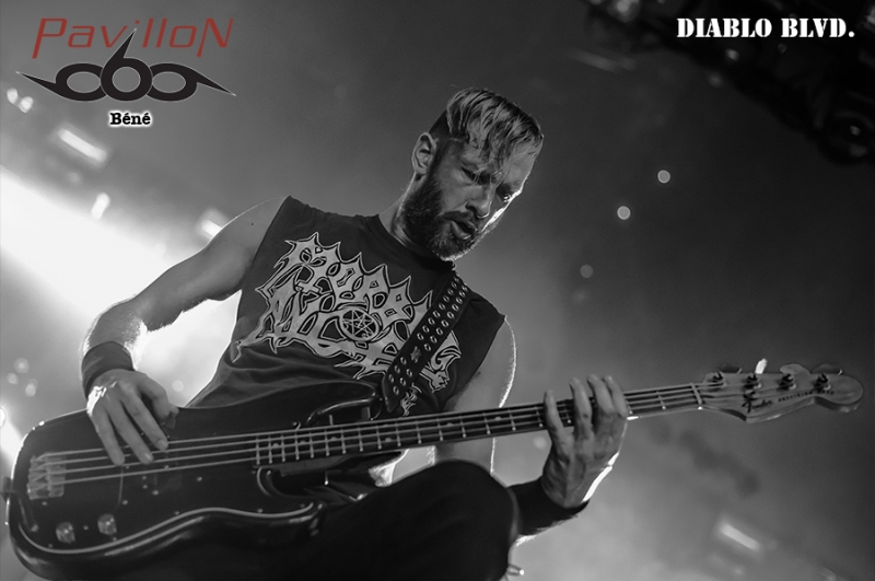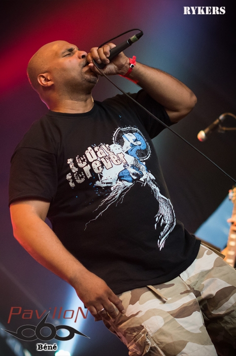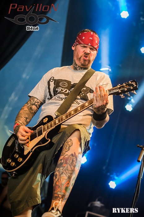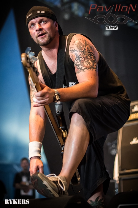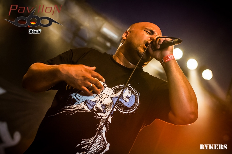 Pas vraiment le temps de se poser, les hostilités commencent avec les belges de RESISTANCE. Groupe que je ne connais pas (eh oui je ne peux pas tout connaître !). La couleur est annoncée c’est du modern death metal pour commencer cette journée, à nouveau sous une chaleur étouffante. On attaque par « The descent », extrait de l’album « TO JUDGE AND ENSLAVE ». D’entrée les belges nous mettent en condition, ils sont précis et ça envoie sévère. Chacun sait ce qu’il a à faire et le fait bien. Y’a pas à tortiller c’est du death pur et dur, ça flirte avec du Aborted ou du Dying Fetus. Le public est déjà conquis ça headbangue dans tous les sens. Olivier et Shaun, les guitaristes nous assomment à coup de riffs acérés. Xérus maîtrise son chant parfaitement, il n’y a rien à redire. Que dire de Jonas le batteur ? Ce mec est peut-être une machine, ça tabasse, ça transpire mais ça ne lâche rien et ça se donne au maximum. Une belle énergie communicative qui fait de RESISTANCE une belle découverte et une très belle manière de commencer ce deuxième jour de fest. Tiens c’est cadeau, c’est la setlist : 1. The Descent 2. The Supreme Being 3. Traitor 4. Hordes Of The Damned 5. Nihil 6. Pointless Desire 7. Brutalized 8. Scars Never Die 9. F.Y.A. Dégoulinante de sueur (je te vends du rêve…), en raison des quasis 40 degrés dehors (imagine sous chapiteau avec la foule…), j’attends DIABLO BLVD. Le set commence. C’est loin d’être mauvais, techniquement c’est même bon. Mais il me manque quelque chose pour réussir à entrer dans leur univers…serait-ce…une pointe d’originalité ? DIABLO BLVD. ressemble à plein de choses que l’on connait déjà… Plus on écoute plus on se dit « Ah tiens on dirait ça ! ou ça ! ». Et c’est vraiment dommage…au final tout au long de leur set j’ai pensé à d’autres groupes… Il leur manque cette petite singularité qui pourrait leur donné une identité qui leur serait propre. Cependant, je ne passe pas un mauvais moment pour autant, et les titres s’enchaînent aisément : 1. Beyond The Veil 2. Builders Of Empires 3. The Virus 4. Fear Is For The Enemy 5. Saint of Killers 6. Rise Like Lions 7. Son Of Cain 8. Between The Hammer 9. Follow The Deadlights 10. Endless Reign 11. Legion 12. Black Heart Bleed C’est aux allemands de RYKERS de prendre le relais. Le moins qu’on puisse dire c’est que le groupe comme certains morceaux n’ont pas pris une ride. Dès le premier morceau ça jump et ça pogotte dans la foule. C’est toujours aussi efficace. On passe un bon moment, on sent l’envie du groupe de bien faire. Normal me diras-tu, quand on ressurgit de nulle part après 14 ans d’absence. D’autant qu’ils ne sont pas de retour les mains vides puisqu’ils ont sorti un nouvel opus il y a peu. Ils se démènent pour le défendre et ça fait plaisir à voir et à entendre, même si, je dois le reconnaitre rien de bien nouveau dans tout ça. Je me dirige vers la LAST ARENA (si tu suis mon périple, tu sais que c’est la grande scène). Au programme SKIP THE USE. Pas plus fan que ça, j’y vais pour la renommée et la réputation du groupe en live. Du coup je n’attendais qu’une chose : qu’ils se montrent à la hauteur de leur réputation. Et bien on en deviendrait presque fan dis donc ! Une prestation live béton. Un groupe qui a le smile et qui donne. Un chanteur MatBastard en grande forme et monté sur piles. Honnêtement ils ont mis le feu, de vraies bêtes de scène. Au moins 80% des festivaliers étaient groupés devant cette scène délaissant les 7 autres. Matbastard c’est du sport pour le suivre, il part dans tout le sens, pas le temps de s’ennuyer. Il réussira même à faire bouger le public en bloc du devant de la scène jusque derrière le poste de régie. Juste énorme à voir. L’homme mène son public, joue et plaisante avec lui. Les autres membres du groupe ont la patate aussi et suivent MatBastard dans ses délires. Pour résumer tu l’auras compris, un show qui fait que tu repars avec le sourire aux lèvres. 1. 30 Years 2. Nameless World 3. Give Me Your Life 4. The Story of Gods and Men 5. PIL 6. Gone Away 7. The Wrong Man 8. People In The Shadow 9. Birds Are Born To Fly 10. Ghost 11. You Are 12. Être Heureux On se dépêche de retourner à la Cannibale Stage, pour assister à la prestation des toulousains de SIDILARSEN. Et ils vont nous livrer un show des plus réussis. Leur « Dancefloor Metal » est un rouleau compresseur qui se fait un malin plaisir à t’écraser sur son passage et à enclencher la marche arrière pour t’achever ! Didou emporte le public dans sa transe de folie furieuse. Il descend de scène pour être au contact de la foule. Le groupe est survolté. Riffs puissants, rythmes entrainants, chants maitrisés, et aussi et surtout une énergie de malade…la majorité des ingrédients nécessaires à un beau show… Il n’y a rien à ajouter c’était tout bonnement excellent musicalement et scéniquement parlant. SIDILARSEN nous a offert ce soir du grand, du très grand SIDI. 1. Comme On Vibre 2. Retourner la France 3. Surhomme 4. Le meilleur est à venir 5. La Morale de la Fable 6. Un écho 7. Matière première 8. A ton égo 9. Back to Basics 10. Paradis Perdu 11. Drum Solo Direction de nouveau vers la Last Arena pour la tête d’affiche du jour : WITHIN TEMPTATION. Là si tu veux ça m’a fait un peu le même effet que Soulfly. L’ado endormie en moi s’est réveillée. J’ai beaucoup écouté WITHIN TEMPTATION à une époque et ça me fait plaisir de pourvoir les voir en live. Leur déco de scène est déjà imposante, de gros ventilateurs dorés et leurs backdrops géants de dragons. Comme pour SKIP THE USE un peu plus tôt, les festivaliers se sont réunis en masse pour assister à la prestation des néerlandais. Lorsque Sharon fait son apparition, la foule hurle. Belle, souriante, elle est heureuse d’être là et ça se 