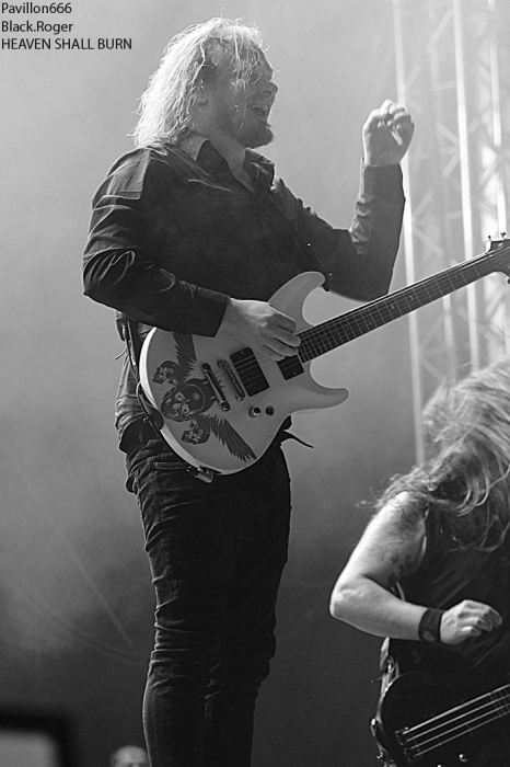 La bande à Bischoff et son métalcore « high energy » et tapageur tutoie les plus grands du style, si style il y a pour certains. Mais les riffs « core » sont reconnaissable tout de suite, la puissance métal soutient l’édifice. Rajoutez à cela une présence scénique incroyable, une touche de death mélodique imparable à la Suédoise et vous avez un concert incroyable. Petit plus, quelques effets pyrotechniques par ci et par là renforcent ce côté « punchy » qui fait un malheur en concert. Entre Killswitch Engage et As I Lay Dying, il y avait une place à prendre, et c’est donc Heaven Shall Burn qui s’y est installé pour le pire ou le meilleur, le meilleur assurément ce soir, géant !