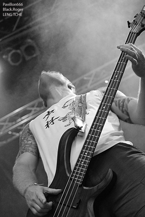 Et puis voici LENG TCHE qui débarque après 15heures de route depuis son port d’attache la Belgique. Après avoir vu deux formations somnifères je vais me prendre une « kecla dans la chetron » comme dirait mon ami le keupon fou car les grindcoreux belges ont la frite (facile celle-là !).