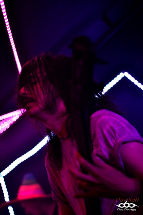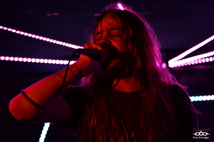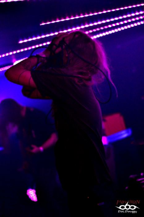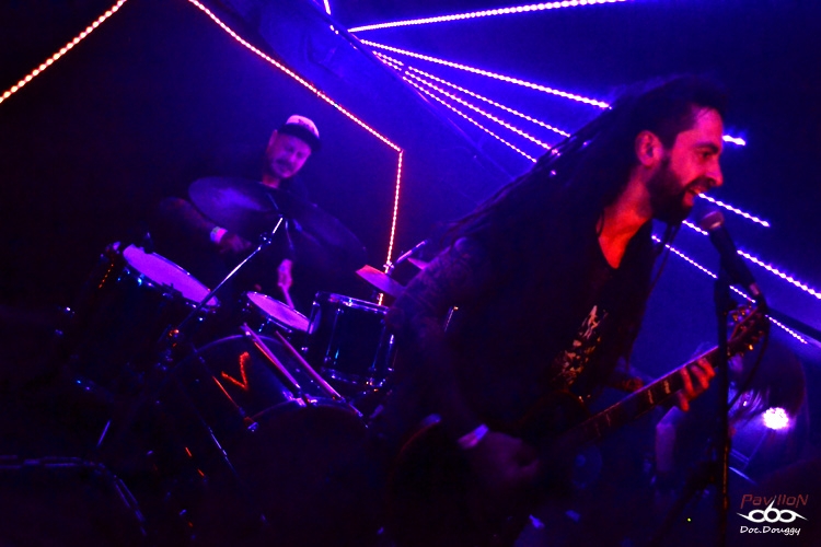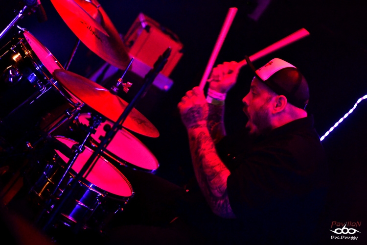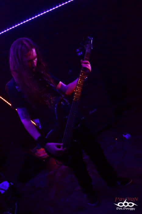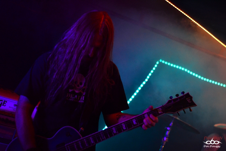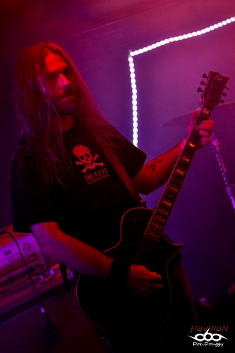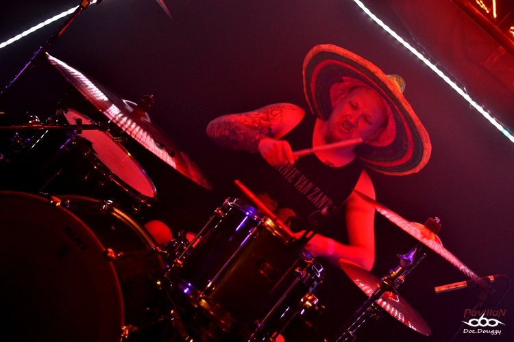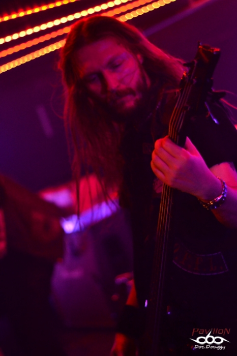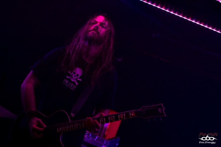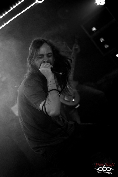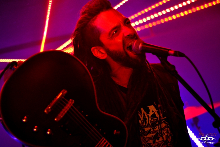Une fois n'est pas coutume, j'ai déjà eu l'occasion de vous parler de LUMBERJACK FEEDBACK lors de passages remarqués sur Lille (par deux fois cette dernière année). Point de nouveautés niveau setlist, avec un seul E.P "Hand of Glory" (pour le moment) en poche, mais toujours une expérience à vivre ! Les locaux de la Cave aux Poètes s'y prêtent bien, et la largeur de la scène permet l'exposition des deux batteries tenues par Nico et Oliv (ex-Smash Hit Combo), soutenues par la basse de Sebastien et les sessions guitaristiques d'Arnaud et Simon. Le son y est, et la salle comme la scène plongée dans le noir et envahie par la machine à fumée donne toute sa dimension chamanique et orchestrale aux bûcherons, pour peu que l'on passe, pour une fois, sur les quelques "pains" de rythmique... Car, même si il est bon de jouer dans la pénombre, on en est pas à l'abri ! Mais je fais la fine bouche, car lorsqu'on est pris dedans, on ne peut que féliciter le travail effectué par les Lillois qui, en l'espace de 30 minutes vous transportent dans leur univers fataliste et pessimiste, comme le prouvera un public hypnotisé qui en un seul et même homme hôchera méchamment de la tête lorsque "The Dreamcatcher" retenti. L'occasion aussi de jouer ce set une dernière fois avant de préparer le nouveau qui je l'espère fera gronder les murs du Grand Mix en octobre. Et cette fois-ci, pas de guest, mais un Nico qui hurlera, possédé, dans ses micros de batterie et donnera des frissons à ce même public, conquis. THE LUMBERJACK FEEDBACK : une valeur sûre dont on a pas fini d'entendre parler. Rendez-vous est pris en Octobre pour l'ouverture d' Orange Goblin et Saint Vitus. Dopethrone ayant obtenu son visa pour aller outre-manche démarrer sa tournée Européenne, il était logique pour eux d'être accompagnés par un groupe Anglais et ce sont donc les GURT qui enchaînent sur la scène de la Cave aux Poètes. Auteurs d'un second album aux accents bien gras "Horrendosaurus" est donc logiquement présenté à un public qui atteint tout de même la cinquantaine ce soir. Le quatuor évoluant dans un registre "Sludge'n roll" est plutôt intéressant, autant que le sombrero arboré fièrement par leur batteur, qu'il réussira à garder sur la tête durant tout le set. 40 minutes de set suffisent à me conquérir pour un groupe bien en place, leur chanteur "Growth" qui comme son nom de scène l'indique enchaîne plutôt bien growls et vociférations dignes d'un T-rex en pleine charge quand il ne met pas son câble autour du coup pour imiter le pendu et répondant aux acclamations des "F****G awesome ! " de certains protagonistes dans le public. Une très bonne découverte pour un groupe, qui sans aucun doute devrait continuer à faire parler de lui. Après un début de tournée dans de bonnes augures, même si d'après Carl (batterie) "le public Anglais est très stoïque", DOPETHRONE près d'un an après leur première venue sur le vieux continent remet le couvert et la date à Roubaix est la 4e d'une série de 3 dates Françaises. Leur sludge à la Iron Monkey a trouvé une paire de fans, et ça s'affaire devant la scène pour voir le trio déferler leurs textes emplis de drogues et autres substances illicites, sur les vociférations de son chanteur/guitariste Vincent, toujours aussi possédé et jouant avec son instrument quand il ne hôche pas la tête sur le côté telle une marionnette. Appuyée par une session rythmique très proche du hip-hop et un groove sans faille de Carl (qui joue toujours avec ses baguettes à l'envers) et la basse de Vyk qui fait vibrer les murs... et les tympans ! Car le son, même si bien calibré entre ses protagonistes, reste relativement forts pour peu que l'on soit pas protégé... Côté playlist, pas de nouveautés, celle-ci tournant surtout autour des deux derniers albums (sur 3) du groupe: "Dark Foil" et "III", l'annonce avant "Hooked" de Vince "La prochaine chanson ne parle pas de drogues... Mais non, Je plaisante !!" fait sourire tout le monde et celui-ci communique souvent avec son public profitant de l'utilisation de notre bonne vieille langue avec leur accent. Un nouveau morceau fait son apparition "Riff Dealer" et celui-ci reste dans la même veine que les autres compos du groupe, si ce n'est pas encore totalement maîtrisé le trio devant se regarder plusieurs fois durant le titre pour éviter de se perdre dans la bouillie sonore... Set de 60 minutes qui en passeront pour deux, les Québécois nous quittent sur "Lingering Primate" après les acclamations et demandes de rappel, qui feront aussi louper le dernier métro pour les moins chanceux. Mais quand on connaît l'extrême sympathie dont fait preuve le groupe, on a du mal à partir avant la fin ! SETLIST : Tap Runner / Dry Hitter / Hooked / Porcelain God / Rzeverb Deep / Devil's Dandruff / Dark Foil / Bullets / Zombie Powder / RiffDealer. Rappel : Lightning primate. Une tournée qui s'est parfaitement déroulée, un plateau plutôt intéressant pour une date chargée en "fumée" qui mettra aussi fin à la saison Lilloise (et accessoirement nous préparant pour les festivals estivaux) , DOPETHRONE et GURT profiteront encore de l'accueil Lillois et y reviendront quelques jours plus tard récupérer le reste de leur merch', qui a pris du retard dans la livraison, mais ça c'est une autre histoire ! En tout cas, un grand merci aux Bûcherons, qui je l'espère nous réservent un nouveau set du tonnerre, mais aussi à GURT pour la découverte et le retour dans nos contrées de nos cousins éloignés d'Outre-Atlantique. Mais surtout bravo à la Cave aux poètes d'avoir accepté de programmer cette affiche dans leurs murs (ainsi que pour l'invitation), à Dead Pig pour sa confiance en la scène stoner/doom/sludge en espérant revoir les Québécois une nouvelle fois, car comme ils diraient chez eux : "Ostie !", pour nous c'est plutôt : "Jamais deux sans trois !" |