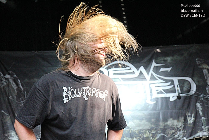 Leur thrash/death est sans surprise mais d’une efficacité redoutable en live et le public ne s’y trompe pas en s’éclatant devant la scène avec les coups de boutoir de riffs assassins assénés par les deux guitaristes. Leif domine le tout énergiquement et la prestation de nos cousins Germains va ravir le nombreux public collé aux barrières devant la scène. Merci Dew-Scented encore une fois, ce fut bien bon et bien apprécié.