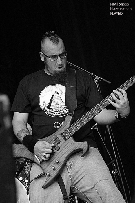 Mais une demi-heure plus tard, c’est FLAYED qui prend la suite pour nous offrir du bon gros rock n’roll vintage labellisé 70’s. Dans le line-up on retrouve deux membres de GOD DAMN, Renato au chant et Charly à la basse. Vu au Nnkasi Kafé de Lyon l’hiver dernier, le groupe ne m’avait pas emballé outre mesure. Mais là, aujourd’hui sur la grande scène du Sylak, avec du gros son et un frontman enragé, tout est différent. Ce frontman qui ira même jusqu’à slamer depuis la scène ,par delà les barrières pour atérrir au milieu d’un public conquit, ça c’est certain. Mis à part ce saut de l’ange spectaculaire, le groupe nous a offert 30 minutes de rock classique certes, mais puissant, électrique et énergique, bravo !