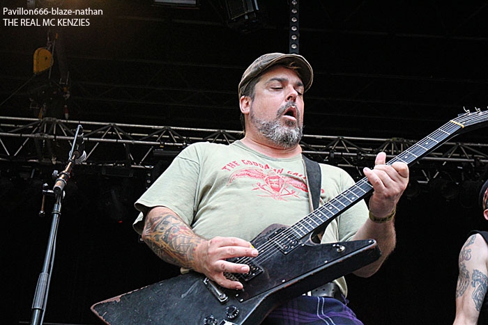 On saute du coq à l’âne avec maintenant du folk/métal Ecossais en provenance de Vancouver au Canada. Mais pas n’importe lequel, c’est celui de THE REAL MC KENZIES. Pour le genre ce serait plutôt du celtic punk. 20 ans que ces mecs en kilt mettent l’ambiance partout où ils passent et ce sera la même chose en cette fin d’aprés-midi au sylak