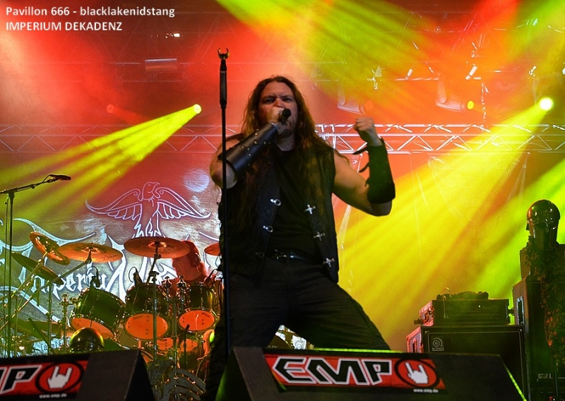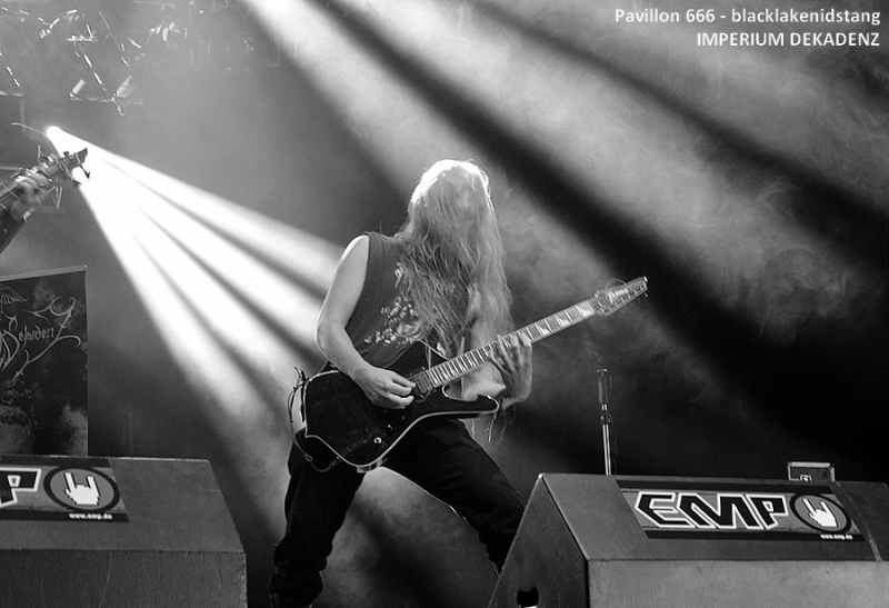 C’est alors que la plus belle découverte du weekend est apparue sous mes yeux : IMPERIUM DEKADENZ. Jouant un superbe atmospheric black, ce groupe allemand a su me captiver de bout en bout, me donnant envie d’entendre leur discographie entière sur scène. La surprise aura tout de même été de n’entendre aucune partie claire puisqu’il m’avait bien semblé qu’il en existait, ayant écouté quelques uns de leurs morceaux quelques jours avant de partir.