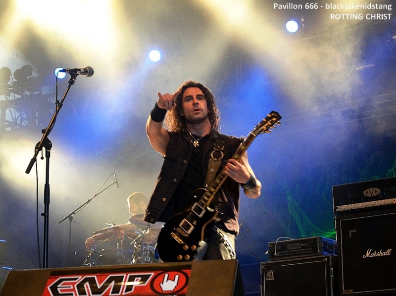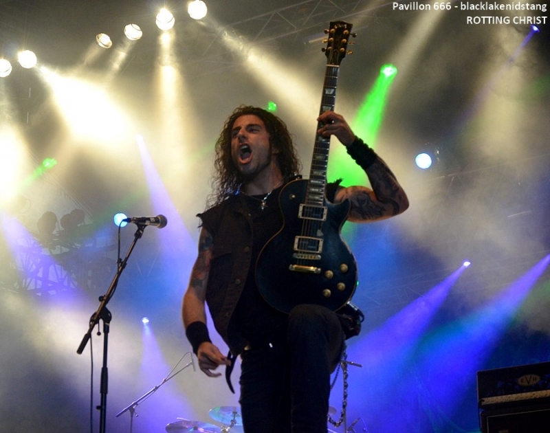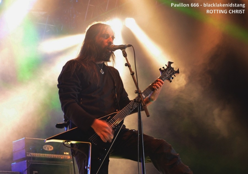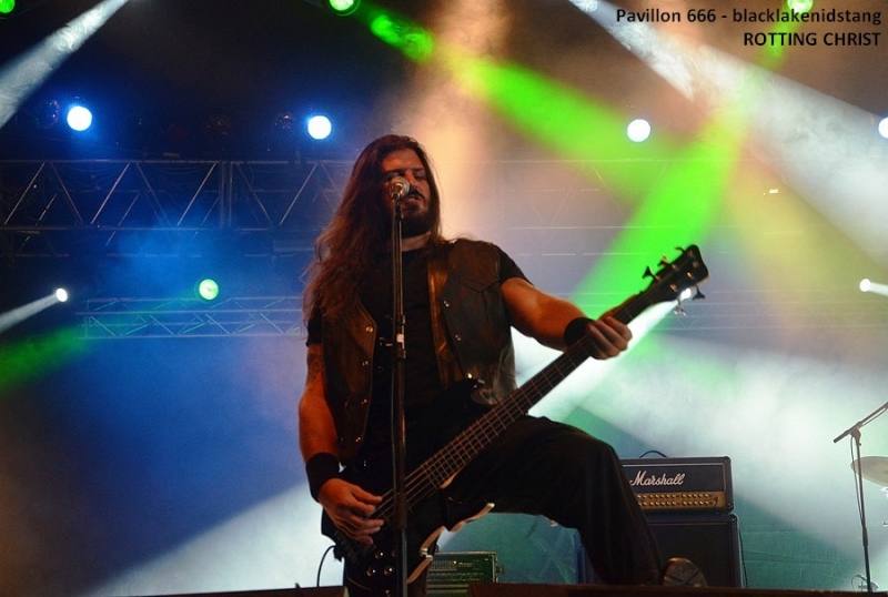 ROTTING CHRIST était ainsi le premier groupe grec à fouler la scène avec le morceau "666"… quelle énergie, quel jeu de scène ! Quels bons morceaux, quel moment pour se défouler et headbanguer à s’en déchirer la nuque ! Pour faire simple, c’était sûrement le moment le plus chaud de ce weekend d’été bien trop frais… et ce n’est pas avec "In Yumen-Xibalba" que j’ai pu me calmer, morceau parfait pour attiser la foule et leur donner envie de rentrer dans une secte occulte grecque à la gloire de Hadès. Avec son melodic black metal rempli de mélodies méditerranéennes et de répétitives paroles proches de litanies, il me semble que Rotting Christ est devenu l’un des groupes que j’aime le plus voir en live.