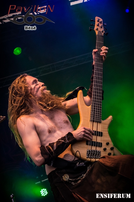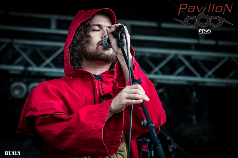 Le set commence avec « The Raven’s cry », alors que la pluie, qui a déjà bien pourri les stages pendant HUATA, revient et pas qu’un peu. Un peu trop même semblerait-il puisque des trombes d’eau tombent de la bâche supérieure.