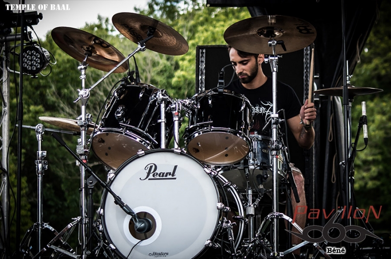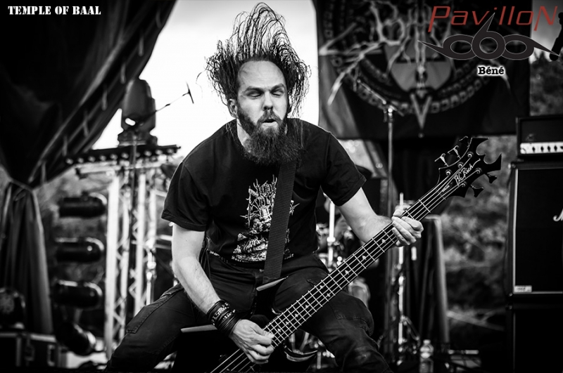 C’est TEMPLE OF BAAL qui prend le relais sur la Dave Mustage. Malheureusement pour eux ils vont être victimes de soucis techniques. En effet, de gros problèmes de sons surviennent, le chant est quasi inaudible en début de set. Et ça ne s’arrêtera pas là puisqu’à plusieurs reprises des variations vont avoir lieu passant brutalement du fort au moins fort.