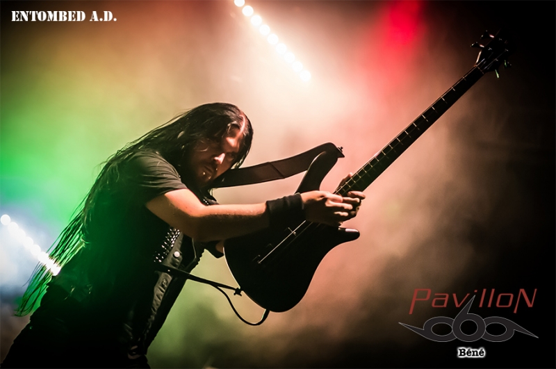 Les suédois d’ENTOMBED A.D. prennent d’assaut la Dave Mustage. Première fois que je les vois donc pas vraiment d’élément de comparaison entre Johan, le nouveau gratteux, et Alex Hellid, l’ancien.