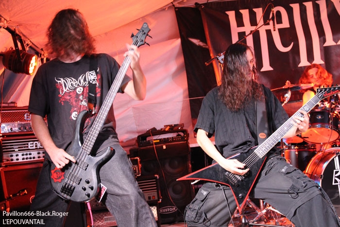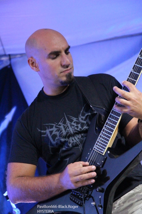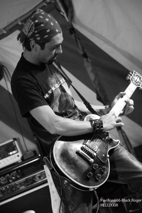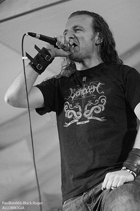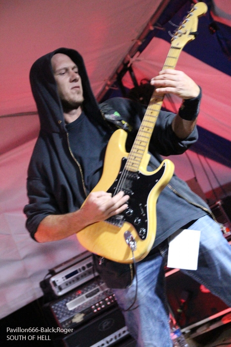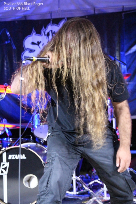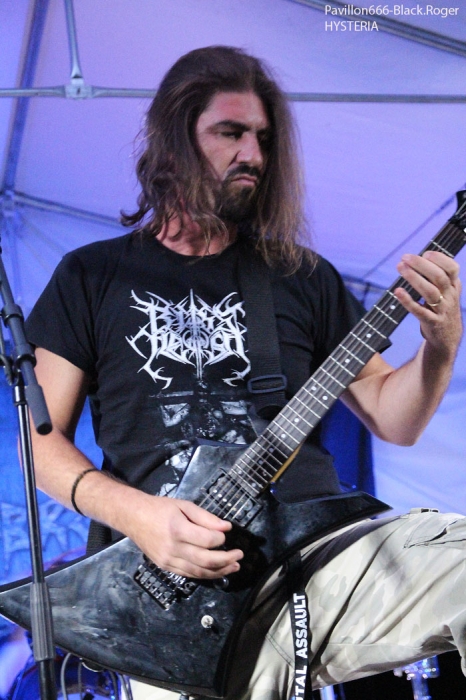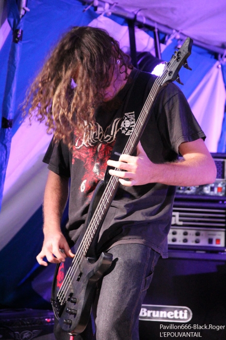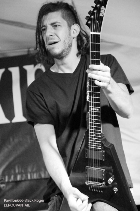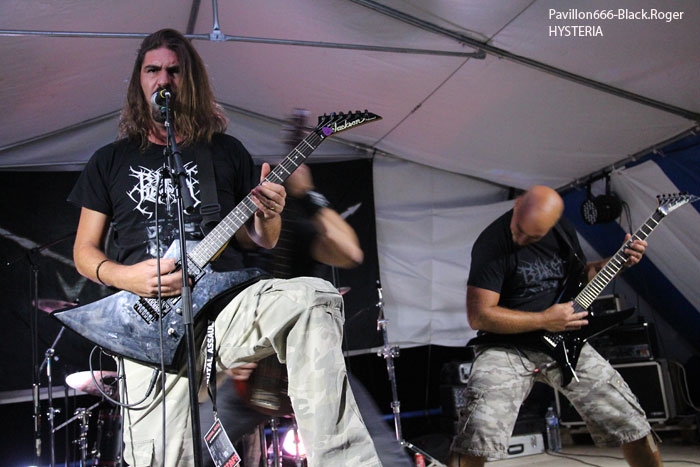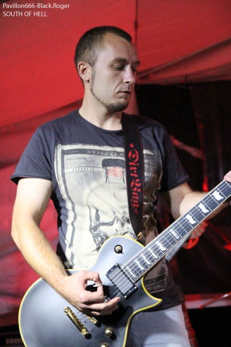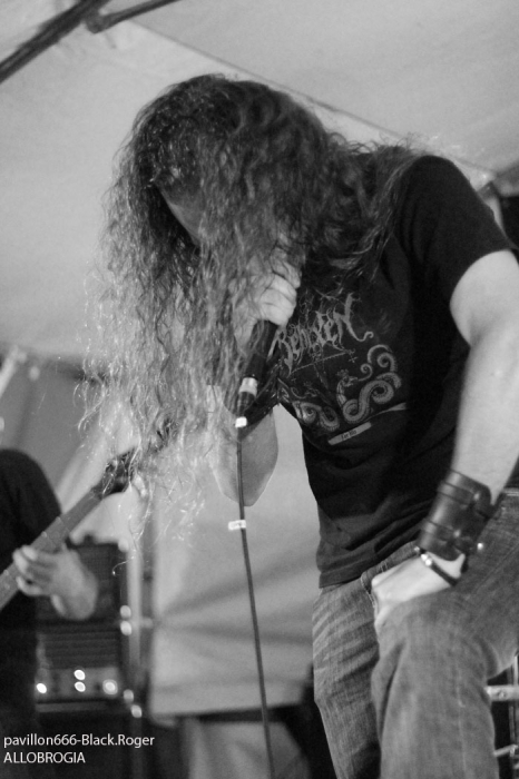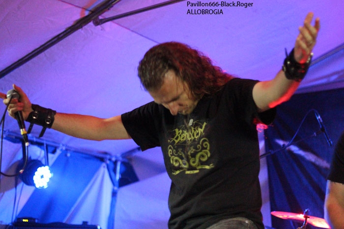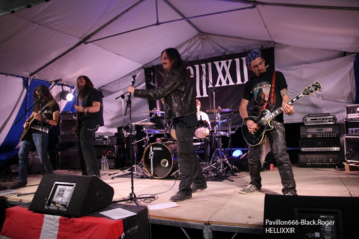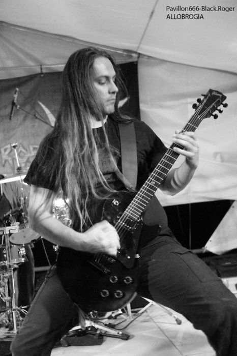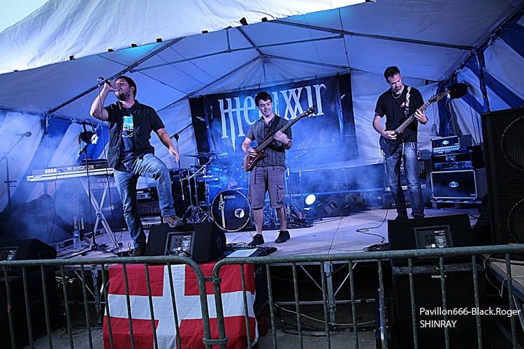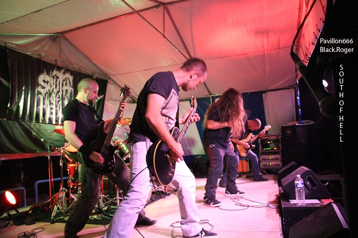 La guinguette de Vions en Chautagne, Savoie, située au bord des étangs du Rhône a ouvert ses volets, ses portes et mis à disposition le terrain bouliste pour accueillir ce samedi 13 Septembre le Metal Circle Open Air organisé par Fargio de South Of Hell et aidé par de nombreux bénévoles dévoués à la cause métal. Au menu de la soirée, à part les saucisses, les merguez et les boissons houblonnées, 6 formations connues et reconnues qui vont se succéder sur une scène bâchée en plain air donc. Outre les stands de boissons et nourriture, un stand de merchandising est proposé par Adipocère. La guinguette en elle-même propose aussi son bar et ses « sofas » au public. Un public en nombre qui a répondu présent ce soir pour ce concert de « rentrée » après l’été festivalier. A 19heures 30, les Grenoblois de SHINRAY invitent le public à se rapprocher de la scène car ils sont prêts à nous envoyer leurs compositions de heavy-metal teintées ,de prog ,et de thrash. L’affiche de ce soir étant plus ;axées métal extrême il va falloir convaincre l’auditoire. Chant clair, claviers, guitare, basse, batterie composent la formation Iséroise. Le groupe va devoir subir dans un premier temps des aléas techniques et électriques, MAIS LE QUATUOR NE SE DEMONTE PAS POUR AUTANT. IL VA NOUS PROUVER QU’IL SAIT JOUER ET VA NOUS DEMONTRER QUE LES BONNES CRITIQUES DE LA PRESSE METAL FORMULEES LORS DE LA SORTIE DE LEUR PREMIER ALBUM « Stage 01 » en Novembre dernier étaient bien fondées. Riffs énergiques, soli maitrisés, claviers opportuns et chant peut-être à travailler encore un peu, nous font rentrer dans leur univers musical particulier. Bonne prestation en tous cas ce soir. Changement de registre avec le show mouvementé des Annéciens de L’EPOUVANTAIL qui ont de l’énergie à revendre, mais pas que… Leur mélange de death, thrash et « core » dans une veine deathcore pour faire simple fait mouche. EMILIE SE LÂCHE MIEUX MAINTENANT EN LIVE, LES AUTRES MUSICIENS AUSSI, ILS ONT ENORMEMENT PROGRESSE EN DEUX ANS. Leur premier EP « Agora » paru en Octobre 2013 à l’occasion de la première partie effectuée au concert de THE ARRS au Brise-glace d’Annecy ,était ,un premier ,enregistrement assez réussi, leur prestation de ce soir aussi. Le quintette Annécien a de beaux jours devant lui et ce n’est pas ,l’ambiance de « ouf » devant la scène qui viendra contredire ce fait à la guinguette de Vions, on aime tout simplement. C’est HELLIXXIR de Grenoble qui va prendre la suite devant nous. HELLIXXIR n’est pas un groupe nouveau en fait, mais j’étais curieux de revoir la formation Iséroise avec notamment un nouveau chanteur Alexandre. Ce chalteur qui excelle dans les « growls ». Bien entendu les compositions restent bien orientées thrash, mais le groupe est devenu plus death, plus puissant aussi. TRAVAIL REMARQUABLE DES GUITARISTES, DUO BASSE-BATTERIE IMPLACCABLE, LE GROUPE SURPREND DONC ET A BIEN EVOLUE AU FIL DES ANS (et des line-up). HELLIXXIR m’a donc surprit ce soir, dans le bon sens du terme évidemment et je pense ne pas avoir été le seul dans ce cas là. Fargio, guitariste de SOUTH OF HELL nous avait promis du lourd ce soir et effectivement le gros death qui tâche des Savoyards de Chautagne s’est abattu sur nous sans crier gare. Si vous aimez la pesanteur morbide d’un CANNIBAL CORPSE et la technicité d’un DYING FETUS, alors vous allez être servis par les compositions de SOUTH OF HELL. Compositions que vous retrouverez bientôt sous la forme d’un album bien remplit de métal-de-la-mort-qui-tue. LE QAUINTETTE SAVOYARD NE FAIT PAS DANS LA DENTELLE ET NOUS BALANCE DES TITRES PLUS VICIEUX ET PERCUTANTS LES UNS QUE LES AUTRES. CAR CHEZ EUX NOUS SENTONS UN DEATH-METAL VISCERAL PROPULSE PAR UN SON ENORME, UN MUST DANS E STYLE VOUS DIS-JE ! Alors, nous avons adhéré pleinement à leur show bien maitrisé ce soir qui nous a donné un avant-goût du tréfonds des enfers (sic). On les encourage pour la suite, et plus de prestations scéniques de cette qualité seraient les bienvenues, cela en guise de critique et conseil. Restons dans le brutal death auréolé d’une pointe de black sous-jacent avec les Lyonnais d’HYSTERIA. Un nouvel album « Flesh, Humiliation et Irreligion Deviance » est sur les rails, mais profitons là tout de suite ce samedi soir 13 septembre de la prestation de groupe fidèle au métal extrême depuis l’an de grâce 1996. HYSTERIA donc où comment allier mélodie et rage, comment mixer des influences toujours présentes d’un VADER, d’un NILE, mais aussi d’un BEHEMOTH avec ce brutal death technique transpirant une certaine haine aussi. LE GROUPE NOUS PROPOSE UN DEATH SANS CONCESSION DONC QUI VOUS REMUE LES TRIPES ET VOUS INFECTE LE CERVEAU, UN METAL MORBIDE COMME ON L’AIME AU BOUT DU COMPTE. Alors ce soir HYSTERIA n’a pas failli à sa réputation et nous a fait entrer dans l’antichambre de la mort tout simplement, merci le gang des Lyonnais. Bien, les gars, vous n’avez pas faiblit dans l’assistance, il est largement minuit passé mais ALLOBROGIA doit vous faire profiter de son concert au Metal Circle Open Air. ALLOBROGIA nous vient de Savoie (Sabaudiae ), de Chambéry (Lemencum) exactement et se lance depuis peu dans les prestations en live dont celle remarquée en Juillet dernier en ouverture d’INQUISITION au Brin de Zinc à Barberaz Comme vous l’aurez comprit ALLOBROGIA est un groupe de black-métal s’inspirant de l’histoire des fiers guerriers Allobroges qui peuplaient la Savoie en période gauloise ou celte. Au-delà de ces considérations historiques, que fait cette horde musicalement parlant ? Et bien leur black tient bien la route (666) et la langue utilisée est l’arpitan, vieille langue du pays de Savoie qui contient des sonorités se prétant tout à fait au pagan-metal. NOUS RETROUVONS DANS LES COMPOSITIONS UNE CERTAINE VIVACITE, DE LA FORCE ET DU COURAGE BIEN TRADUIT
