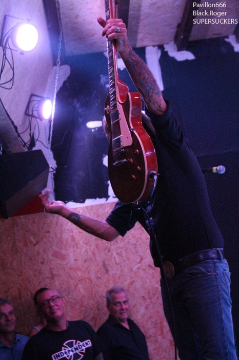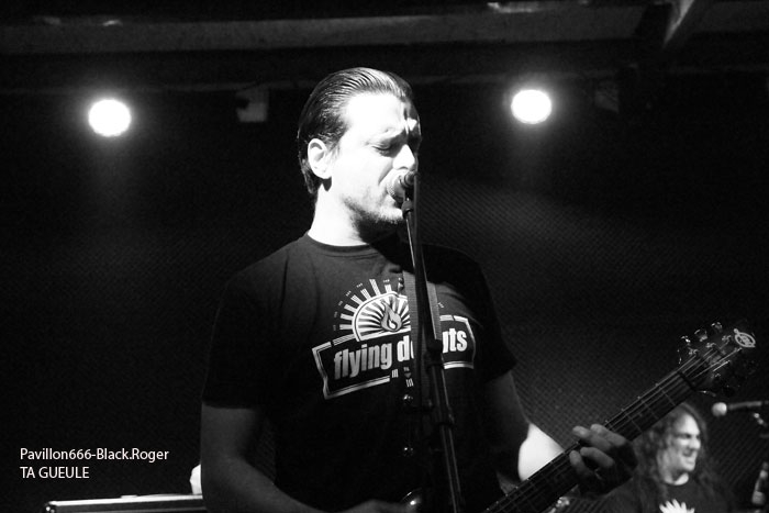 Pbox concerts et le Warmaudio ont bien senti les choses en nous proposant cette petite « sauterie » rock n’punk de rentrée, merci à eux ! Pas le temps d’avaler les frites que déjà à 19heures 30 précises HYSTERY CALL lance le son. Content de les revoir sur scène en ce qui me concerne. Ce trio de garage-psycho-surf-rock n’roll valant toujours le déplacement de puis 20 ans déjà, comme le temps passe ! Contrebasse électrique pour des « slaps » d’enfer, une fille qui fait hurler sa six cordes et un batteur plombant le tout, haut de forme et tenues décalées lorgnant vers les fifties, flirts occasionnels avec le métal, soli décalés au menu aussi, vous avez tout comprit au film vous les rockers invétérés lorgnant vers le rockabilly et le psychobilly, ouf ! Cette longue phrase dit tout en fait. Dommage que leur prestation ne dure que 30 petites minutes. Ce fut court mais intense comme on dit dans ces cas là je crois. Un autre trio prends la suite dans une veine plutôt anarcho-punk-rock ou thrashcore et grind pimenté à la sauce wasabi, alors TA GUEULE ! Oui, les fameux rockers sales et subversifs lyonnais vont encore frapper ce soir. El Conservator provoque derrière son micro, se rit de tout pour mieux le dénoncer sur une musique sauvage, brut de décoffrage qui vous met des aiguilles dans les neurones. Alors tout y passe avec les brûlots extraits de leurs deux « méfaits » discographiques, « Destockage Massif » (2010) et « Surpuissant » de 2011. Voici « Tricastin », «Mangez-moi les Burnes », « Strangulation Masturbatoire » et « Jonagym » entre autres. Un nouveau titre « religieux » nous sera présenté avant qu’il n’apparaisse sur leur nouvel effort à paraitre sous peu. Comment, leurs propos te dérangent, leurs vérités te réveillent, leur piquant verbal fait mal à certains endroits, alors ta Gueule ! En effet il faut « Boire ou Servir », te défoncer en «Hardcore >Muscles et Karaté » et bien sûr être contaminé par la « 666philis ». Bon, qu’est-ce que je raconte moi, TAGUEULE n’a pas réussi cependant à faire bouger le public de ce soir alors que dans les caves de la Croix-Rousse à Lyon tout le monde dégouline de sueur, est en plein mouvement à leurs concerts. Mais bon, je pense que toute l’assistance a apprécié mais se réservait sûrement pour la tête d’affiche de la soirée, on ne leur en veut pas ! Cette tête d’affiche accueillie à cor et à cris n’est autre que le quatuor burné SUPERSUCKERS originaire de Tucson, Texas aux states. Le quatuor pratique depuis deux décénies un certain (hard)rock aux dérives punk et country à l’occasion. Lemmy de MÖTÖRHEAD a dit d’eux, je cite « If you don’t like The Supersuckers, you don’t like rock n’roll », amen ! Dés que les rockers entrent en scène avec le chanteur Eddie Spaghetti arborant un « stetson » et des « ray-ban » noires avec ses acolytes au look particulièrement rock mal rasé, vous vous dites qu’il va se passer quelque chose. Ca ne manque pas, le rock, le vrai, celui qui vous colle à la peau, celui qui sent sous les bras, ils connaissent. Le son est fort mais bien dans le « trip » de la soirée avec des compositions binaires à souhait qui ne peuvent que vous prendre aux tripes, bien plombées, bien groovy, comme on l’aime quoi ! Et leur prestation fait mouche et déclenche inévitablement les flots de sueurs au premier rang. Il fait donc chaud dans le « warm » (pléonasme ?), quelle ambiance de « ouf » on aime. Supersuckers est un peu un «monstre » du rock depuis une vingtaine d’années et pas moins de 10 albums au compteur, rendez-vous compte. Pour ceux qui ne connaissent pas on pourrait comparer leur musique à un mix de BAD RELIGION, SOCIAL DISTORTION et THE RAMONES, oui mais avec un côté un peu plus hard-rock et dérapages métalliques. La sauce a encore prit ce soir avec un public aux anges (au diable pardon !) et le seul regret c’est de n’avoir pas eu de rappel, dommage. Mais ne crachons pas dans le bourbon ricain, nous avons eu quand même notre dose de rock plein de distortions et gras à souhait, que demander de plus ? Au final, une soirée réussie avec des formations qui ont assuré, un public en nombre et une bonne ambiance rock tout simplement. Une soirée à laquelle on aimerait bien participer encore plus souvent, quel régal ! Merci encore aux organisateurs, au Warmaudio et aux musiciens bien entendu. |