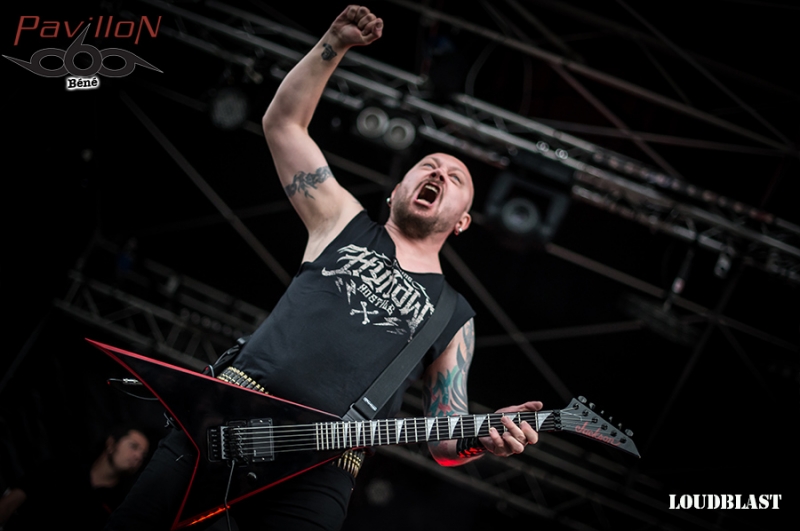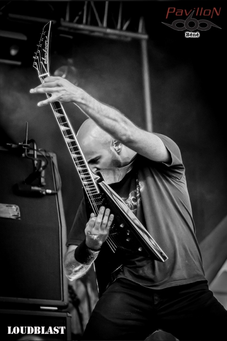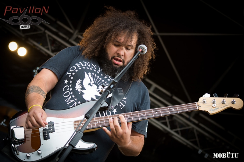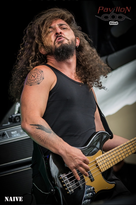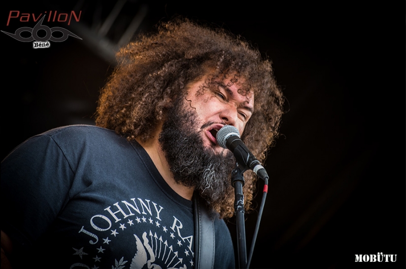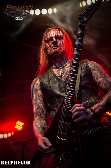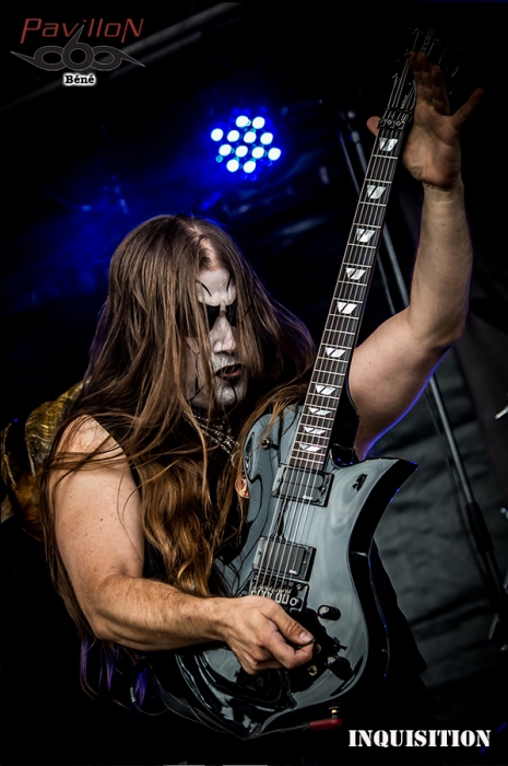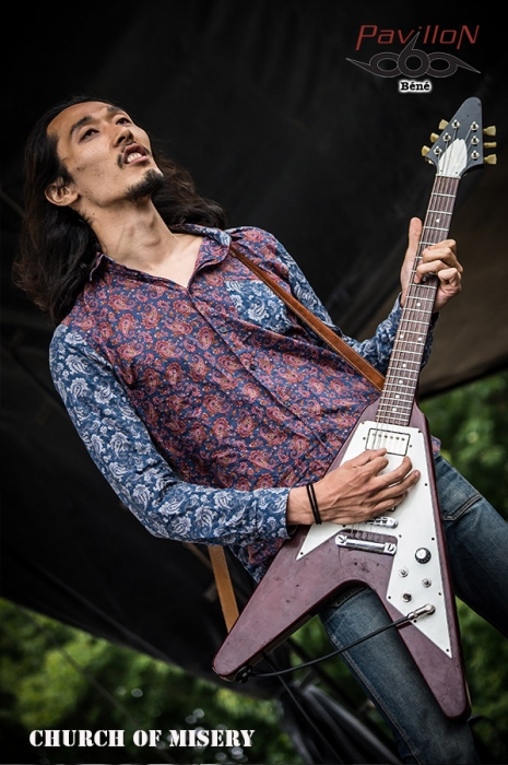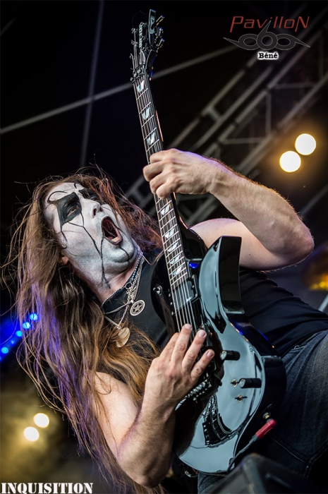 ANTICORPSE a pris place sur la Dave Mustage et est chargé d’ouvrir les hostilités pour ce troisième et dernier jour. Groupe de la scène locale, ANTICORPSE a donc pour mission de réveiller le public. Vraiment épars au départ, celui-ci va petit à petit se rassembler. Les bretons vont nous livrer un black/death vielle école efficace, dans lequel se fait tout de même ressentir un son trashy. Ils sont un peu trop statiques à mon goût, mais ça prend tout de même et leur set se boit bien. Dommage que le public soit long à se motiver pour rejoindre les scènes, ANTICORPSE aurait mérité un peu plus d’intérêt. C’est MOBÜTU qui enchaîne sur la Supositor Stage. Le combo va me mettre la première claque de la journée ! Y’a pas à tortiller des fesses ça envoie et pas qu’un peu. MOBÜTU c’est pas compliqué…tu prends du Motörhead, du punk, un chanteur avec des cheveux qui me rendent jalouse, une énergie de malade. Tu secoues bien fort et voilà ! Ils défendent aujourd’hui leur EP « Axl Rose is dead », à écouter de toute urgence ! Pour ceux qui n’étaient pas encore réveillés, c’est maintenant chose faite et les têtes se secouent du début à la fin. Retour à la scène principal pour assister au set des Caennais de HEADCHARGER. Forts de 5 albums, dont le dernier « Black Diamond Snake » est sorti en avril dernier, ils sont à l’aise sur scène et n’auront aucun mal à rallier le public à leur cause. J’ai passé un moment sympathique sans être pour autant transcendée. Leur dernier album reste cependant très bon, le meilleur des cinq selon moi, et c’est avec plaisir que j’ai retrouvé certains de ses titres en live aujourd’hui. Les parisiens de Qantice attendent leur tour sur la supositor, pour nous proposer leur symphonic power metal. Je tiens à te dire que j’ai longtemps cherché comment écrire les choses concernant Qantice de manière à ne pas être trop méchante. J’en suis arrivée à la conclusion que je ne suis pas méchante, j’émets juste un avis. Et si je suis méchante…et bien tant pis. Déjà la tenue kitsch à souhait du guitariste m’a bloquée d’entrée. Un ensemble de cuir blanc avec des bottes de moto blanches… Bon…soit…passe encore. J’ai ensuite vu une violoniste je me suis dit « tiens ça va peut-être être différent de ce que je peux connaître… Eh ben non ! Le problème c’est qu’ils ont joué… Ce groupe est à lui seul tout ce que je ne supporte pas. La voix qui va chercher des notes qu’elle n’est pas capable de gérer m’a filé des acouphènes, la tenue total white du guitariste m’a provoqué un décollement de la rétine, le jeu de scène surjoué du chanteur m’a juste exaspérée… Je pense que si j’avais eu un truc lourd sous la main je l’aurais lancé… Mais tout ce que j’avais c’était mon appareil photo… Tu comprendras que j’ai renoncé… Bref tout sauf ce que j’aime, je n’avais qu’une envie : que ça cesse. J’ai passé là les 45mn les plus longues du festival. A ma grande surprise le public a semblé apprécier, donc tant mieux pour Qantice je dirais. Les goûts et les couleurs tu connais la suite… Techniquement, si on isole chacun des zicos ils ne sont pas mauvais, ils sont même bons ! En particulier le guitariste. Mais Qantice c’est tout sauf mon truc tu l’auras compris… Je me rend donc à la Dave Mustage pour voir les japonais de Church of Misery. Je ne les connais ni d’Eve ni d’Adam. Certains les qualifient comme un groupe de doom d’autres les jugent indéfinissable… Je ne sais donc pas trop à quoi m’attendre… Ils arrivent. Le bassiste a sa basse sur les pieds (il doit coûter cher en sangle). Le chanteur arrive avec un large sourire et les doigts en « V »… Pantalons pattes d’Eph de mise…Peace and love quoi… Le public leur réserve un accueil plus que chaleureux et s’est regroupé en masse pour assister au show des japonais. Le set débute fort, et je dois reconnaître que sous l’aspect « on a fumé des trucs pas clairs » il y a des musiciens terriblement bons. Le bassiste joue directement sur le manche, le chanteur est habité du début à la fin. CHURCH OF MISERY fait dans le doom/stoner de qualité. Une belle découverte et un très bon moment à ma grande surprise! De retour sur la plus petite des deux scènes pour INQUISITION. Ils sont colombiens, basés à Seattle et font du black metal. Première surprise : ils ne sont que deux sur scène. Dagon à la guitare et au chant et Incubus à la batterie. La voix de Dagon est particulière mais j’accroche bien. Le show est carré de chez carré, aucune communication avec le public et aussitôt le set terminé, aussitôt nos deux comparses se sont fait la malle. Seul bémol technique : le son en début de set. Le duo est performant, tellement qu’au final on oublie au bout d’un moment qu’ils ne sont que deux. C’est froid, noir et glauque. Le public adhère, what else ? Au total le groupe jouera huit morceaux : 1. Force of the Floating Tomb 2. Nefarious Dismal Orations 3. Command of the Dark Crown 4. Those of the Night 5. Embraced by the Unholy Powers of Death and Destruction 6. We Summon the Winds of Fire (For the Burning of All Holiness) 7. Desolate Funeral Chant 8. Master of the Cosmological Black Cauldron 9. Astral Path to Supreme Majesties 10. Infinite Interstellar Genocide Nous avons maintenant rendez-vous avec le groupe KORITNI sur la mainstage. On passe à un autre genre musical avec un rock heavy aux sonorités blues. J’ai bien aimé la voix de Lex et le groupe fait preuve d’un dynamisme à toute épreuve. Un moment sympathique sans pour autant me marquer plus que ça. Le moment du set restera la reprise d’ « Antisocial » de Trust en anglais façon Anthrax. Le public quant à lui était vraiment emballé et les a ovationnés. 1. Take a Long Line (The Angels cover) 2. Down at the Crossroads 3. Tv's Just a Medium 4. Money Talks 