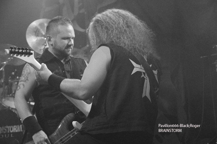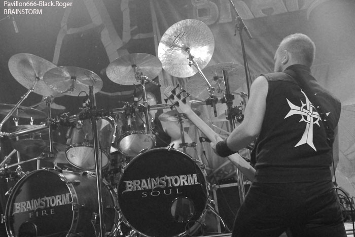 D’ailleurs, l’assistance de ce soir, guidée par les propos du chanteur invitant à reprendre les refrains, leur rendra hommage en installant une ambiance heavy-métaaaaal de rigueur bien à propos. Cependant, Brainstorm n’hésite pas à être offensif, et agressif par moments pour mieux récupérer ses fans sur des mid-tempos mélodiques et plombés ensuite. Et ça marche, une main de fer dans un gant de velours pourrait-on dire.