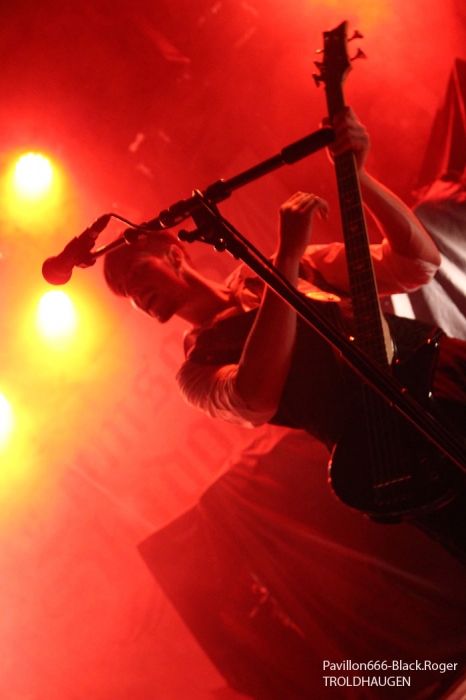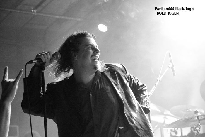 Ce groupe d’ouverture se nomme TROLDHAUGEN (un nom à coucher dehors !) et pratique un métal nouveau venu d’Australie. Nouveau, mais plutôt surprenant à plus d’un titre. Le quatuor se permet à peu près tout dans la sphère métallique et rock/prog. Il mixe allègrement les aventures d’un Franck Zappa avec du Mr. Bungle, saupoudré par du folk à la Trollfest, pourquoi pas. Leur prestation part dans tous les sens, parait incongrue par moments, un zeste de thrash par ci, des improvisations à la Devin Townsend par là, n’ayez pas peur, mais appréciez donc. Oui, il faut apprécier leur originalité avec des musiciens expérimentés, qui expérimentent donc, et un chanteur complètement décalé dans un registre théâtral aux déviances horrifiques.