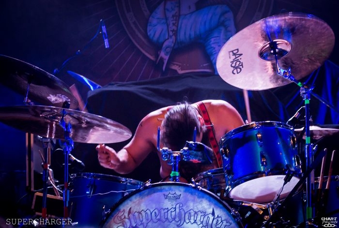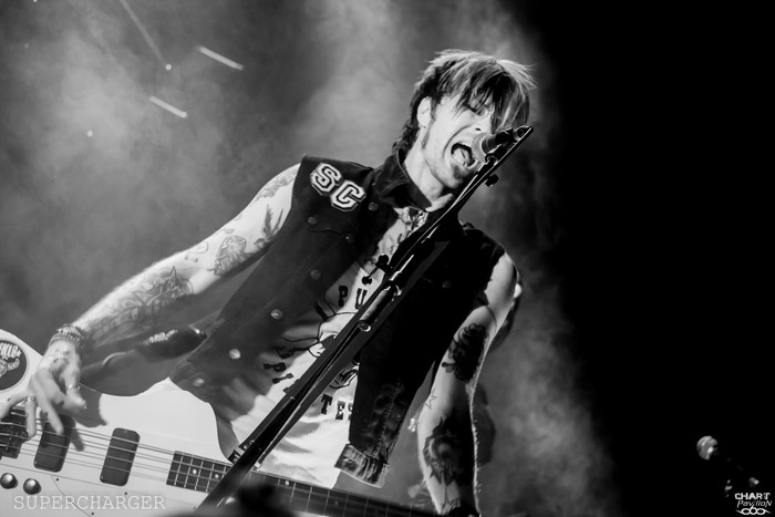 On démarre la soirée en trombe avec les suédois de JUNKSTARS. Entre punk et gros rock, ce jeune combo a toutes les qualités requises pour donner le ton de cette soirée. Pour ceux qui connaîtraient le groupe, c'est désormais sous la forme de trio que celui-ci fonctionne et non plus en quatuor. JUNKSTARS n'a pour autant rien perdu de sa ferveur et de sa bonne énergie et il s'agit bien là d'une formation taillée pour la scène et ce type de salle ! Ce sont les danois de SUPERCHARGER qui prennent la suite des hostilités. Si le nom du groupe nous fait incontestablement penser à MACHINE HEAD, il s'agit bien là d'un autre groupe de rock, moins punk mais tout aussi efficace. On pense d'ailleurs un peu à leurs compatriotes de VOLBEAT dans un certain sens. C'est vrai qu'il y a ce côté country qui pourrait lier les deux groupes, en tout cas sur album. Cependant, c'est bien sur scène que le groupe prend toute sa dimension avec des aspects rock très prononcés. Le public lyonnais ne s'y trompe pas et on constate un réel engouement pour cette formation décoiffante. Il faut reconnaître qu'entre un set tout sauf plat et des musiciens survoltés, SUPERCHARGER ne pouvait nous laisser qu'une très forte impression. Voici donc le moment d'accueillir à nouveau CRUCIFIED BARBARA de passage dans la région. Le groupe était en effet de passage sur Saint-Étienne en mai 2013, il y a donc finalement pas si longtemps même si pour un lyonnais Saint-Étienne peut paraître très loin ! Passons ! Les filles de ce combo suédois se sont très vite imposées dans ce milieu majoritairement occupé par des hommes et à l'image parfois macho, sans être pour autant blessant. Reconnaissons tout de même en toute sincérité et tout honnêteté que le fait qu'il s'agisse d'un groupe exclusivement féminin, cela a favorisé le combo dans ce milieu. Il n'y a qu'à constater de toute façon l'attitude de certains fans hommes transformés en de véritables groupies pour bien se rendre compte du phénomène. Cela ne me gène pas outre mesure soit dit en passant, certaines sont bien fans de Peter TAGTGREN pour plus que sa musique...Non, ce qu'il y a de perturbant, c'est que cette attitude de groupie peut parfois se révéler désobligeante à l'égard des autres personnes présentes, forçant le passage jusqu'à la scène comme si Dieu lui même ou Satan en personne était venu donner une conférence... Peu importe, cela n'empêche pas le groupe d'assurer une excellente prestation chargée de guitares saturées et d'une énergie comparable à celle d'un MÖTÖRHEAD dans ses jeunes années ou d'un AIRBOURNE. Je trouve tout de même que les filles restent un peu sur la réserve lorsqu'il s'agit de communiquer avec le public mais cela n'empêche nullement le combo de distiller des titres d'une énergie intense sortis tout droit de leurs différents albums avec bien entendu un accent tout particulier sur le petit dernier « In The Red » paru cette année. C'est d'ailleurs bien le premier morceau de l'album, « In The Red » qui ouvre ce set suivi de « The Crucifer » toujours aussi énergique et du plus torride avec « Play Me Hard ». Le groupe a de toute façon décidé de marquer les esprit avec une soirée entièrement dédiée au hard rock dans sa plus pure tradition. Il n'y a bien que « Count Me In » interprété en acoustique lors du rappel qui pose un peu les choses car ce ne sont pas les « Sex Action », « To Kill A Man » ou « Into The Fire » qui clôture cette soirée qui mettront en avant les aspects les plus féminins du groupe ! In the Red / The Crucifier / Play Me Hard / Sex Action / To Kill A Man / Everything We Need / The Ghost Inside / Rock Me Like the Devil / Lunatic #1 / In Distortion We Trust / I Sell My Kids For Rock 'n' Roll Rappel : Count Me In / My Heart Is Black / Electric Sky / Into the Fire Soirée réussie et très bonne ambiance dans cette salle du Kao chauffée à blanc. Merci encore à BASE PRODUCTIONS pour l'accueil. |