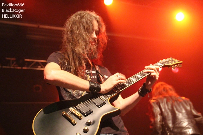 C’est ensuite les grenoblois d’HELLIXXIR qui vont investir les lieux devant un public toujours plus ou moins absent et c’est dommage. Oui bien dommage car le quintette Dauphinois vaut le déplacement comme on dit communément. Le thrash des débuts est devenu petit à petit plus death, plus brutal aussi. Mais les solis aventureux de Matthieu à la guitare font toujours mouche, un peu de douceur dans un monde de brutes pourrait-on dire. Anciens morceaux et nouveaux titres sont bien reconnaissables d’ailleurs comme deux époques de ce groupe qui a marqué et qui continue de marquer la scène métal à Grenoble. L’arrivée d’un nouveau chanteur il y a peu semble avoir apporté du sang neuf à cette formation que l’on aimerait voir plus souvent sur les planches, remarque personnelle. Thrash/death de qualité donc qui ne peut vous laisser insensibles, on aime tout simplement.