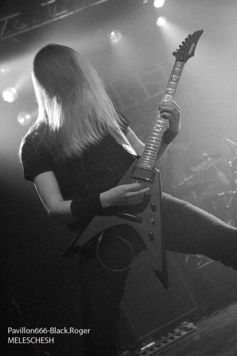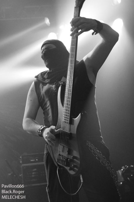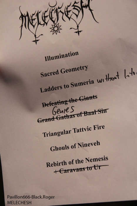 La prestation de MELECHESH sera quelque peu malmenée au départ, incertaine dirons certains. En effet le groupe « mésopotamian black-metal » ou black-metal oriental formé au départ à Jerusalem a eu une mauvaise surprise dans la semaine précédant le concert. Leur batteur à quitté la formation brusquement aux dires de certains. Alors les jours précédent ce show, c’est le batteur Lyonnais Kevin paradis qui a répèté avec le groupe à Mâcon afin d’assurer le set de ce soir. Ce set qui sera donc réduit à 50 minutes au lieu des 1heure 15 prévus initialement.