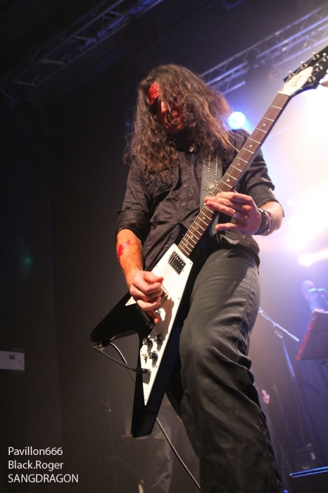 Beaucoup de monde sur les planches avec chanteur inspiré, bassiste, guitariste, clavièriste, batteur et choristes pour un rendu…démoniaque. En effet les géniteurs de ce projet ne sont pas nés de la dernière pluie sombre et malsaine car musiciens confirmés dans d’autres formations. Alors le public part en voyage avec eux, avec ces personnages ensanglantés, évitant l’épée tournoyante du maitre de cérémonie. Une certaine puissance de feu est au rendez-vous, la magie noire opère au travers de compositions riches en intensité que vous retrouverez bientôt sur un nouvel album à venir…sous peu.
