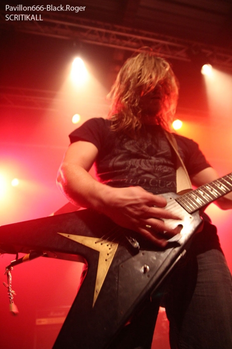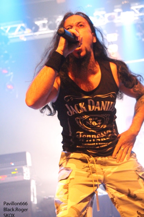 Mais leur set ne s’est pas passé comme prévu, la faute notamment à des ennuis techniques, de retours surtout, ces retours qui feront des « caprices » pour beaucoup de groupes ce soir même pour la formation en tête d’affiche. Et puis il faut reconnaitre que la formation Savoyarde n’était pas au mieux de sa forme il me semble. Et pourtant je n’ai jamais été déçu auparavant par leurs prestations qui commencent à les faire connaitre de plus en plus. Pas d’affolement donc, mais Jé’, Hachman, Olive et Gaylord vont se rattraper dans leurs prochains shows, c’est certain. Cependant, cet après-midi, ils ont pu quand même se faire découvrir par le public Lyonnais de par la qualité de leurs titres et la volonté d’en découdre dans une veine brutal-métal bien saignant, comme on l’aime en fait !