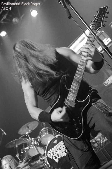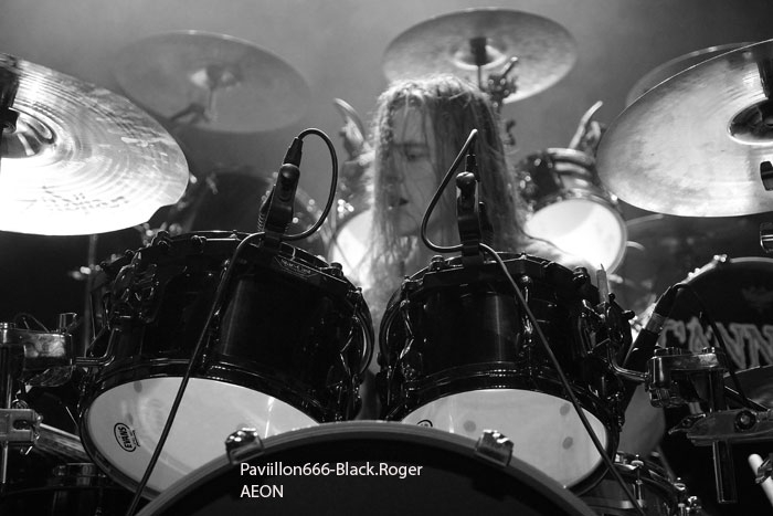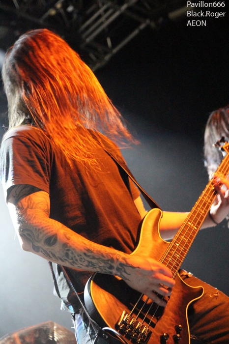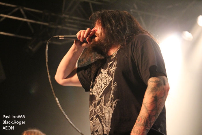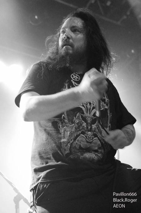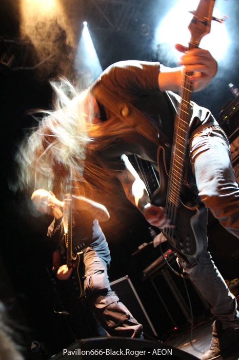 Tout a commencé à 20 heures avec les death-métalleux Suédois AEON déjà bien rôdés en la matière depuis 15 ans et 4 albums au compteur qui sont semble-t-il les petits protégés de Cannibal Corpse soit dit en passant. Car oui, en fait AEON pratique du death-old school non pas de l’école Suédoise mais de l’école US. Et cela lui va bien même si au départ le groupe semblait bien influencé par ses aînés donc, mais aussi par DEICIDE. Il semble maintenant avoir trouvé sa voie, la route 666. De ce fait ses compositions sont varièes, sans pour autant se détourner d’une certaine agressivité originelle, d’une certaine brutalité avec des riffs lourds et accrocheurs en diable.