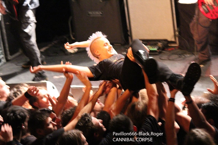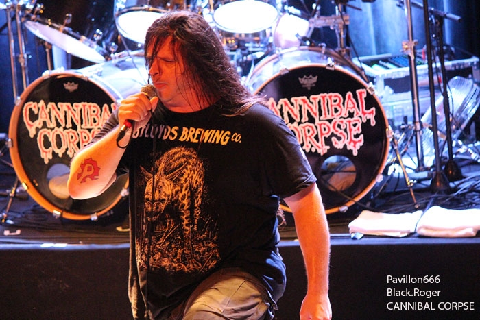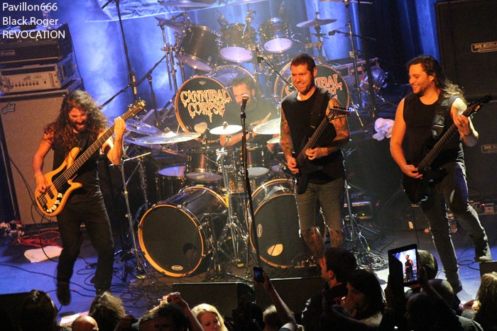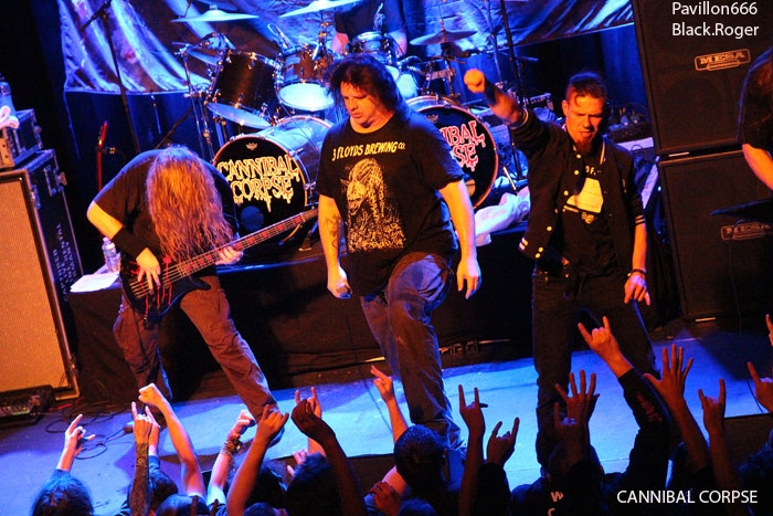 Alors, quand Georges Fisher, Pat O’Brien, Rob Barrett, Paul Mazurkiewicz et Alex Webster passent près de chez vous, quelle est votre réaction ? Et bien vous y allez tout simplement, sans vous poser de question, vous les death-métalleux invétérés, vous les adeptes du brutal death qui-tue-la-mort, mais vous aussi amateurs de frissons gore , amateurs de « bidoche » contre les murs, mais aussi vous les curieux, les punks de toutes crêtes, tous unis dans le même bain de sang brutal et sans fioritures.