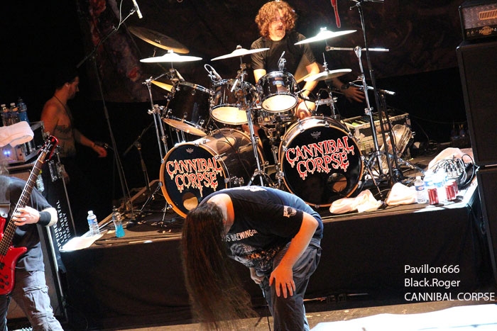Un peu plus de temps sera nécessaire maintenant pour installer la scène avant l’arrivée du groupe culte de death-métal Américain, le fameux CANNIBAL CORPSE qui va débarquer, là tout de suite devant nous avec sous son bras son dernier “méfait” en date “A Skeletal Domain”.