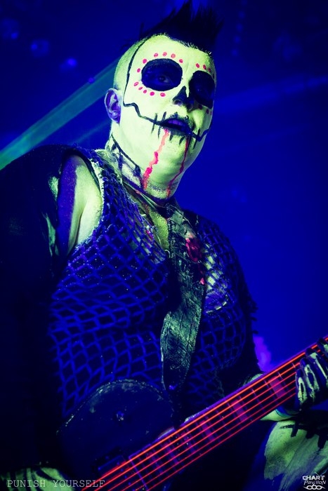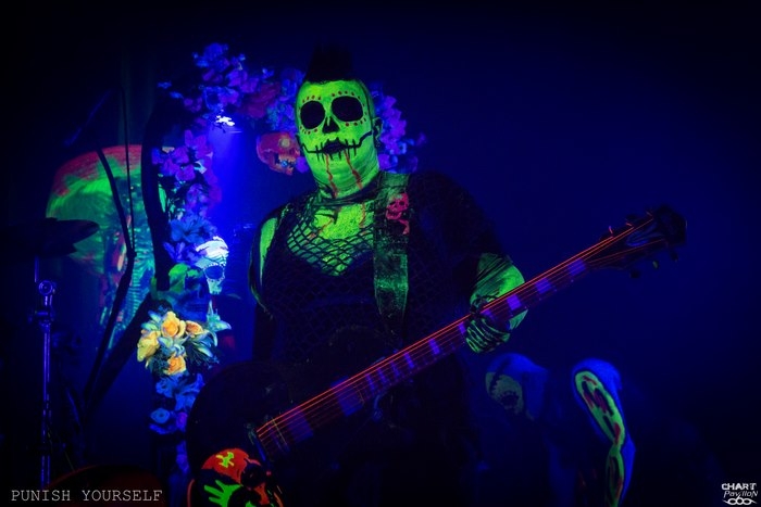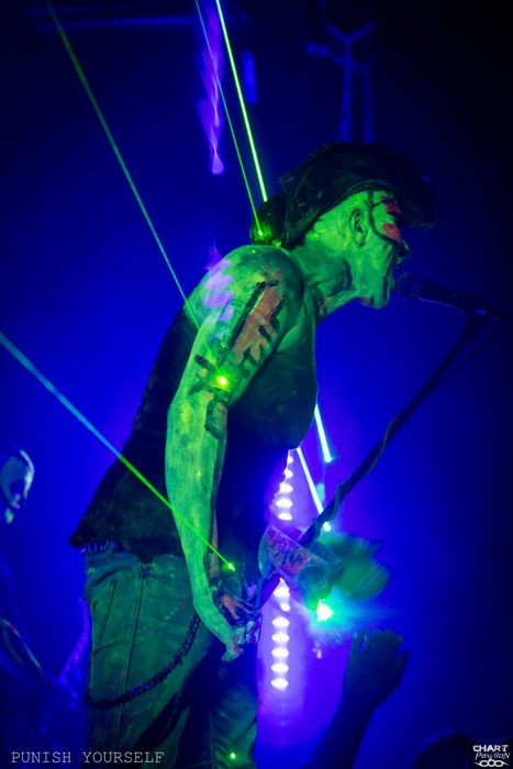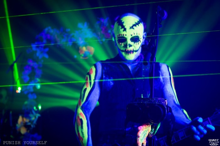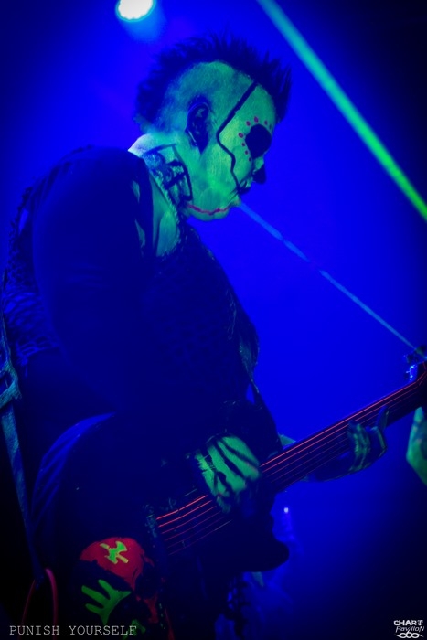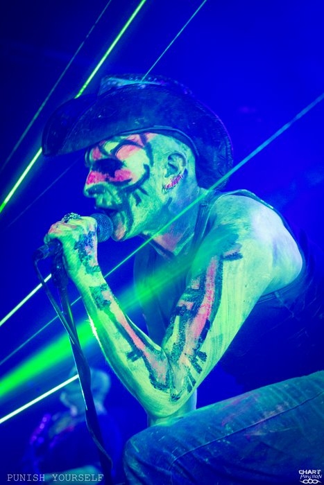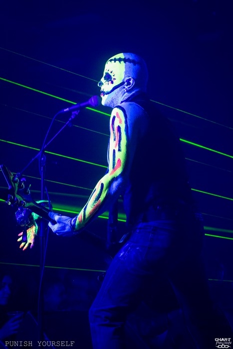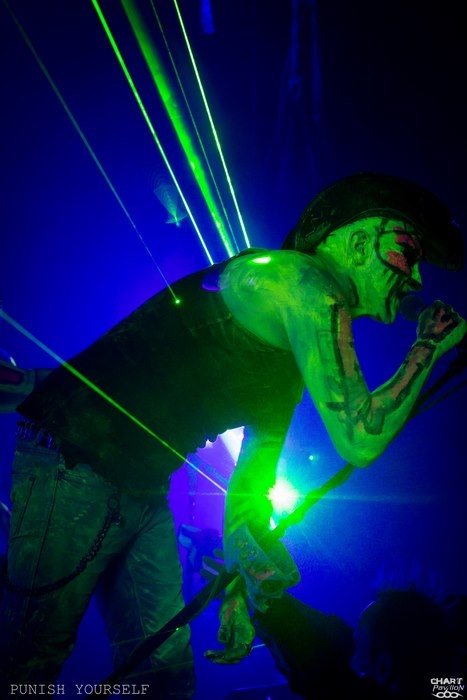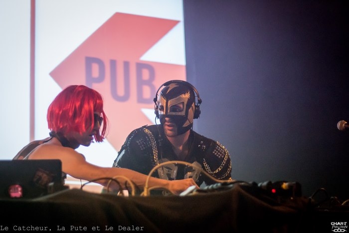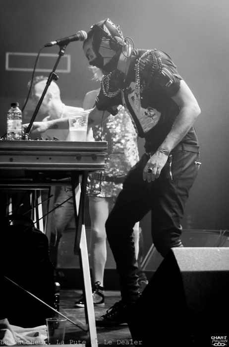 Suite aussi à un problème interne lié à l'organisation et bien que tout soit prêt pour le concert, PUNISH YOURSELF démarre son set avec trois quarts d'heure de retard. Étant données les circonstances, je peux vous dire que le groupe aurait pu annuler sa prestation mais a préféré jouer quand même afin de ne pas se mettre dans l'embarras vis à vis de son public qui n'aurait peut-être pas compris. En effet, sans vous livrer ces raisons, il est en effet logique que le groupe ait réagi de cette manière. Celui-ci a promis de communiquer à ce sujet ces prochains jours, ils vous expliqueront mieux que moi ce qui s'est tramé en coulisses et les raisons de ce retard mais aussi de ce set clairement écourté. Il est tout aussi regrettable de voir un set tronqué qu'une salle à moitié pleine d'ailleurs ! Que s'est-il passé ce soir ? Vous nous avez habitués à mieux les lyonnais ! Tant pis pour vous, vous ne savez pas ce que vous avez raté ! En effet après une rapide introduction, PUNISH YOURSELF nous envoie « CNN War » suivi de « She Buys Me Drugs » qui bien évidemment mettent tous le monde dans le bain. Klodia apporte toujours sa touche burlesque au show ce qui comme d'habitude fait son effet. Que ce soit avec LE BAL DES ENRAGES ou PUNISH YOURSELF, Klodia et sa meuleuse sont toujours aussi indispensables. Visuellement, Le groupe a toujours su se mettre en scène d'une manière singulière. Les peintures, les lumières, les lasers, les costumes et tous les décors sont clairement des atouts qui ne font que renforcer cette musique totalement prenante, encore d'avantage en live. Il n'y a qu'à en juger par les morceaux incroyables que sont « All of You Zombies », « Rock n' Roll Machine » ou « Spiders 375 Necromancers » lorsqu'ils sont interprétés live. Rien à dire, la machine PUNISH YOURSELF est en pleine forme malgré les contraintes liées à l'organisation et le public restreint mais au combien fidèle. Intro / CNN war / She Buys Me drugs / Come on come on / Compañeros de la Santa Muerte / Zmeya / Mothra Lady / All of You Zombies / Rock'n'roll machine / Las Vegas 2060's / This Is My Body, This Is My Gasoline / Spiders 375 Necromancers / Nation to Nation Changement de plateau rapide pour une toute autre façon d'aborder la musique. Il est vrai que PUNISH YOURSELF utilise pas mal d'éléments électroniques et finalement, une affiche en compagnie d'un groupe de DJ's a du sens, surtout lorsqu'il s'agit de LE CATCHEUR, LA PUTE & LE DEALER. Un bon nombre de spectateur a déserté la salle avant même que le trio ne monte sur scène. L'absence d'instruments traditionnels en a sans doute rebuté quelques uns mais pourtant, le trio n'est pas si éloigné que ça des sons électriques. Ce sont en effet quelques morceaux de rock que l'on peut reconnaître ci et là. LED ZEPPELIN, DEFTONES et autres formations célèbres sont passées à la moulinette. Certains sont totalement passés à l'état de transe durant cette performance musicale. L'apport de la vidéo rend le spectacle sincèrement intéressant et totalement amusant. L’interaction de «la pute » (qui est en fait un homme) avec cet écran est réellement réussi. Voilà, je pense sincèrement que ce combo est une réussite et que leurs délires méritaient un meilleur accueil. Je suis relativement déçu par la manière dont les choses se sont passées pour eux. En effet, les ingrédients sont là et même si le début du show pouvait se montrer rebutant, l'ensemble était vraiment bon ! Bilan mitigé au final. Rien à reprocher aux groupes qui ont fait leur boulot avec passion, comme toujours. Par contre, il y a des choses à revoir du côté de l'organisation s'ils veulent voir leur production perdurer... Mais bon, Paris ne s'est pas faite en une seule journée... |