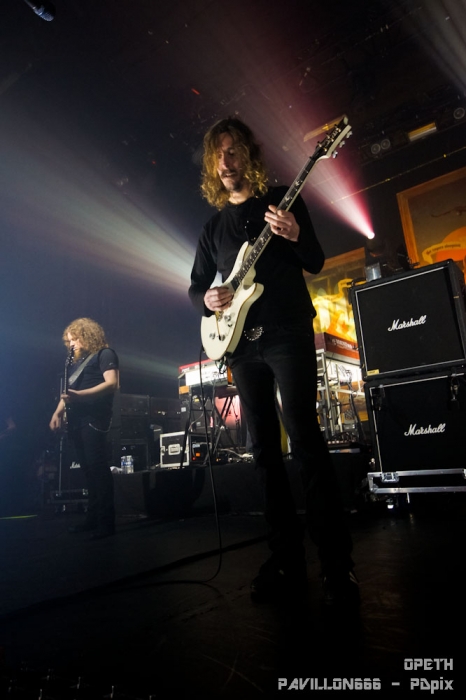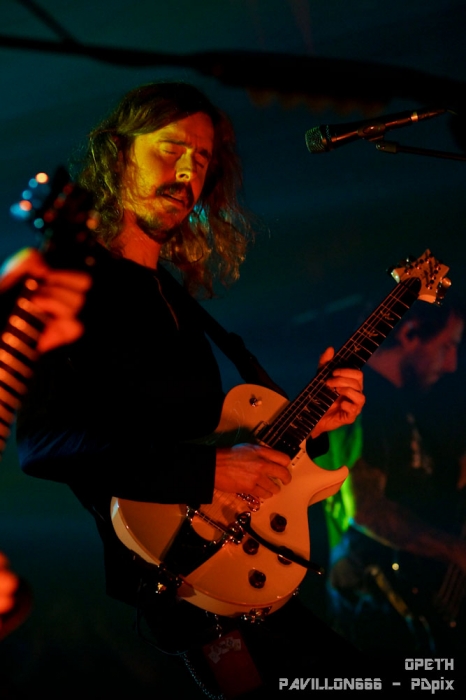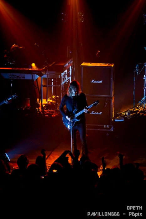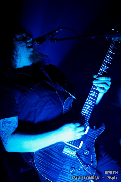 … Ou pas. Parce qu’il faut dire que devant Alcest, je me suis em… ennuyé fermement. Et je n’étais pas le seul à la vue du monde au bar et au nombre de personnes plus concentré sur l’actualité facebook de leur mobile plutôt que sur la prestation du groupe. Même s’il n’a pas fait l’unanimité, le groupe français a su tout de même trouver son public. On sent que le leader/compositeur d’Alcest est créatif. Au passage, il se fait appeler Neige, c’est il pas mignon ? Trêve de moquerie. Les compositions du groupe étaient riches et variées. La voix était effacée derrière les instruments. Le fait que les paroles soient quasiment indistinctes conférait à la voix un statut d’instrument à part entière plutôt que de dispenser du texte. Les vocalises du chanteur se mêlaient donc aux autres instruments pour ajouter encore plus de profondeur. Le rythme de tout ça était souvent lent, variait peu et les véritables prouesses se trouvaient dans l’écriture plutôt que dans l’interprétation technique. Le tout donnait un air contemporain ou art et essai, ce qui n’est franchement pas ma tasse de whisky. L’aspect visuel était un peu tristounet. Pas de lumières tranchantes, pas de contraste, pas mal de fumée pour l’ambiance. Les musiciens ne bougeaient pas beaucoup. Le plus décevant était le manque de communication avec le public. Pour un groupe français c’est dommage. La totalité des échanges avec la foule se résume à : ‘’Bonsoir’’, ‘’Merci machin et truc pour l’organisation’’, ‘’C’est notre dernière chanson’’, ‘’Merci, bonsoir’’. En 45 minutes de concert ça fait pas beaucoup. Tout ça était bien trop sage à mon gout. Setlist : - Wings - Opale - Là où naissent les couleurs nouvelles - Autre temps - L'éveil des muses - Percées de lumière - Délivrance Il ne me restait plus qu’à attendre 40 longues minutes le temps qu’Opeth fasse son entrée sur scène. J’ai donc pris une bière et mon mal en patience. Et je dois dire que je n’ai pas été déçu. Sauf peut être par la bière. La kro c’est plat, triste et sans saveur. Mais l’attente, elle, valait le coup. Il faut dire que le Bataclan était rempli à craquer. Plus le moindre billet en vente depuis plusieurs semaines pour ce concert. C’était la première fois que je voyais à l’entrée de la salle plus de personnes cherchant des places que de personnes qui en vendaient. Salle comble donc pour Opeth. Et les Suédois n’ont pas déçu leur publique. Opeth a interprété des morceaux issus de l’ensemble de leur répertoire durant plus d’une heure et demie. Une setliste que les musiciens nous ont interprété à merveille du début à la fin. Opeth nous a attiré dans son univers sombre et planant où l’on passe d’un chant clair à un chant guttural et profond dans jamais perdre le fil de la mélodie. On reste admiratif devant les riffs des deux guitares qui s’entremêlent pour n’en former qu’un seul, complexe et toujours juste. La magie prend alors que le groupe fait une prestation sobre et sans fioritures, comme à son habitude. Le leader, Mikael Akerfeldt, à la 6 cordes et au micro, faisait preuve d’un charisme redoutable. Il n’hésitait pas à prendre le temps de parler à son public tout en accordant sa guitare entre deux morceaux. Tantôt il présentait un morceau récent (‘’C’est un morceau du dernier album, j’espère qu’il vous plaira, mais si ça ne vous plait pas, ça me va aussi’’), tantôt il présentait un ancien morceau (‘’Ce morceau n’a pas été joué à Paris depuis les années 90, il est tellement vieux que personne ne s’en souvient. Il est tellement vieux que personne ne l’aime d’ailleurs’’). Il s’exprimait toujours avec cet humour qui lui est caractéristique qui apporte un peu de fraîcheur entre les morceaux graves et sombres. Le groupe entier s’est lancé dans une petite musique d’accompagnement et un roulement de batterie tandis qu’un technicien venait fixer de nouveaux médiators sur le pied d’un micro. Le genre de détails qui remplissent un vide avec humour et qui sont toujours les bienvenus. Les 4 autres musiciens, claviériste, guitariste, batteur et bassiste, eux, sont resté plus en retrait, laissant Akerfeldt faire le show. Le son était inégal en fonction de l’endroit ou l’on se trouvait dans la salle. Il était globalement de bonne qualité mais je me suis surpris à trouver des différences en fonction de mon placement. Par exemple, durant l’intro d’Advent, j’ai trouvé que les basses et la grosse caisse couvraient trop la mélodie des guitares alors que je me trouvais derrière la régie centrale. Il m’a suffi que me déplacer sur le côté de la salle pour tout entendre clairement. Dommage, tout le monde n’a pas profité de la même qualité sonore. Mais ne boudons pas notre plaisir. Ce concert m’a donné des frissons à certains moments et le public était ravi. C’est avec regret que nous avons vu le groupe prendre congé. J’en aurais repris volontiers encore un peu. Setlist : - Eternal Rains Will Come - Cusp of Eternity - Bleak - The Moor - Advent - Elysian Woes - Windowpane - The Devil's Orchard - April Ethereal - The Lotus Eater - The Grand Conjuration - Deliverance Un grand merci au Bataclan et toute l'équipe qui y travaille pour son accueil chaleureux. Je vous retrouve très vite pour de nouvelles chroniques de concert. |