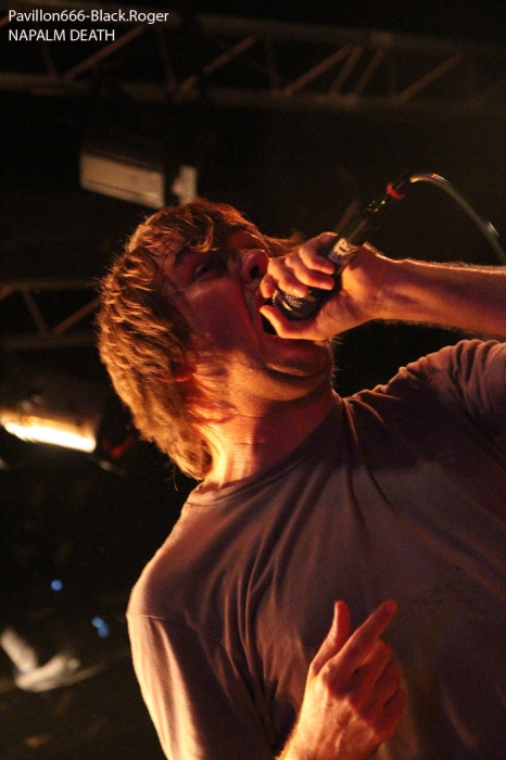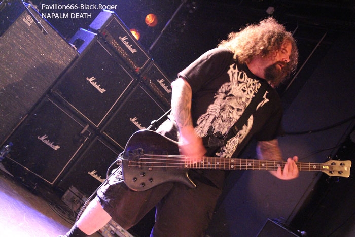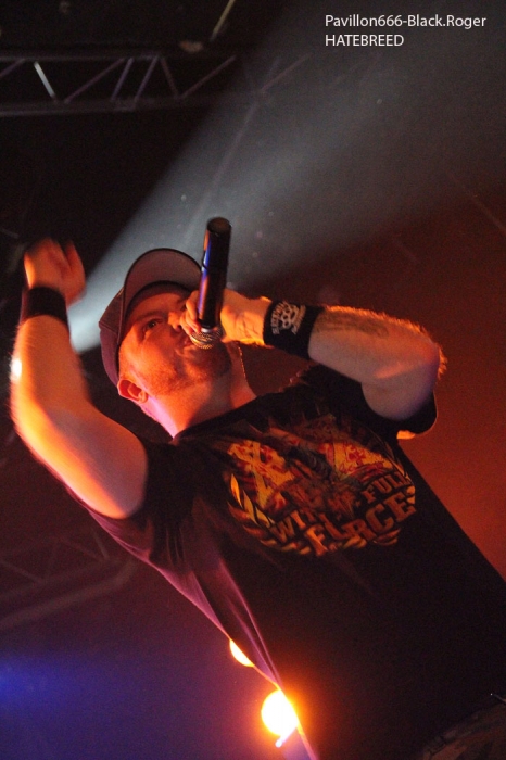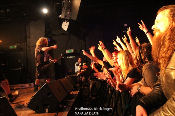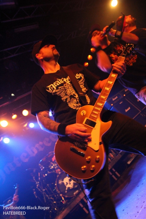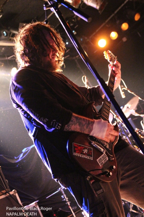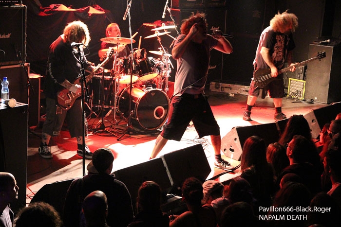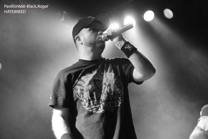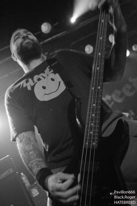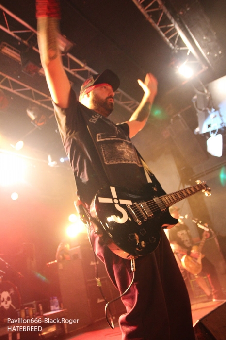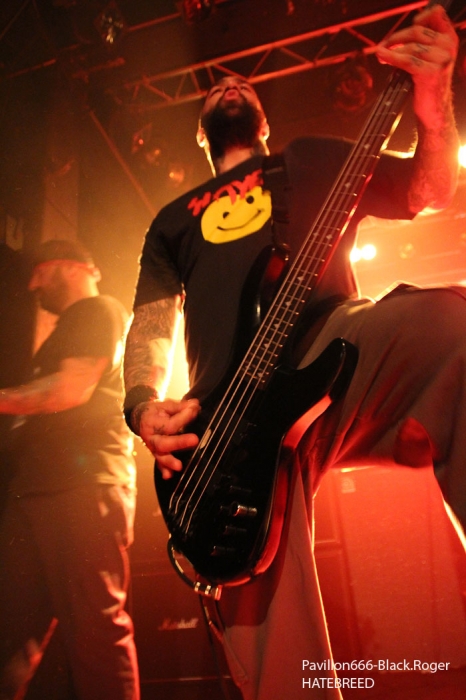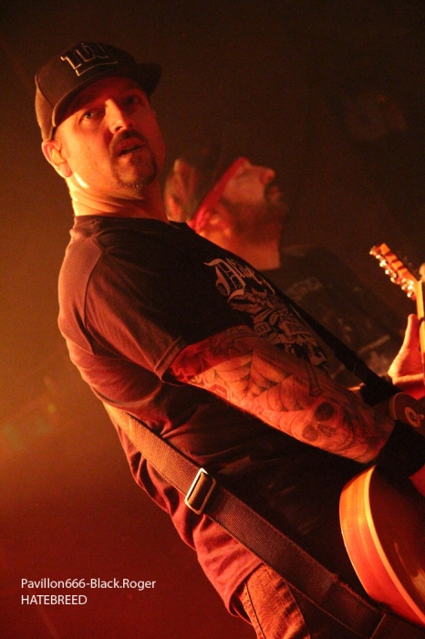 Rendez-vous compte de l’affiche de malade que nous propose PTR au Rez, rien de moins que les rois du hardcore/metal HATEBREED avec les rois du grindcore NAPALM DEATH, il fallait le faire. Bien entendu la salle des bords du Rhône sera « blindée » pour l’occasion et le public présent ne va pas faire dans la dentelle contre les « crash-barrières », mais aussi dans toute l’usine, une usine en folie comme on aime à la voir, ambiance ! C’est la bande à barney, NAPALM DEATH, qui va ouvrir le feu en premier dès 21heures avec donc devant nous Barney, Shane, Danny, mais sans Mitch à la guitare, absent pour cause de maladie dans sa famille. Un remplaçant va assurer avec brio et même si la guitare n’est pas trop mise en avant ce soir, la voix fera illusion et le show n’en souffrira point. En effet le son est énorme, le groupe est déchaïné sur l’estrade (qui à dit comme d’habitude ?) et les quelques 600 personnes présentes dans l’usine vont entrer en phase sueur, mouvements et boissons houblonnées dans les cheveux, mais où est donc passée ma godasse ? Placé devant Shane dans le pit photo mes oreilles bourdonnent comme un essaim d’abeilles avec le martèlement consciencieux du bassiste emblématique des grindcoreux britishes. Barney est branché sur le 380 volts et les années qui défilent ne semblent pas avoir de prise sur lui. Danny martyrise ses fûts leur imposant des blast-beat incessants et le guitariste remplaçant (je n’ai pas retenu son nom) assure comme une bête. Alors sur scène, Napalm death c’est toujours du brut de décoffrage, pas de fioritures. Le quartette envoie des directs à nos estomacs, vous emprisonne l’esprit musicalement parlant mais vous libère avec des textes incisifs, tranchants, morrtels et engagés. Napalm Death donne toujours des concerts dans l’urgence du punk, dans la lourdeur du metal, dans une démarche hardcore aussi, fusion intemporelle des pères fondateurs du grind, grind-death, grindcore, enfin rajoutez-y ce que vous voulez avec vos tripes ! Et pendant une heure nous allons déguster dans tous les sens du terme avec leur brûlots classiques de « Errors In The Signal à « Nazi Punk Fuck Off » en passant par « Suffer the Children », titres extraits de, tenez vous-bien, 15 albums et d’innombrables démos, split-cds et autres EPs et lives paru en une trentaine d’année, respect ! Un prochain album est attendu sous peu, des prestations coup de poing vont venir encore et encore nous détruire ce qu’il nous reste de neurones, mais ce soir à Genève nous avons encore une fois prit notre dose de métal extrême d’origine incontrôlée pour le pire ou le meilleur, le meilleur assurément cette nuit, amen ! Une demi-heure après la bourrasque grindcore venue de la perfide Albion, voici venir l’ouragan hardcore/métal US du Connecticut avec la bande à Jamey Jasta appelèe HATEBREED. Un Jamey Jasta qui a échangée la classique bandana pour la casquette des « coreux ». Et c’est parti, les « crash-barrières » ont de la peine à retenir le flot mouvementé qui vient s’écraser en première ligne. Arrosage quasi permanent dans le pit photo, shampooing à la bière, les musclés du premier rang s’envoient en l’air dans cette assistance en ébullition et chauffée à blanc par les envois imparables des musiciens. Des musiciens en pleine possession de leurs moyens malgré les 20 années du groupe au compteur du hardcore. Leur recette est relativement simple mais d’une efficacité redoutable en live avec des riffs destructeurs, des refrains fédérateurs, des mosh-parts bien placés, une chorégraphie inégalée et le chant démentiel de Jamey qui provoque sans arrêt un public qui n’en a cure. Moment fort à la fin du set avec le titre « Destroy Everything » reprit en chœur par toute une assistance ayant le diable au « core », impressionnant ! La prestation d’HATEBREED a duré 1heure dix (à l’horloge Suisse) et a laissé sur place un public hébété redescendant progressivement de son nuage après avoir tout donné physiquement pour ce concert très enlevé de l’une des formations les plus marquantes du style ayant su dés le départ mixer avec doigté hardcore et métal pour un résultat surprenant et imparable, merci et longue vie à toi HATEBREED ! Set-list : Honor Never Dies, Boundless, This Is Now, Everyone Bleeds Now, In Ashes They Shall Reap, Indivisible, Smash Your Enemies, Befor Dishonor, Proven, Beholder Of Justice, Last Breath, Doomsayer, To the Treshold, Perseverance, Tear It Down, Deafeatist, Empty Promises, Driven By Suffering, As Diehard as They Come, Live for This, I Will Be Heard, Destroy Everything. A la fin d’un concert ici on retrouve avec plaisir l’ambiance de la place des Volontaires bien animée où chacun y va de ses commentaires, une place vivante au milieu de la nuit, au milieu de Genève. Encore une fois, mille mercis à PTR l’Usine pour ses soirées qui valent le déplacement, en l’occurrence le déplacement depuis Lyon pour vos serviteurs de Pavillon666, Black.Roger, Bisounours666 et Franckenstrat. |