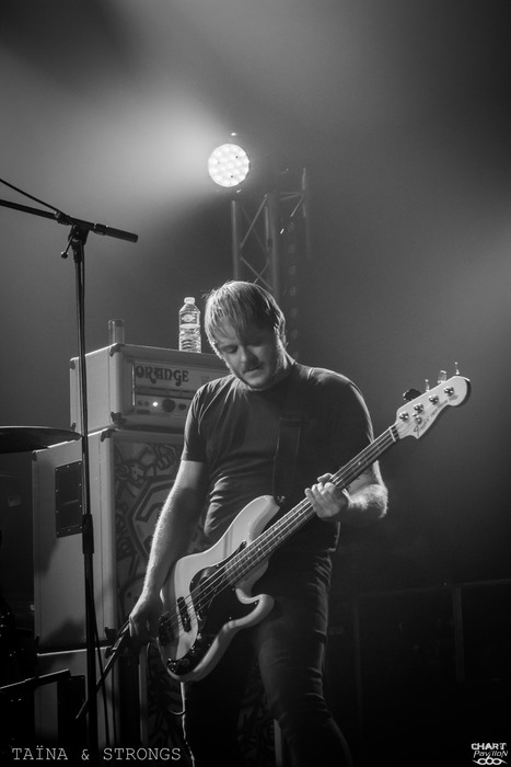 Ce sont les lyonnais de TAÏNA & STRONGS qui ouvrent cette soirée. Après un premier album sorti en ce début d'année, le groupe est déjà en pleine expansion. Les concerts s’enchaînent sans relâche pour cette toute jeune formation. Le groupe est très à l'aise sur cette grande scène et on se dit que toutes ces prestations lui ont déjà apporté pas mal de bénéfices. Le style pop rock du groupe n'est certes pas aussi rock que celui de la tête d'affiche mais quelques riffs viennent cependant bien secouer le poirier de temps à autre. L'ensemble passe très bien. En à peine 5 ans, SKIP THE USE s'est imposé sur la scène française. Il faut dire que le single « Ghost » les a fortement aidés, notamment par sa très grosse diffusion sur les radios. A l'instar d'un SHAKA PONK, SKIP THE USE impose son style alternatif combinant des éléments issus de styles multiples. Il semblerait que la mouvance actuelle soit à l'éclatement des frontières prédéfinies et c'est tant mieux. On prend un peu le meilleur de tout pour l'arranger à sa sauce et se fabriquer sa propre identité. L'avantage, c'est qu'on risque de toucher un peu plus de monde ! Après une rapide introduction, SKIP THE USE entame un « 30 years » détonnant suivi d'un « Nameless World » tout aussi efficace. Le groupe aime le gros rock comme en témoigne « PIL ». On sent ses bases punk dans ce style de titres tandis que « Cup Of Coffee » nous ramène immanquablement à des bases ska/reggae nettement plus prononcées. Mat assure de toute manière des parties chant réellement impressionnantes. En plus d'être un frontman hors du commun, ses capacités vocales sont bien réelles. Pour l'anecdote, après être descendu dans un peu plus près de la foule, il passe près de moi et repère mon t.shirt d'ANATHEMA et me fait un signe du pouce pour me montrer qu'il apprécie. Une fois remonté sur scène et le morceau terminé, il se lance dans un petit discours et montre au public comment faire le signe des cornes avec les doigts et le groupe se lance dans une reprise de « Run To The Hills » d'IRON MAIDEN. La petite vidéo qui accompagne ce report témoigne justement de ce moment et nous montre aussi un homme capable de s'adapter à la perfection dans n'importe quel style de rock ou de reggae et même de metal ! Et en tant que frontman, l'énergie est incroyable ! Quand il tient la foule, il la tient et quand il s'agit de lancer les gens dans un jeu qui consiste à les faire aller de droite à gauche puis de gauche à droite ou de lancer un fameux wall of death, cela fonctionne ! Un wall of death dans un concert de SKIP THE USE, si je m'attendais à ça ! Les death metalleux et les coreux ont du souci à se faire pour remonter la barre de l'extrême ! Vous l'aurez compris, le show est parfaitement maîtrisé ! Tant au niveau de la prestation que de la mise en scène. Le décor est somptueux, jouant avec la salle elle même en utilisant la tuyauterie du transbordeur comme décor en y ajoutant les propres lumières du groupe. Il y a quelque chose de RAMMSTEIN dans cette ambiance visuelle. Et pour la musique, retour aux racines punks avec « You Are » et « Ghost » prend des allures qui ne passeraient pas à la radio avec ces inspirations bien plus rock que l'originale. SKIP THE USE conclue son show avec «Être Heureux » interprété par Mat seul à la guitare avant de revenir pour un rappel composé de « Hell Parade », « Bullet », « Birds Are Born To Fly » et « Bastard Song ». Il n'est pas étonnant de voir ce groupe prendre de telles dimensions lorsque l'on assiste à l'un de ses concerts. L'énergie est éclatante et l'humour bien au rendez-vous. Il n'y a rien à redire sur ce set impeccable ! Intro / 30 Years / Nameless World / Antislavery / Cup Of Coffee / PIL / Give Me Your Life / Off Me / The Wrong Man / People In The Shadow / You Are / Gone Away / The Story of Gods and Men / Ghost / Être Heureux / Encore: Hell Parade / Bullet / Birds Are Born To Fly / Bastard Song |
