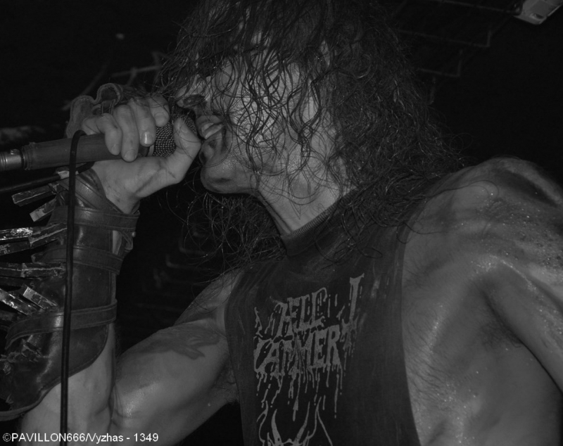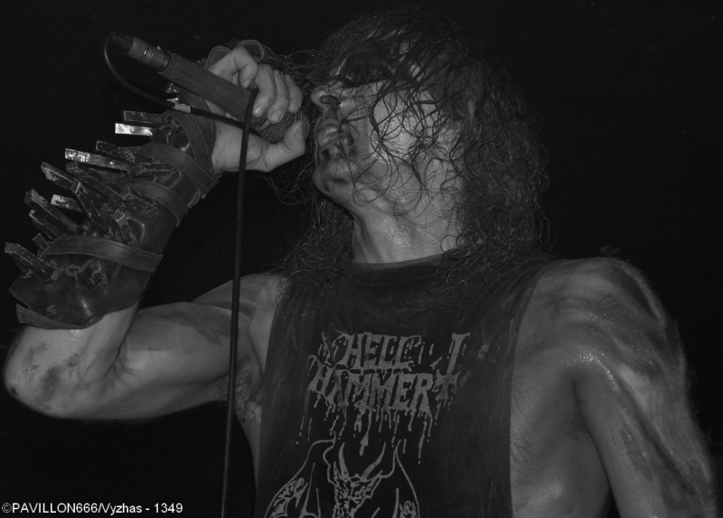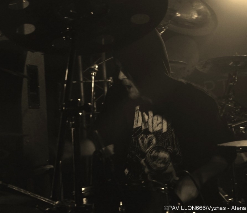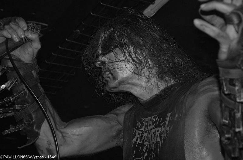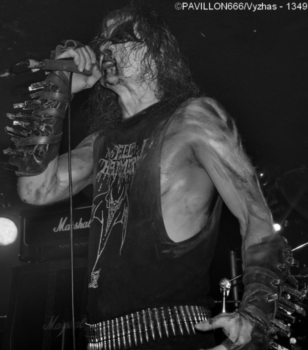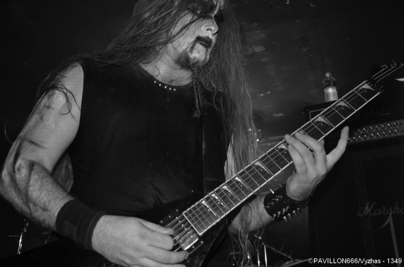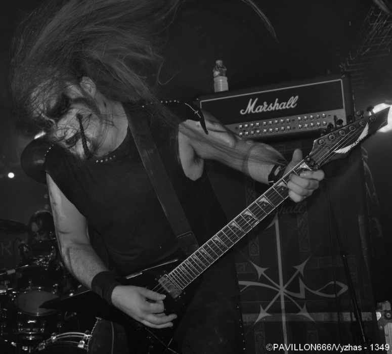 Avant la tempête, le « calme » bien sûr, puisque Atena investit les planches de la salle parisienne devant un public épars. Autant dire que la performance du jeune combo norvégien va laisser tout le monde de marbre. Venu défendre son premier album auto-produit « Of Giants » (2013), le quartet pratique un deathcore peu inspiré et fade, dont les morceaux ne consistent qu’en un enchaînement répétitif de breakdowns sans vigueur. Pour être calme, c’est très calme, voire soporifique, et pourtant les quatre jeunes hommes se donnent à fond sur scène, malgré un son brouillon. Le guitariste illumine la scène plus par sa gestuelle désarticulée, que par son jeu (trop) minimaliste sur quatre cordes alors qu’il utilise une guitare qui en possède huit, un comble ! Le charisme inexistant et la voix faiblarde du vocaliste n’arrangent en rien la prestation mollassonne de la formation. Celui-ci tente tant bien que mal de faire bouger la foule en allant directement à sa rencontre dans la fosse, mais rien à faire : Atena ne récoltera que des applaudissements forcés et timides, laissant une assistance quelque peu interloquée par un tel choix de première partie. Le public s’amoncèle devant la scène, la peste noire de 1349 est attendue comme le messie ! Les démons du Nord débarquent exhibant leurs habituels corpse-paints et clous, seul Seidemann (basse) est encapuchonné dans une soutane noire. Autant dire que, ce soir, 1349 va mettre une bonne claque à l’audience présente ! Le quartet bénéficie pour l’occasion d’un son tranchant rendant pleinement hommage à leurs riffs aussi incisifs que des lames de rasoir. Les norvégiens mettent à l’honneur leur dernier et excellent album avec pas moins de cinq morceaux tirés de « Massive Cauldron of Chaos ». Lors de l’interview, Seidemann me confiait que ce disque était purement taillé pour le live. Le bougre a parfaitement raison puisque l’ambiance déjà électrique de leurs concerts va être décuplée avec les nouveaux titres, rendant la foule totalement hystérique. Le groupe n’oublie pas de passer en revue toute sa discographie avec une préférence marquée pour « Revelations of The Black Flame » (2009) et « Demonoir » (2011) avec quatre titres représentant ces deux albums, et laisse un peu de côté la trilogie « Liberation » (« Riders of the Apoclaypse »)/ « Beyond Apocalypse » (« Chasing Dragons »)/ « Hellfire » (« I Am Abomination » ; « Sculptor of Flesh »). Tous les musiciens sont dans une forme olympique ce soir : Archaon brille de mille feux par sa virtuosité, entre riffs cavaliers ou martiaux, attaques aiguisées, shred et soli « chaotiques » à la Slayer, le tout en faisant tournoyer férocement sa longue chevelure blonde. Toujours fidèle au poste de marteleur en règle, Frost fait à nouveau preuve d’une technicité et d’une précision redoutable. Ses blasts mitraillette et sa double frénétique sont un véritable régal. Dissimulé dans sa bure, Seidemann nous gratifie de ses lignes de basse vrombissantes, très présentes dans le mix. Seul Ravn demeure un peu en retrait, la puissance de sa voix perçante et venimeuse peine à transpercer ce maelstrom de riffs. Il n’empêche que l’imposant vocaliste jouit d’un charisme démoniaque. Occupant la scène tel un lion en cage, le public lui mange dans la main, malgré une communication très sommaire. La démence de la foule est à son paroxysme, les metalheads présents en redemandent. Juste avant de tirer sa révérence, 1349 revient achever le Glazart le temps d’un rappel sur le très punkisant « Golem » suivi de près par le brûlot de brutalité « Cauldron », tous deux issus du dernier album. La conclusion est sans appel : Après 17 ans de carrière, 1349 n’a effectivement rien perdu de sa véhémence et de la folie des premières heures, démontrant ainsi qu’il est encore et toujours une référence de précision chirurgicale. Tel des Attila, là où les quatre pestiférés passent rien ne repousse. Je mettrai tout de même un bémol à deux-trois personnes au premier rang (elles se reconnaîtront) qui se sont senties offusquées par l’ambiance plutôt bon enfant des pogos , surtout pour du 1349 ! Je peux concevoir qu’on puisse ne pas aimer pogoter, mais agir de la sorte, en s’énervant violemment contre quelques fans qui s’amusaient, est complètement idiot. La prochaine fois vous savez donc ce qu’il vous reste à faire, et éviterez soigneusement la fosse si vous ne voulez pas vous faire bousculer, c’est aussi simple que ça ! Il me reste à remercier Garmonbozia pour cette splendide prestation de 1349 et un grand merci à Élodie Jouault de Him Media TV pour l’organisation de l’entretien avec Seidemann. Gageons que la prochaine fois, les norvégiens ne mettront pas neuf ans avant de revenir dévaster nos salles françaises ! Setlist 1349 : • Maggot Fetus... Teeth Like Thorns • Sculptor of Flesh • I Am Abomination • When I Was Flesh • Slaves • Chasing Dragons • Postmortem • Riders of the Apocalypse • Exorcism • Serpentine Sibilance • Atomic Chapel • Golem • Cauldron |