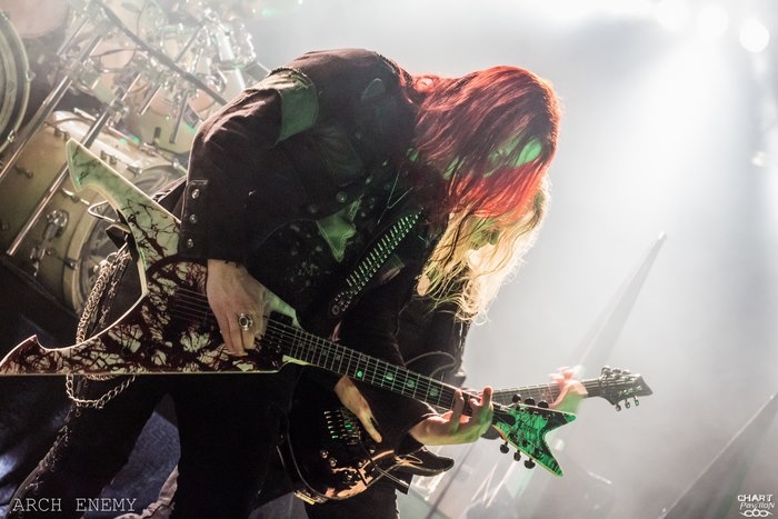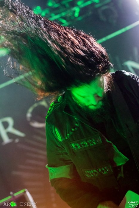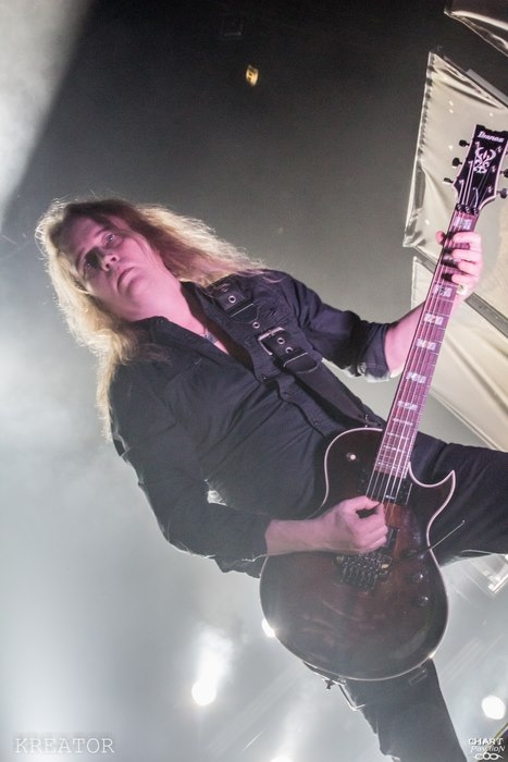 Quand ça ne veut pas, ça ne veut pas ! C'est ce qu'on dit quand le sort s'acharne. Et en effet, Lyon et ses bouchons et la pluie fine nous aurons suffisamment retardés pour que j'arrive devant DRONE, prêt à prendre les photos mais malheureusement trop tard, juste à la dernière note du dernier morceau. Je suis donc complètement passé à côté de cette performance et c'est bien regrettable car ce groupe me semblait vraiment intéressant. Dommage, une prochaine fois. C'est donc avec HELL que je commence cette soirée. Ce groupe mené donc par Andy SNEAP mélange heavy traditionnel et quelques parties thrash old school. L'ensemble musical est plutôt bon mais il y a certains éléments qui semblent refroidir un bon nombre de personnes ici présentes. En effet, le chanteur est plutôt déstabilisant. Celui-ci utilise un micro casque pour chanter mais passe encore, c'est surtout son chant et son attitude scénique qui ont du mal à passer. On se demande un peu quel est le message qui se cache derrière cette attitude et cette couronne d'épine ainsi que cette auto flagellation publique. J'ai le sentiment que beaucoup de personnes ici présentes se sont un peu demandé ce qui se passait et si tout celà était vraiment nécessaire. On sent que le public n'est pas vraiment là pour ça, à part quelques convertis. Cela se vérifie d'ailleurs par l'attroupement assez conséquent dans la salle du bar. ARCH ENEMY fait son entrée comme de coutume sur « Tempore Nihil Sanat » avant de se lancer sur « Enemy Within ». C'est le moment pour nous tous de découvrir Alissa au chant mais aussi Jeff LOOMIS en tant que guitariste fraîchement débarqué dans le groupe. La rumeur veut que l'ex guitariste de NEVERMORE ait rejoint la formation suédoise le jour même pour le concert et que ceux-ci aient à peine répété dans les loges avant le concert. En tout cas, le résultat sur scène est probant car le jeu de Jeff est réellement bon et son implication scénique est totalement naturelle. Entre Alissa et Jeff LOOMIS, ARCH ENEMY a changé de visage en 2014 mais l'énergie est au rendez-vous comme si rien ne s'était passé. Les morceaux s'enchaînent avec précision avec de belles pièces, « War Within », « Revolution Begins », « My Apocalypse », « Under Black Flags We March », « No Gods, No Master », « We Will Rise », « Nemesis »... Tous les gros morceaux du groupe sont là et tous les ingrédients réunis pour un set détonnant. Michael AMOTT est toujours au top et Alissa WHITE-GLUTZ donne l'impression d'avoir toujours été dans le groupe. Avec ses 30 ans de carrière, KREATOR n'est pas un groupe à prendre à la légère. Mille PETROZZA emmène le groupe depuis ses début avec férocité à l'instar de groupes tels DESTRUCTION ou SODOM. C'est grâce à des formations telles que celles-ci que le thrash allemand est largement sorti de ses frontières pour l'amener à une reconnaissance mondiale. C'est quasiment un groupe de légende que voici. Les choses sont de toute manière très vite posées avec « Violent Revolution » et « Civilization Collapse ». L'espace scénique est utilisé à son maximum par le quatuor. Les lumières sont impressionnantes et la facture doit être élevée en fin de concert ! Un écran a été disposé au-dessus de la batterie afin d'y diffuser des images de pochettes, quelques vidéos tirées de clips du groupes et autres mises en scène. Malheureusement, le jeu de lumière étant déjà très impressionnant, les vidéos ressortent assez mal et on distingue parfois à peine ce qui est projeté. Dommage même si l'outil était intéressant mais non plus indispensable. C'est la musique qui domine ce show et son efficacité est légendaire. Avec des titres comme « From Flood Into Fire », « Extreme Aggression » ou « Phobia », il y bien là de quoi mettre tout le monde d'accord sur l'efficacité germanique en matière de thrash metal. KREATOR revient en rappel avec une surprise qui n'en est pas forcément une mais qui fait toujours plaisir. En effet, une cover d'IRON MAIDEN est toujours la bienvenue, surtout lorsqu'il s'agit de « The Number of the Beast » bien re-dynamisée par le quatuor. Le combo conclue sont set sur « People of the Lie » et « Flag of Hate » enchaîné de « Tormentor » largement ravageur. KREATOR est une bête de scène franchement impressionnante. On se serait attendu à trouver un Transbordeur plein à craquer mais la jauge n'a pas affiché complet. L'ambiance était là et entre ARCH ENEMY et KREATOR, l'affiche valait vraiment le déplacement. C'était une très belle affiche, la première date de cette tournée européenne qui plus est et on remercie MEDIATONE pour leur invitation. Ce concert fera date, il n'y a nul doute là-dessus. |