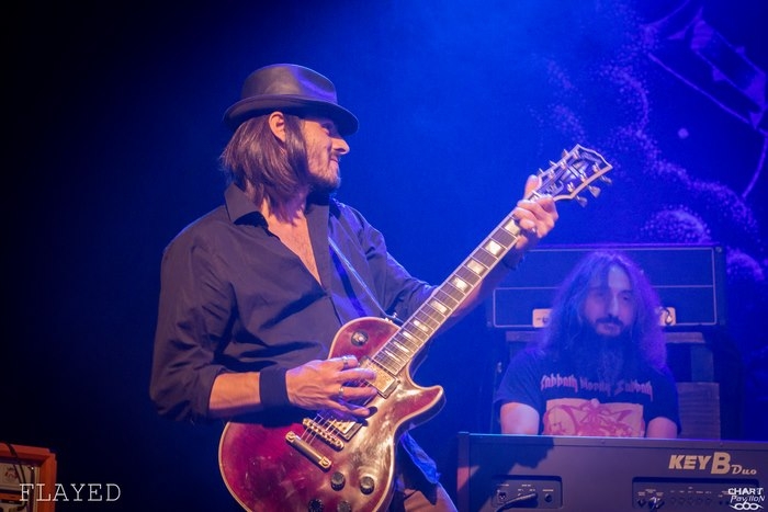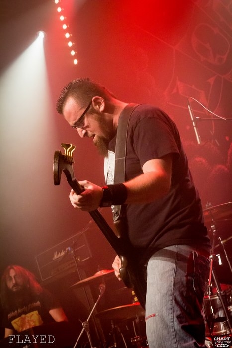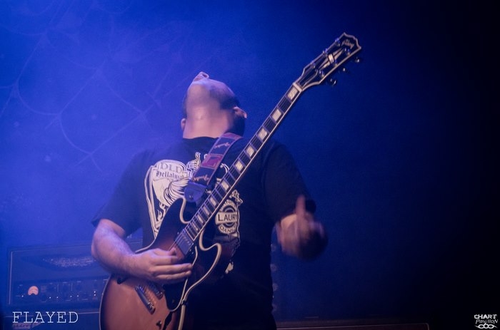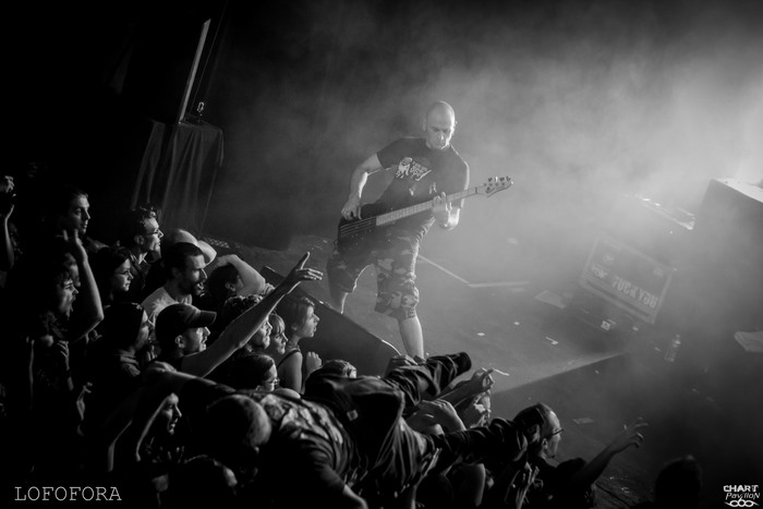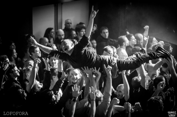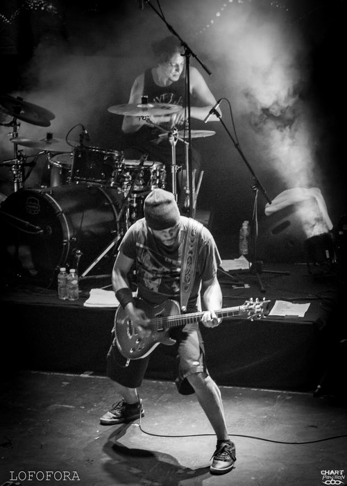 C'est BOTTLE NEXT qui ouvre cette soirée avec leur style bien particulier et bien à eux. En effet, ce duo est réellement hors norme avec un style hard rock acoustique décapant. Il faut les voir pour y croire mais oui, c'était bien réel. Pierre à la guitare et au chant est d'un niveau assez exceptionnel et gavé d'idées toutes aussi percutantes les unes que les autres. Les boucles de guitare l'aident forcément un peu et lui permettent d'ajouter des couches de riffs par dessus les uns des autres ce qui rend l'ensemble assez massif. Cette prestation est totalement réussie et permet au groupe de conquérir sans aucun mal la salle. Une idée judicieuse que de les avoir placés sur cette affiche et permis à ce public de les avoir découverts. S'en suit la performance de FLAYED. Ce groupe commence a être bien connu des lyonnais. Les membres sont originaires du coin et certains font même partie de GODDAMN, autre formation lyonnaise bien apprécié du public local. FLAYED est la caution AC/DC de la soirée. On ne peut s'empêcher de penser à la formation australienne tant ce combo nous le rappelle. Sa manière de faire du rock, d'agencer des riffs décapants a de quoi séduire tous les fans de rock de la région, et même plus. Par ailleurs, ces musiciens sont plutôt bien habitués à la scène et cela se ressent sans aucun mal dans la manière de se comporter face au public lyonnais déjà conquis. Pour ceux qui ne les ont pas encore vus, c'est un groupe à conseiller mais je doute que vous puissiez rester longtemps sans y être confrontés tant cette formation est en train d'exploser. Il faut dire que tous les ingrédients sont là pour vous convaincre. Comme je le signalais en préambule, LOFOFORA est de retour dans la région un mois à peine après une très bonne date sur Saint-Étienne. Le groupe est néanmoins sur un terrain de jeu un peu différent. Le Ninkasi Kao est plus petit que le Fil mais le nombre de spectateur est légèrement plus élevé. Cela rend forcément les choses un peu plus intéressante lorsque le public commence à s'échauffer pour enfin totalement exploser. La set-list a évolué et cela nous évite de nous refaire le même concert, ce qui en soit constitue un argument pour ceux qui pourraient avoir la crainte de voir la même chose entre les deux dates. Le groupe attaque avec le ténébreux « Notre Terre » avant de lancer le désormais classique « L’œuf ». L'effervescence commence à cet instant pour ne se dissiper qu'à la fin du set. Les slams s'enchaînent en continue, même sur les titres le plus calmes. Lyon est conquis par ce groupe depuis pas mal d'années déjà. Il n'y a qu'à se remémorer les dates précédentes pour s'en convaincre. Les morceaux s'enchaînent et on a droit aussi bien à des classiques tels que « Le Fond et la Forme », « Memoire de Singe », « Envie de Tuer » que les petits nouveaux, « Pornolitique », « Contre les Murs », « Le Malheur des Autres » issus du dernier opus, « L’Épreuve du Contraire ». L'équilibre entre morceaux rapides et efficaces et tempos plus bas est parfait. L'énergie est au rendez-vous et totalement maîtrisée sur chaque riff de cet ensemble. « La Tsarine » enchaîné de « Justice Pour Tous » produisent leur effet et comme toujours « Autopilote » fédère la salle. Un hommage est rendu à celui qui vient de nous quitter récemment et ami de longue date du groupe avec lequel ils étaient liés à travers LE BAL DES ENRAGES, Schultz, leader de PARABELLUM. LOFOFORA reprend pour l'occasion « Amsterdam » version PARABELLUM avec une énergie détonante. « Double A » conclue ce set de manière extraordinaire. En effet, l'un des membres de MEDIATONE fête ses 40 ans et c'est une belle occasion pour sabrer le champagne sur scène avec toutes l'équipe de l'organisation, rejoint bientôt par un bon nombre de fans. Une fin apocalyptique sur un morceau qui fait toujours du bien à enttendre ! Soirée mémorable que celle-ci ! Un grand merci à MEDIATONE et LOFOFORA pour leur accueil ! |