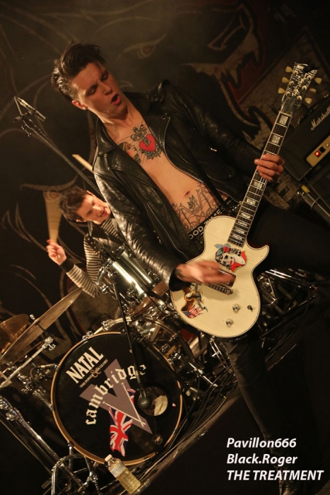 THE TREATMENT, parlons-en donc ! Ce groupe de Cambridge ville de la « perfide albion » délivre un rock n’roll « high energy » teinté de punk. Ceux qui les ont déjà vus savent à quoi s’en tenir. Alors ce soir ils déboulent sur la scène du Marché Gare avec sous leurs bras leur dernier opus en date « Running With the Dogs » et ça va faire mal, très mal en fait car dès le premier titre nous allons être collés contre les murs de la salle.