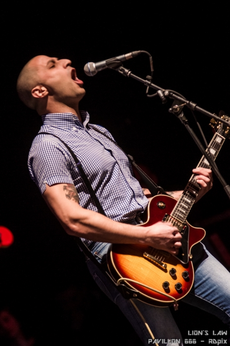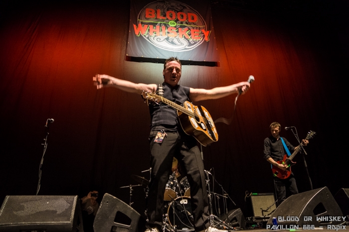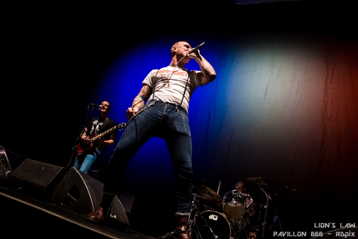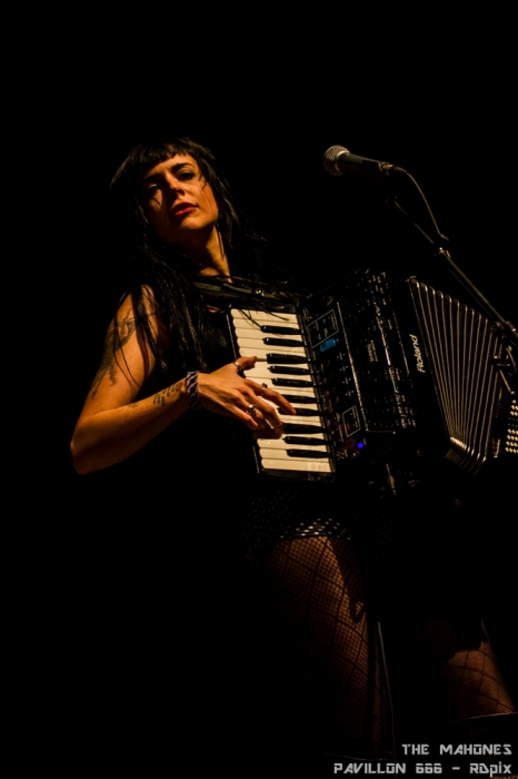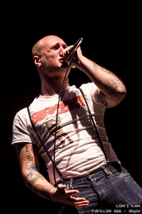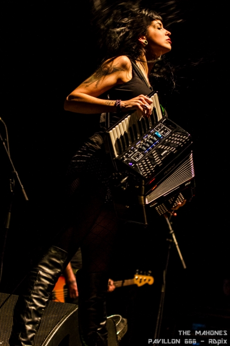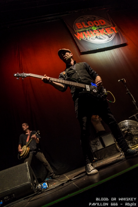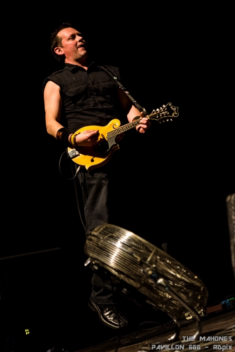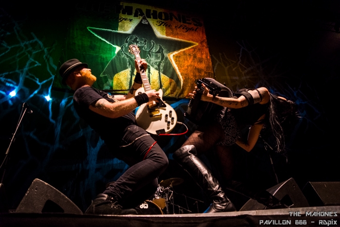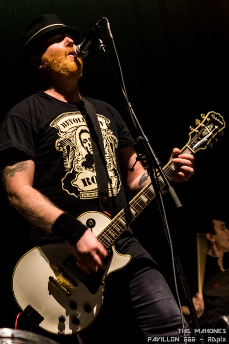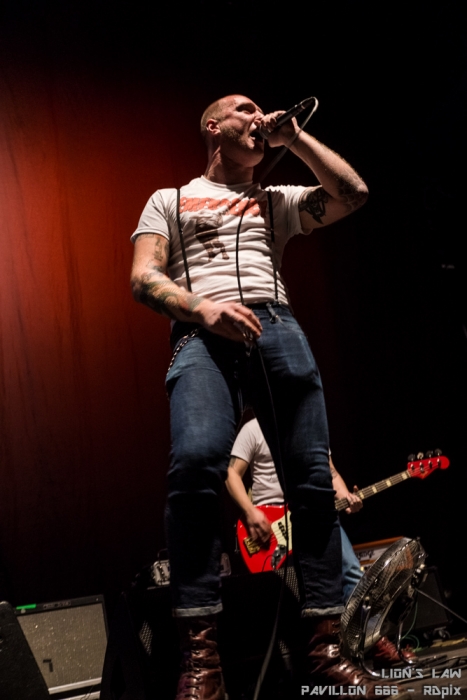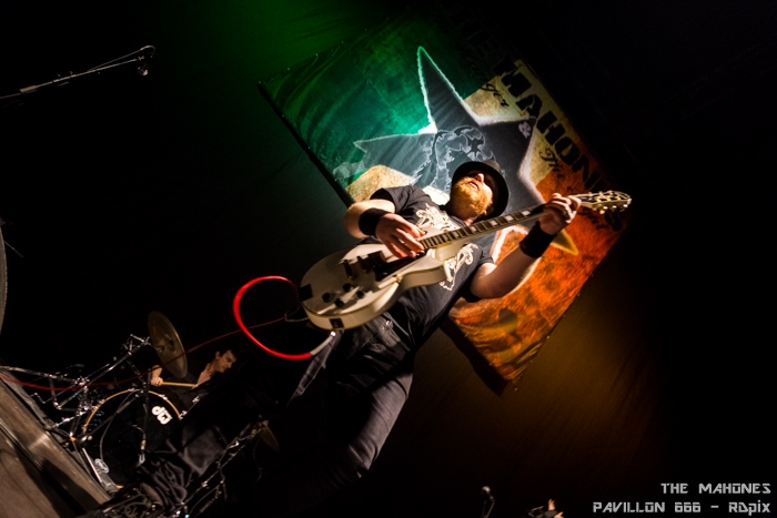 C’est Bryan McPherson qui a ouvert le bal devant une salle à demi remplie mais pas à moitié éméchée. Invité par les Dropcick Murphys sur leur tournée européenne, il était chargé de chauffer la foule. Bob Dylan style, seul sur scène, armé de sa gratte acoustique et de son harmonica, il ne s’est pas dégonflé. Bien que n’ayant pas un registre punk/rock, le public lui a fait un accueil très favorable. En effet, le chanteur mettait une telle énergie dans ses chansons que la foule présente ne pouvait rester de marbre. Son répertoire aborde des thèmes divers comme les médias et la manipulation, les violences policières, le droit des homosexuels et bien d’autres inégalités. Il interprétait ses textes avec une telle énergie que la salle en était contaminée. Très vite, on pouvait voir des gens danser et l’encourager. J’ai pu échanger quelques mots avec lui entre deux concerts alors qu’il se promenait parmi la foule. Il était impressionné par le public, de par son nombre et de par l’accueil qu’il fait aux artistes. Il a avoué avoir beaucoup aimé l’enthousiasme de la salle et qu’il n'avait encore rien vu de tel durant sa tournée avec les Dropkicks. C’est ensuite au tour des Lion’s Law de monter sur scène. Crânes rasés, bretelles et rangers aux pieds, les hooligans parisiens ont fait monter le niveau d’un cran aussitôt leur set commencé. Le quintet nous a servi un punk dans la plus pure tradition British de la fin des années 70. Lion’s Law ça sent la sueur de supporteurs dans les tribunes d’un match de foot rafraîchies à grands coups de canettes de pils. C’est énergique et ça vous donne envie de sauter et balancer des coups de poing dans le pit. Ici pas de backdrop à l'effigie du groupe. En lieu et places, 3 spots bleus blancs et rouges braqués sur la toile noire. Mais le nationalisme s’arrête là. Le répertoire du groupe est chanté en anglais dans sa quasi-totalité. Avec un soupçon d'accent français, tout de même, qui apportait un peu de charme à la chose. Ben quoi ? On a l’accent le plus sexy au monde paraît-il. Faut bien s’en servir non ? Dans la fosse, ça se bastonnait du début jusqu’à la fin. Une partie du public reprenait les refrains pour ajouter encore plus de puissance aux chœurs assurés par les musiciens pendant que le leader attisait la foule. Du show bien testostérone et efficace qui a assurément mis dans le bain les quelques récalcitrants qui n’étaient pas encore chauds. Après une courte interruption, c’était au tour de Blood or Whiskey de monter sur scène. Voilà peut-être le seul groupe véritablement originaire d’Irlande qu’on aura vu ce soir. Mélangeant du punk et des sonorités celtiques, le groupe couplait le tout à un jeu de scène rock'n'roll. Et force est d’admettre que la sauce prend très bien. Le public est chaud comme la braise. À tel point que le groupe ne tarde pas à demander un circle pit et ne s’est pas fait prier longtemps. Les morceaux n’étaient pas tous aussi dynamiques que ceux de Lion’s Law. Mais l’énergie mise en oeuvre par les musiciens était suffisante pour faire bouger la foule à elle seule. Les mélodies qui donnaient l’aspect folklorique à leurs compositions étaient assurées par un musicien qui alterne entre la flûte et l’accordéon avec aisance. Un musicien armé d’un banjo remplissait énergiquement la gauche de la scène à lui tout seul. Le leader occupait le rôle de guitariste acoustique et se chargeait également du chant principal. Mais ce double rôle ne lui suffisant pas, aussitôt ses couplets finis, il courait d’un côté de la scène à l’autre pour motiver la foule, ne lui laissant aucun répit. Comme les deux groupes précédents, le set était court. 30 minutes, pas plus. C’est dommage, on en aurait bien repris un peu. Mais l’heure tournait et c’était au tour des Mahones de faire leur show. Le quintet canadien lui aussi n’a eu que peu de temps pour son set. Mais quel dynamisme durant cette demi-heure... L’esprit punk celtique était bel et bien là devant nous. À gauche de la scène, le musicien alternant banjo et mandoline sautait dans tous les sens. (D’ailleurs, je ne sais pas si c’est une tradition irlandaise mais le joueur de banjo était constamment à gauche de la scène alors que l’accordéon se trouvait à l’opposé. Et ce pour tous les 3 derniers groupes de ce concert.) Le chanteur guitariste et l’accordéoniste se croisaient régulièrement devant la scène pour offrir des jeux en duos virtuoses. Seul le batteur cloué sur son tabouret et le bassiste restaient sur place sans trop faire le spectacle. Ils n’en faisaient pas moins leur boulot avec brio, en plus d’accompagner le chanteur de leurs voix quand c’était nécessaire. Katie McConnell était insaisissable. Elle n’était jamais au même endroit, à part pour ses prestations au micro. Elle se déplaçait en jouant ses solos d’accordéon endiablés tout en se balançant d’avant en arrière, faisant preuve d’une souplesse à rendre jaloux son instrument. Entre deux morceaux, elle a pris le temps de remercier le public venu nombreux et a souhaité une joyeuse St Valentin à tous, le tout dans un français quasi parfait. Les Mahones, malgré le peu de temps qui leur était accordé, ont joué une grande partie de leurs titres les plus connus et entraînants. Et parmi eux, une version punk très accélérée de l’incontournable "Wild Rover". Chanson qu’on retrouvera dans une version plus traditionnelle dans le set de Dropkick Murphys. Setlist : - A Great Night on the Lash - Paint the Town Red - Shakespeare Road - The Hunger & the Fight - Give It All Ya Got (or Forget About It) - The Wild Rover - Prisoner 1082 - Is This Bar Open 'Til Tomorrow - Drunken Lazy Bastard Une prestation rafraîchissante et un très bon plat de résistance avant le dessert que tout le monde attendait. Le rideau qui cachait