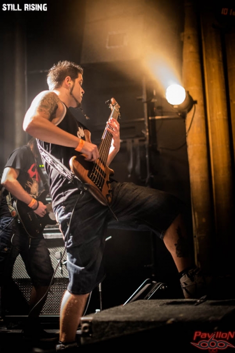 La team de Damage Done Productions nous a réservé une belle soirée plus orientée metal/metalcore/deathcore. Ce n’est pas mon style de prédilection mais je ne m’aventure pas à juger sans avoir écouté ou vu en live. La soirée débute avec des locaux, STILL RISING. Les messins ont d’ailleurs prévu de profiter de l’occasion pour tourner un clip live sur leur dernier titre. Le groupe est dynamique, le son est puissant, les gars se démènent sur scène. Tid, au chant, interpelle le public et appelle à la mobilisation générale pour le dernier morceau (et donc le tournage du clip). Le public déjà bien mis en jambe par le set du combo messin ne se fait pas prier et fait vibrer le sol des Trinitaires ! Cependant, même si l’ensemble est énergique et très bien exécuté, je reste un peu sur ma faim, il me manque un petit je ne sais quoi… Le talent et le potentiel sont là, je vais suivre l’évolution du groupe car selon moi ils n'ont pas fini de nous surprendre. Les nancéiens d’EXPECT ANYTHING succèdent à STILL RISING et ce, sans se faire prier. Ils attaquent leur set direct. C’est brut, puissant et plein d’énergie. Le public n’est pas avare en slam et autre pogot. La prestation d’EXPECT ANYTHING est carrée certes mais avec un petit grain de folie, les nancéiens sont des fous furieux, ça jump, ça harangue la foule et le public semble plus que réceptif. EXPECT ANYTHING a su tirer son épingle du jeu et m’a fait passer, ainsi qu’au public un bon moment. Première tête d’affiche : les anglais de BURY TOMORROW. On passe un cran au-dessus. Daniel, au chant, est survolté. En effet il s’agit de la première date française des anglais pour l’année 2015. Son chant mélant growls et screams est puissant et maitrisé. Il est contrebalancé tout à coup par un peu de douceur : la voix de Jason (guitare et chant clair). Cette voix… juste sublime. Je me suis surprise à avoir marqué un temps d’arrêt photographique lors d’un de ses solo juste pour l’écouter. Sur scène ça déménage, les anglais sont en forme et jump à gogo. Le public se laisse embarquer sans aucune difficulté dans l’univers de BURY TOMORROW et à juste titre. Moi qui ne suis pas, comme je te l’ai déjà dit, une addict du genre je dois bien avouer que j’ai un petit coup de cœur pour le groupe. Le set passe très vite, un peu trop… on en aurait voulu encore un peu : 1. Man on Fire 2. Garden of Thorns 3. Royal Blood 4. Of Glory 5. Watcher 6. Knight Life 7. An Honourable Reign 8. Lionheart On a un peu de temps pour se remettre du set des anglais, et pour observer ce qui est en train de se mettre en place sur scène. Un décor mêlant ambiance fantôme, zombie, guerilla est en train d’être monté. L’impatience se fait sentir dans la foule. C’est le moment que beaucoup attendent, LA tête d’affiche : CALIBAN. Les allemands sont attendus de pied ferme par leurs fans, je crois d’ailleurs Laurent fraîchement tatoué sur le bras et pas n’importe quel tatouage puisqu’il s’agit de la pochette du dernier album des allemands. Tu pourras voir la photo dans la galerie. Poursuivant la tournée « Ghost Empire Tour », Andreas et ses acolytes ont la patate ce soir et nous envoie une boule d’énergie et de puissance en pleine face. Le chant d’Andreas est maîtrisé, agressif et tend vers le deathcore ce qui n’est vraiment pas pour me déplaire. Patrick malmène ses futs et envoie du bois, chacun maîtrise parfaitement son instrument c’est lourd, dynamique, et juste excellent. Le chant clair assuré Denis est également très bon, juste et empreint d’émotions. CALIBAN est juste une machine de talent qui t’assène coup sur coup et te met K.O. par ses morceaux entêtants, et une grande maîtrise dans ce qu’ils font. S’ajoute à cela une présence indéniable sur scène et tu prends ta déculottée de la soirée : 1. Intro 2. I Rape Myself 3. We Are the Many 4. Devil's Night 5. nebeL 6. Forsaken Horizon 7. Davy Jones 8. I am Ghost 9. Wolves and Rats 10. The Beloved and the Hatred 11. King 12. Memorial 13. Chaos - Creation 14. yOUR Song CALIBAN nous a offert une puissante et magnifique conclusion à cette troisième édition du Haunting The Chapel. Me voilà moins réfractaire au metalcore je l’admets ! Un grand bravo à Damage Done Productions qui nous a encore offert ce soir un plateau de qualité. Un grand merci pour leur accueil toujours fort sympa et pour tout le travail qu’ils font pour nous permettre d’assister à des concerts de qualité. |