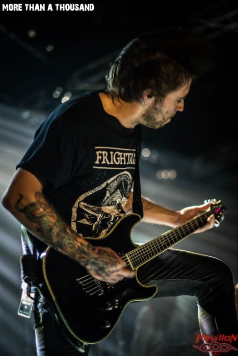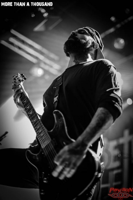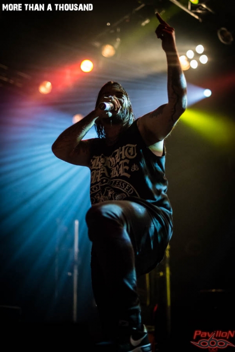Mais bon, j’ai été surprise par le très bon plateau metalcore du festival Hauting The Chapel de Damage Done Prods, donc je ne me formalise pas et attends de voir ce que ça va donner ce soir. Je ne connais pas du tout les deux premiers groupes et je ne connais que vaguement les deux suivants. Le premier groupe arrive sur scène, les Italiens d’UPON THIS DAWNING. Je suis vraiment très mitigée quant à la prestation de ce groupe. Il y avait du bon et du beaucoup moins bon. J’ai aimé la voix cassée/éraillée de Matteo Botticini sur le chant dit « clair », qui m’a quelque peu surprise et qui permet au groupe de se démarquer des clichés du genre. Musicalement parlant c’est bien exécuté et il y a une bonne énergie. J’ai beaucoup moins aimé la voix growl, qui sans être pour autant mauvaise, n’avait rien d’exceptionnel. La chorégraphie façon pantin désarticulé sous drogues m’a également lassée assez rapidement. Je dirais qu’il y a un potentiel certain mais peut-être pas complètement exploité. Le set a à peine duré 20 minutes, c’est donc difficile d’avoir un avis tranché… : 1. 13 2. Anima 3. Embrace the Evil 4. A New Beginning 5. Obey Les anglais de POLAR prennent le relais. Adam, au chant, débarque sur scène en arborant un K-Way® militaire du plus bel effet… Je n’ai pas tout à fait saisi le concept du coupe-vent en salle mais bon soit… La salle s’est entre-temps remplie, même si, on ne fera pas salle comble ce soir. Le public est plus jeune qu’à l’accoutumée même si on remarque des gens de tout âge. POLAR ne réinvente pas le genre mais ce qu’ils font, ils le font bien et nous font passer un moment sympathique. C’est plein d’énergie, et ils réussissent à faire bouger la salle. Adam parviendra d’ailleurs, en fin de set à faire s’assoir toute la salle au sol pour finir sur un jump collectif assez impressionnant. Encore une fois un set très court d’une vingtaine de minutes Place maintenant à MORE THAN A THOUSAND. Les Portugais ont des fans dans la salle et c’est sous les acclamations de la foule qu’ils débarquent sur scène. Vasco, au chant, est bien présent et s’adresse régulièrement au public. Le groupe va redonner un coup de fouet au rythme de la soirée et c’est pour moi une très bonne surprise. Les parties de chants clairs sont exécutées à deux, ce qui donne une autre dimension à ces parties, d’autant plus qu’elles sont vraiment bien interprétées. Les Portugais remercient régulièrement le public pour son accueil, et leur bonne humeur fait plaisir à voir et est communicative. Le set est vraiment de qualité, chacun maitrise parfaitement son sujet et musicalement ça se démarque des stéréotypes du metalcore. Pour résumer, une bien bonne surprise et une prestation couronnée d’un succès mérité. Malheureusement je reste sur ma faim… Encore un set bien court… 1. Feed The Caskets 2. Heist 3. Fight Your Demons 4. Cross My Heart 5. It's Alive (How I Made A Monster) 6. No Bad Blood MORE THAN A THOUSAND quitte la scène sous les applaudissements du public. Et moi je suis convaincue ! C’est au tour de la tête d’affiche de ce soir de prendre possession de la scène…BETRAYING THE MARTYRS. Je ne cache pas que je les attends de pied ferme, après avoir regardé quelques clips du groupe je suis assez curieuse de voir ce que le groupe a à proposer en live. D’autant plus que le groupe compte dans ses rangs des Français (un Anglais et un Russe aussi cela dit). Nous y voilà. Sous les acclamations du public… et les hurlements stridents de deux jeunes demoiselles visiblement toutes émoustillées derrière moi. Mon tympan a mis quelques jours à s’en remettre d’ailleurs… Nos six acolytes arrivent sur scène, sous les crises épileptiques des stroboscopes (que je maudis en passant ah ah ah… ils ont pourri bon nombre de clichés). Je vois un géant arriver devant moi… Je ne sais pas combien il mesure mais il m’a semblé immense… Le fait qu’il soit plutôt mince doit contribuer à cet effet mais je pense qu’il est vraiment très grand…Aaron Matts. Ce mec a un charisme indéniable. Ok il est grand mais il a une présence qui met tout le monde d’accord. Et il a lui aussi un K-Way®...Bon... (sourire) Je vais prendre ma petite claque du jour et elle s’appelle BETRAYING THE MARTYRS. Ce groupe est tout sauf un clone des autres groupes de matalcore. Il est même assez atypique. Matts a un growl bien particulier tendant vers le deathcore. Le chant clair de Victor est très maîtrisé et très metalcore. Musicalement ça tarte, Mark à la batterie martèle ses fûts et ça blaste même sévère. Baptiste et Lucas aux grattes envoient du riff bien accrocheur et se démènent. Il en est de même pour Valentin à la basse, qui gère son instrument très précisément, et qui de plus est très présent et adepte de la moulinette capillaire ! Victor fait voler son clavier… bref la performance scénique et la maitrise musicale et vocale sont de rigueur ! C’est carré mais il y a ce petit grain de folie, cette spontanéité que j’aime et que je retrouve chez BETRAYING THE MARTYRS. Fort heureusement le set est plus long que pour les supports : 1. Afterlife 2. Jigsaw 3. Man Made Disaster 4. Where the World Ends 5. Love Lost 6. Let It Go 7. Drum Solo 8. Life Is Precious 9. What's Left of You 10. Liberate Me Ex Inferis 11. Legends Never Die 12. Because of You Sceptique au départ je dois avouer que la KUFA a fait très fort ce soir et j’ai plus ou moins été prise à contre-pied puisque j’ai vraiment apprécié la soirée, en particulier les performances de MORE THAN A THOUSAND et bien évidemment BETRAYING THE MARTYRS. Je notifie un coup de cœur à ce concert pour ces deux derniers groupes, enfin surtout le dernier (ah ah). Un grand merci à l’équipe de la KUFA pour son accueil comme toujours très sympathique ! See ya ! |