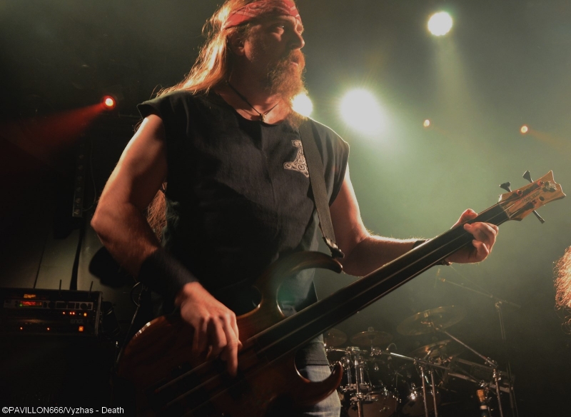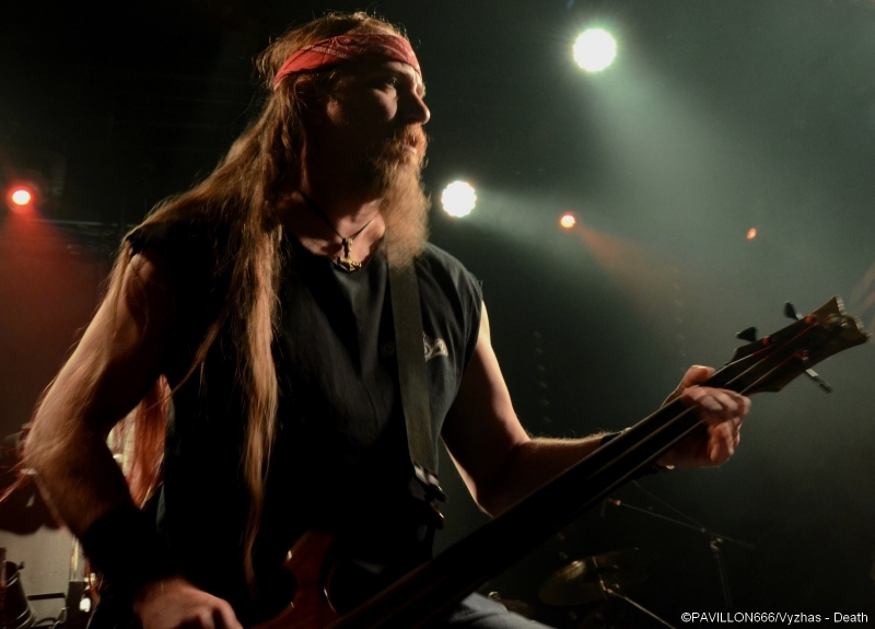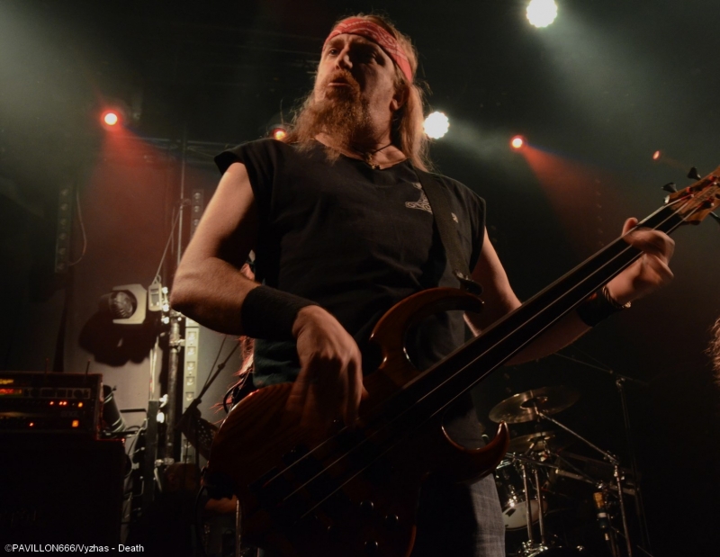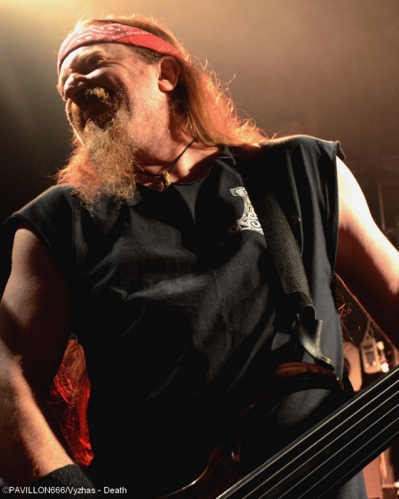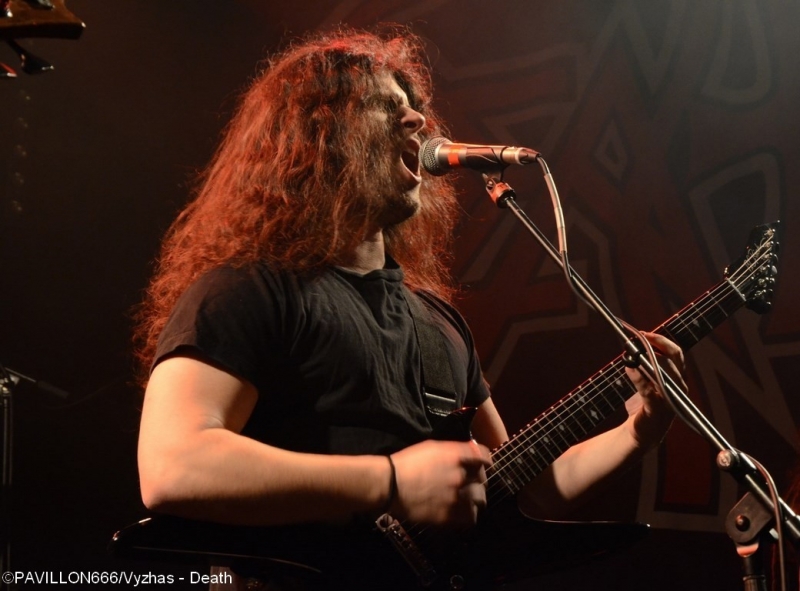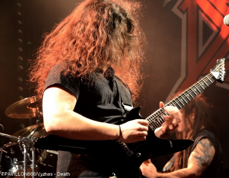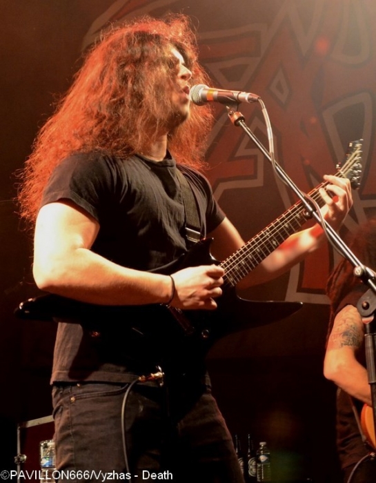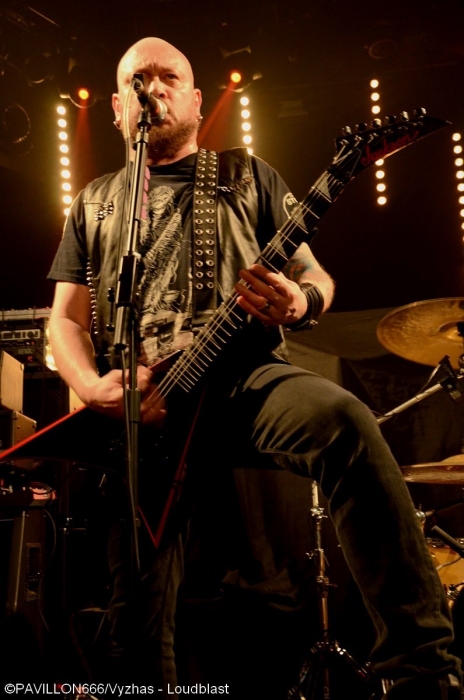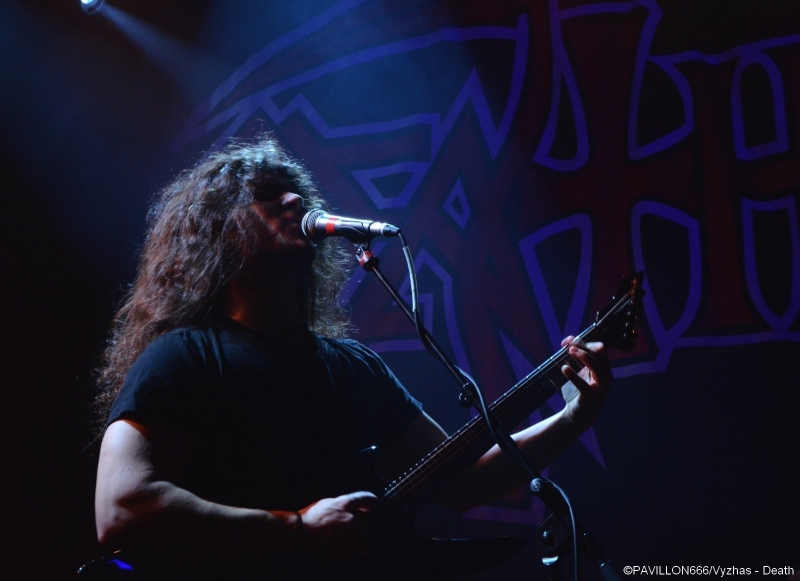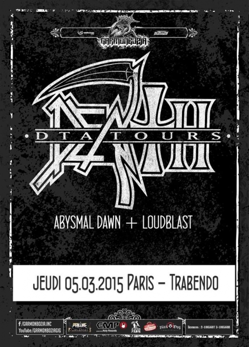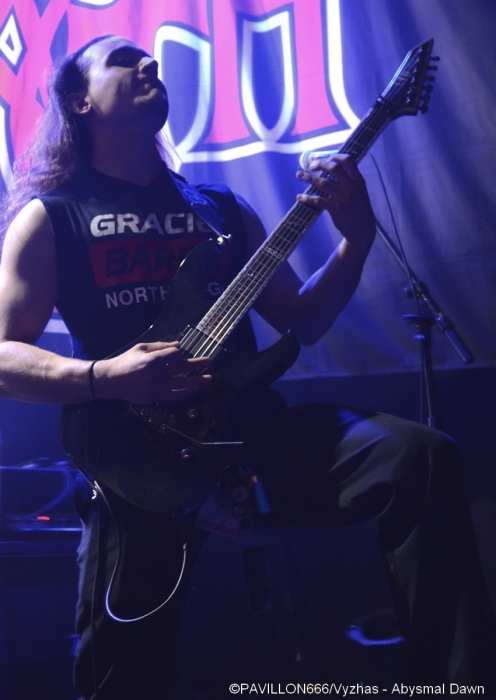 Depuis 2013, c’est au tour de Death de connaître une seconde jeunesse douze ans après la disparition tragique de son maître à penser, Chuck Shuldiner. Leur passage au Trabendo il y a presque deux ans ainsi qu’à la dernière édition du Hellfest avaient laissé aux deathsters un souvenir mémorable de cet hommage à la musique de Chuck. Outre le côté « best of » des performances, chaque tournée célèbre un album particulier. Après « Human » (1991) il y a deux ans, l’album « Symbolic » fête ses vingt ans et les pionniers du Death Metal reviennent au Trabendo pour leur unique date française. Premières parties obligent, c’est à Abysmal Dawn d’ouvrir le bal devant un public clairsemé. Depuis maintenant douze ans, les Américains formés à Los Angeles officient dans un death à la fois brutal et technique. Le moins que l’on puisse dire c’est que le combo en a dans le ventre avec leurs compositions bien plus rentre-dedans et efficaces, et beaucoup moins linéaires qu'elles ne paraissent sur albums. Les Californiens défendent ce soir leur quatrième opus « Obsolescence » sorti en octobre dernier, et le font en toute sobriété sans backdrop ou divers artifices scéniques ; la communication avec le public se limitant également au strict nécessaire. Malgré une setlist variée et des virtuoses donnant tout ce qu’ils ont, le son brouillon ne met pas en valeur le répertoire du groupe, et les growls profonds bien que parfaitement exécutés restent sous-mixés. Même si ce n’est pas l’effusion de joie et de violence dans le pit, le public se révèle néanmoins assez réceptif aux titres d’Abysmal Dawn, en témoignent les quelques headbangs qui commencent à poindre. Dommage que le son n’ait pas été à la hauteur de leur prestation. Ils le voulaient, ils l’ont eu. Loudblast a mis la main à la poche, avec l’aide de leurs fans, et a réussi à rejoindre la tournée de Death. Une expérience que nos compatriotes ont choisi de réitérer puisque vingt ans plus tôt ils partageaient l’affiche avec les Américains. Les nordistes investissent les planches décorées d’étendards à l’effigie de leur dernier album « Burial Ground » au son retentissant d’une intro funèbre. C’est devant une salle beaucoup plus remplie que Stéphane Buriez et ses acolytes vont déclencher un véritable déluge dans le Trabendo. Le vocaliste/guitariste et leader de la formation Death/Thrash a envie d’en découdre et invite les Parisiens à « foutre un putain de bordel ». La motivation des musiciens se fait clairement ressentir, et ces derniers font preuve d’une présence scénique remarquable. Le jeune Junior Rodriguez, remplaçant Hervé Coquerel actuellement en tournée avec Black Bomb A, abat un travail de titan derrière les fûts. Piochant équitablement dans son dernier album et parmi les classiques tels que « Cross The Threshhold » ou « My Last Journey », Loudblast peine tout de même à convaincre les oreilles un peu plus « pointilleuses » qui n’auront pas manqué de remarquer le son à nouveau approximatif. Si en plus la musique des Calaisiens ne passionne déjà pas quelqu’un comme votre serviteur, l’ennui se manifeste malheureusement assez vite. Une prestation en demi-teinte techniquement parlant, mais un bon point toutefois pour l’enthousiasme de chacun des membres. Setlist : A Bloody Oath The Bitter Seeds The Abstract God From dried bones Presumption of Survival Emptiness Crushes my Soul Disquieting beliefs Cross the Threshold My Last Journey Le malheur des uns fait le bonheur des autres. N’ayant pas trouvé de remplaçant suite au nouveau split de Massacre, Death a dû rallonger son set de 30 minutes. Ce qui n’est pas pour déplaire aux fans qui attendent le « tribute band » de pied ferme. Qui dit hommage dit aussi line up d’exception : le guitariste Bobby Koelbe, l’impressionnant et tentaculaire bassiste Steve Di Giorgio, l’imposant marteleur Gene Hoglan tous les trois présents sur « Symbolic » et Max Phelps qui s’est, pour l’occasion, réincarné en Chuck, reproduisant ce timbre rocailleux si typique. C’est devant une salle pleine à craquer que résonnent les premières notes de « The Philosopher ». La foule ne se fait pas prier pour headbanguer et pogoter à tout-va. La setlist fait bien évidemment la part belle à « Symbolic » avec pas moins de cinq titres (« Symbolic », « 1000 Eyes », « Without Judgement », « Zero Tolerance », « Crystal Mountain ») et ne fait l’impasse sur aucun titre culte de chaque album de Death. Le public est aux anges face à ces morceaux qui ont forgé la légende et force est de constater qu’ils n’ont pas pris une ride. L’exécution est quasi parfaite, il est néanmoins regrettable de remarquer quelques pains de la part de Bobby sur la plupart des soli. Quand on parle de Death on est en droit d’exiger l’excellence, et les quelques erreurs récurrentes du guitariste ont de quoi légèrement irriter. Après un grandiose « Flattening of Emotions », Max Phelps cède sa place à Steffen Kummerer d’Obscura durant trois titres. Il est clair à l’écoute de « Symbolic », « Zero Tolerance » et « Bite The Pain » que l’Allemand fait un peu pâle figure d’un point de vue vocal par rapport à son prédécesseur, qui, non content de posséder une texture vocale similaire à celle de Chuck, possède un coffre bien plus puissant. Le rappel sonne le retour de Max sur un medley old-school et jouissif à souhait de « Zombie Ritual/Baptized in Blood » avant de conclure cette prestation en beauté avec les dantesques « Crystal Mountain » et « Pull the Plug ». Un grand merci à Garmonbozia pour cette magnifique soirée hommage qui, espérons-le, ne sera pas la dernière de cette reformation. Setlist : The Philosopher Leprosy/Left to die Suicide Machine Overactive imagination Trapped in a corner 1,000 Eyes Without Judgement Spiritual Healing/Within 