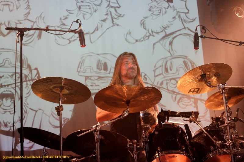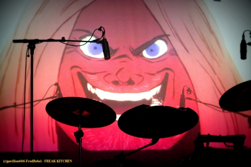 Après un break et une petite mousse, les lumières baissent et apparaît sur l’écran géant la vidéo de « FREAK OF THE WEEK », clip en dessins animés réalisé grâce au financement participatif par Juanjo Guarnido, dessinateur ultra talentueux et fan ultime de notre cuisine monstrueuse qui nous fera la surprise de venir dessiner sur scène durant le set ! Nos compères déboulent et entament leur session avec l’énergie et la bonne humeur qui les caractérisent par « Propaganda pie », sourires de Mattias, grimaces d’un Christer casqué comme d’habitude et Bjorn toujours pieds nus en hommage à Yannick Noah (naan, c’est le contraire ! ). La majorité des morceaux est issue de leur dernier album « Cooking with Pagans » mais ce qui est bien avec les FK c’est qu’ils jouent aussi des morceaux plus anciens, ce qui réveille le Divan qui commence à s’agiter, la salle est pleine et la mezzanine est ouverte. Entre chaque chanson, Mattias parle avec le public, explique qu’il s’est planté dans le branchement des Jack de sa guitare, ce qui n’est pas digne d’un musicien professionnel (c’est lui qui le dit ! ), que « Ranks of the terrified » est chiante à jouer en live mais qu’il vont la faire quand même bref, on a l’impression d’être en famille, en plus notre frontman ne cesse de dire qu’il adore la France, que nous sommes « TIP-TOP » et nous envoie des bisous en permanence ! Il sait y faire pour mettre le public dans sa poche. Arrive le titre phare du dernier album « Freak of the week » et le dessinateur Juanjo Guarnido qui, armé d’un chevalet et d’un marqueur se met à croquer nos Suédois en action tandis que ses dessins sont projetés en direct sur l’écran géant pour que tout le monde en profite. On pense le set s’achever sur « Goody-Goody », un hymne à la bonne humeur repris en choeur par le public mais avec Freak Kitchen, quand il n'y en n'a plus, il y en a encore, nos vikings déjantés décident d’échanger leurs intruments : Mattias prend la batterie, Christer la guitare tandis que Bjorn choppe la basse et entame au chant « My new haircut », titre repris par la salle dans la franche rigolade, suivi d’ « Appetizer » et « Murder groupie » qui concluent un set énergique et raffraichissant. Le Divan en ressort avec la banane, mission accomplie pour les FREAK KITCHEN qui devraient être remboursés par la sécu ! Intro ("Freak of the Week" Video) Propaganda Pie Walls of Stupidity Sloppy (Saving up for an) Anal Bleach God Save the Spleen Nobody's Laughing Private Property Teargas Jazz Chest Pain Waltz Ranks of the terrified Freak of the Week (Juanjo Guarnido dessine en live sur scène ) Porno Daddy Razor Flowers Goody Goody Suite My New Haircut (avec changement d’instruments) Appetizer Murder Groupie Pour des raisons de confidentialité YouTube a besoin de votre autorisation pour charger. Pour plus de détails, veuillez consulter nos Politique de confidentialité. |