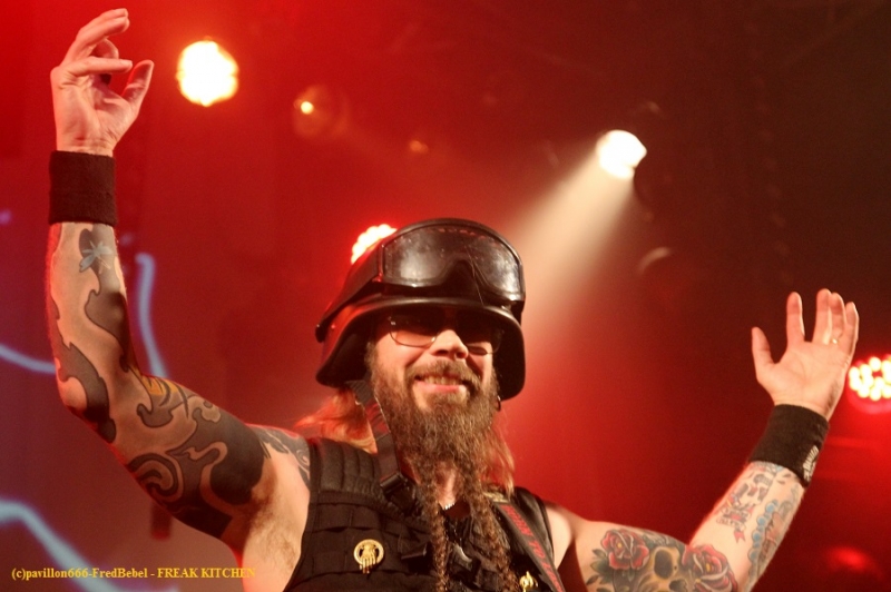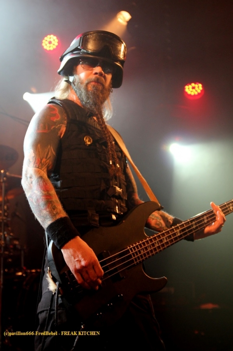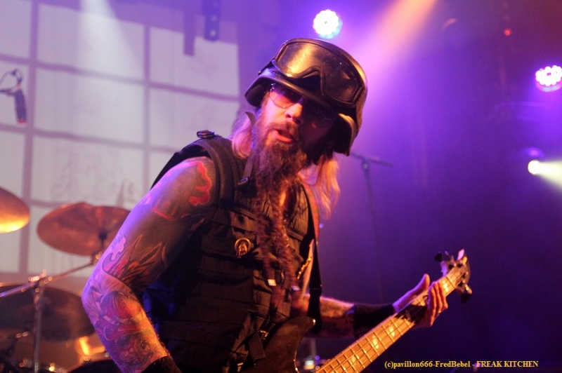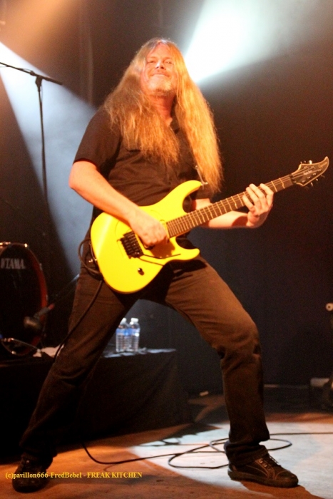C’est dans une salle assez clairsemée et d’une moyenne d’âge assez élevée (mais il y avait les Tokio Hotel au petit Trianon qui faisaient concurrence ! ) que débute la première partie incarnée par le « AYMERIC SILVERT BAND», projet articulé autour d’Aymeric Silvert, guitariste français ayant roulé sa bosse depuis le début des années 2000. Il nous propose un rock teinté de blues assez sympathique qui a malgré tout du mal à réchauffer le Divan qui attend avec impatience les Suédois déjantés. Le set d’une demi-heure reste correct quoique sans aucun jeu de scène et j’aurais préféré un groupe plus axé métal pour ouvrir les FREAK KITCHEN qui jouent une musique rythmée et énergique.