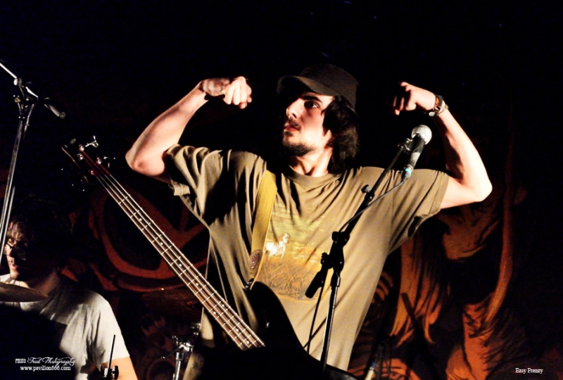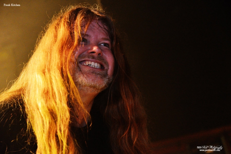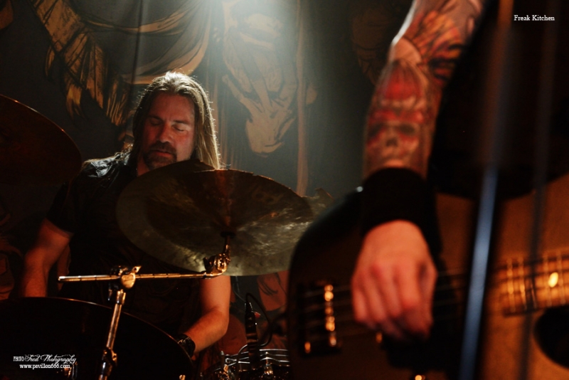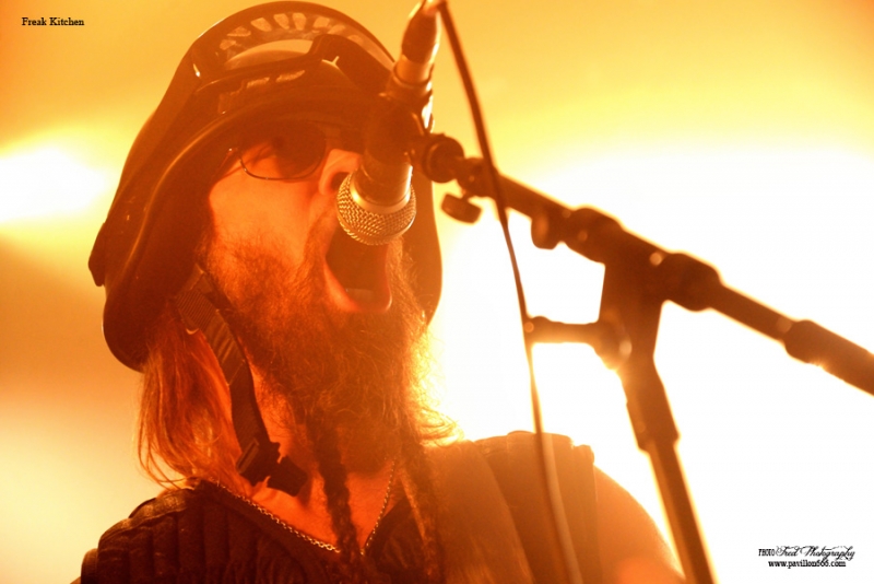 Ouf, arrivé juste au début du premier concert, je dois dire que je me suis fait un peu surprendre par l’engouement que pouvait susciter Freak Kitchen auprès du public nantais. Easy Frenzy, groupe de stoner rock de Vertou, petite ville de la région nantaise, avait déjà donc commencé et le Ferrailleur était déjà plein comme un œuf, ce qui n’arrive pas très souvent, d’une foule disparate prête à s’envoyer une bonne rasade de bon rock’n roll et passer une bonne soirée. Il faut dire que Freak Kitchen, par leur savant mélange de heavy metal, de rock et d’humour décalé savent contenter un large panel d’amateurs de musique agitée. Les Suédois viennent ce soir, à Nantes après avoir tourné dans toute l’Europe, présenter leur nouvel 8ème opus intitulé « Cooking With Pagans » sorti plus tôt dans le courant de l’année dernière. Ils n’avaient pas sorti d’album depuis 5 ans, le dernier en date étant « Land of The freak », la soirée sera l’occasion d’écouter quelques nouveautés.