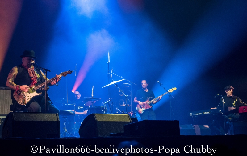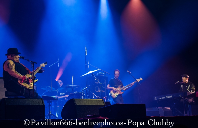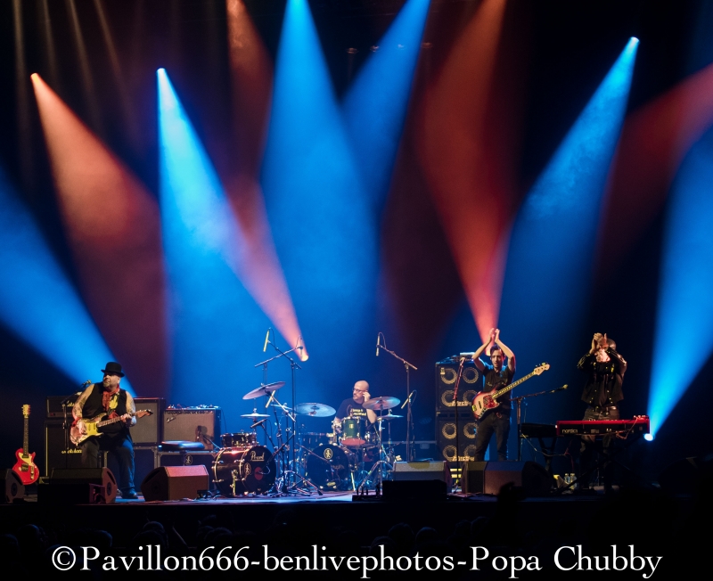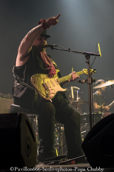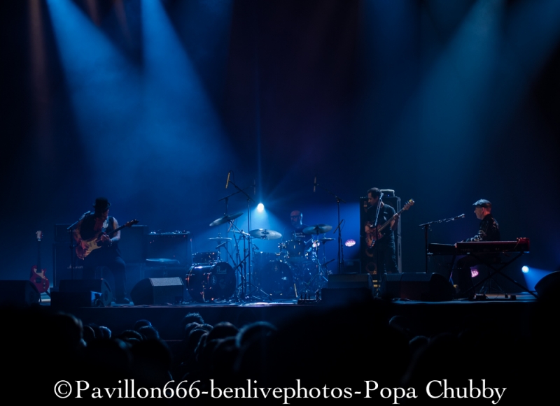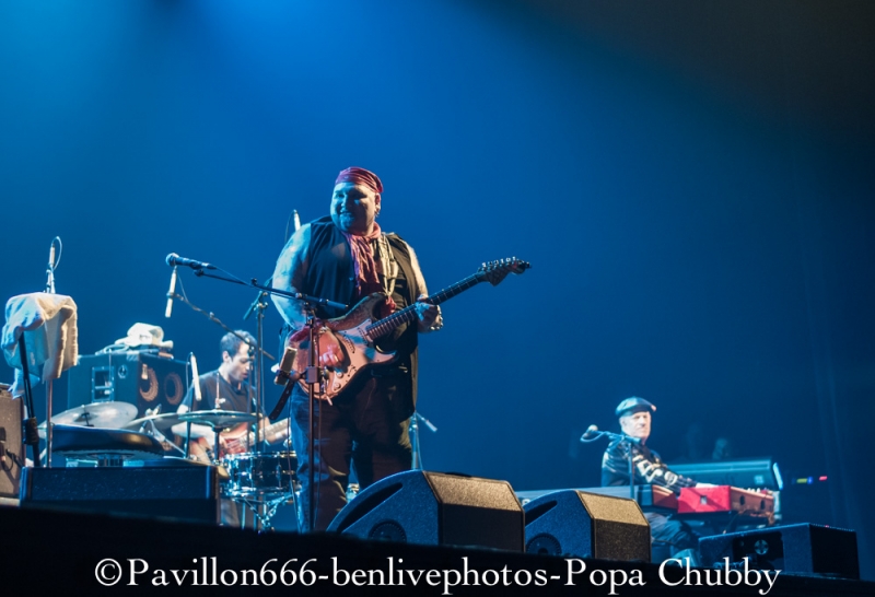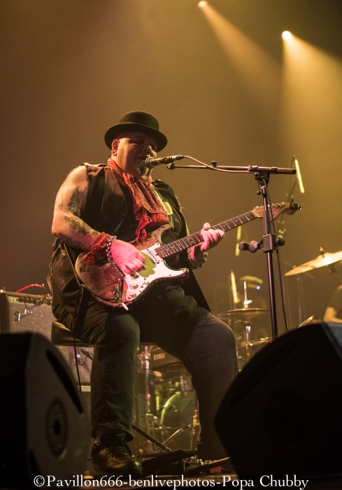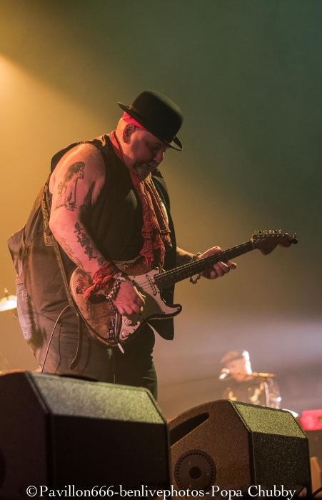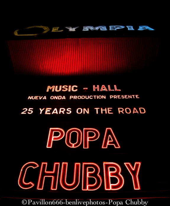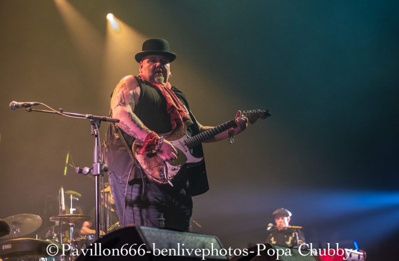 Popa Chubby c’est ce guitariste blues/rock plutôt bien portant, avec une guitare Fender bien abimée … mais surtout avec un talent incroyable ! Habitué des tournées (cela fait 10 ans qu’il visite le monde), ce n’est pas cette sublime salle de l’Olympia qui va l’impressionner pour montrer ce qu’il sait faire avec sa Stratocaster. Mais, petite surprise, il y aura une première partie, qui n’était pas annoncée. Il s’agit de Dave Keyes, clavieriste expérimenté qui partagera aussi le set de Popa Chubby. Son registre musical est donc orienté blues, le talent est évident. Sa voix est parfaite pour ce style mais le public attend un show un peu plus rock’n’roll. Il sera fortement applaudi car l’audience sait reconnaitre les artistes à leur juste valeur. Après un entracte de 20min, entre en scène notre star du soir, à savoir Popa Chubby, vêtu dun chapeau melon. Acclamé par la foule venue massivement, il ne tergiverse pas longtemps, attrape son instrument fétiche et se lance joyeusement dans son set. Dès les premiers accords, Popa Chubby nous met dans l’ambiance du blues/rock bien entrainant. On se rend compte qu’il n’a pas qu’une dextérité ahurissante mais aussi une voix bien adaptée à ce style. Les premiers morceaux dont le fameux “Working class blues” encensent la foule, d’autant plus qu’il est suivi de “Hey Joe”, fameux morceau d’Hendrix. Une des choses les plus surprenantes reste le fait que même cloué sur son tabouret, ce type bouge énormément. Ses mimiques et ses expressions rendent le show encore plus vivant. Il se lèvera pour s’approcher du bord de la scène en jouant quelques “leaks”, ce qui ravira les personnes placées au premier rang. Il jouera aussi quelques morceaux de son dernier album “I'm Feelin’ Lucky (The Blues According to Popa Chubby)”, en faisant rire l’audience en annonçant le titre “Put your pant on One leg at a time” enchainé de “Rock on bluesman”. Ce dernier titre est un peu long, certaines parties rythmiques auraient pu être remplacées avec quelques soli, pour moins perdre en intensité. Mais l’utilisation d’une Wah-Wah et d’un bottle neck sur d’autres titres permet à Popa Chubby d’avoir un son qui accroche merveilleusement auprès du spectateur. Popa Chubby n’est pas seul, et il honore Dave Keyes en le laissant faire une nouvelle démonstration au clavier. Enfin, son set se terminera en enchainant “Little wing” et “Hallelujah” ainsi qu’une épique battle entre lui-même et le bassiste. Il finira par lâcher sa guitare pour faire de nouveau une battle avec son batteur en étant lui-même derrière une seconde batterie prévue à cet effet. Sa polyvalence plait aux spectateurs qui l’acclament de nouveau sans concession. Popa Chubby et ses acolytes nous auront donc jouer un set d’environ 2h passées plutôt vite, en ayant su nous faire partager son talent ainsi que son humour. Les spectateurs repartiront donc comblés et prêt à revenir le voir ... peu importe le jour ! Merci donc a l’équipe de Pavillon 666 ainsi que Sophie de l’Olympia pour l’accréditation. |