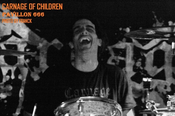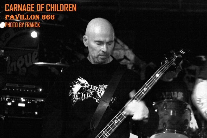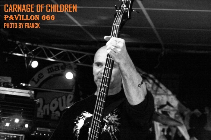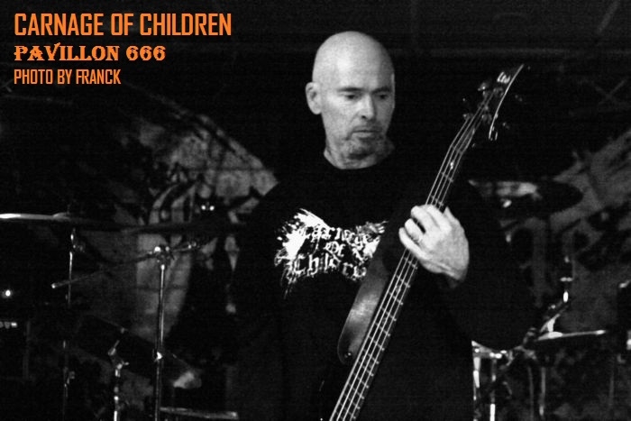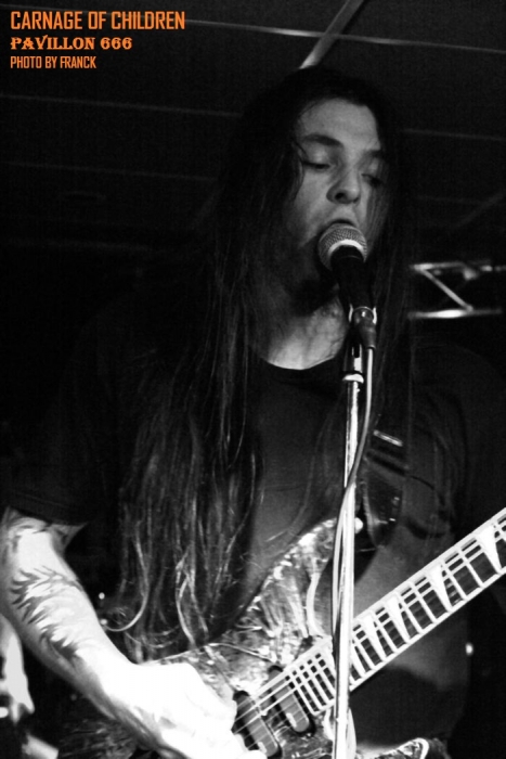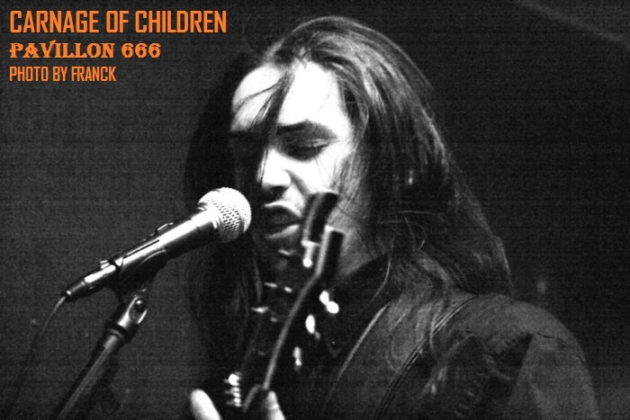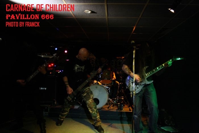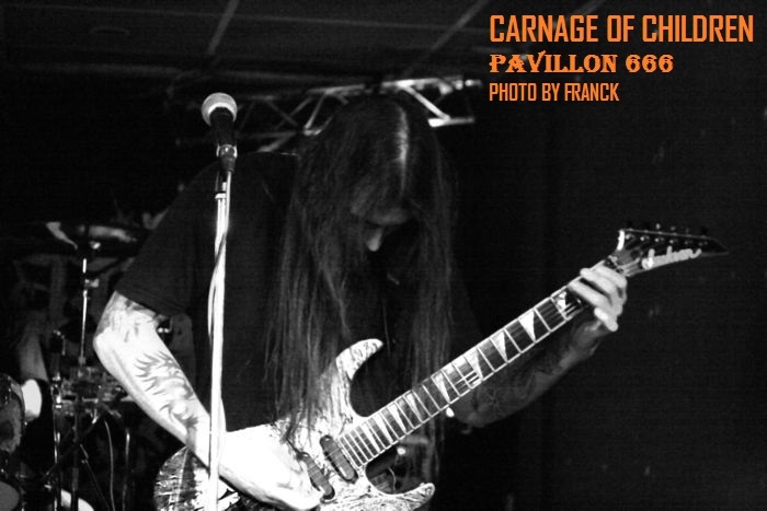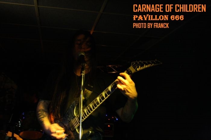 Non, nous ne sommes pas au cinéma, mais à l’Hôtel de la musique. De plus, avec ces affiches qui changent en permanence, j’ai raté le premier groupe (Zabrok) car pour moi au départ il n’y en avait que deux. Par conséquent c’est bien dommage, je m’excuse auprès de vous les Zabrok, mais il n’y aura ni chronique, ni photos. Une prochaine fois peut-être. Lorsque j’arrive, je retrouve Pascal, manager et bassiste des Carnage Of Children, au four et au moulin. Je me dis que l’organisation, ça ne devait pas être tout à fait ça, mais bon ça fait partie du folklore du métier. Du coup ça se met doucement en place et ce sont les Lyonnais de Spitfire qui vont prendre place sur scène. Les Spitfire sont un groupe de Heavy Metal qui avait été remarqué lors du Head Bang Contest, tant et si bien qu’ils se sont qualifiés pour la finale régionale de ce tremplin qui se déroulera le samedi 4 avril à la MJC Ô Totem de Rillieux (69). Le quintet lyonnais attaque donc son set sur la petite scène de l’Hôtel de la musique, où c’est vrai qu’il n’est pas facile de bouger sans débarrasser la moitié du plateau, mais ça le fait. Laurent en bon frontman qui se respecte, attaque tout de suite en bord de scène au contact du public. Alban derrière ses sunglasses ne lâchera rien tout au long du set et assurera une rythmique impeccable à la gratte. Tout au fond, dans l’obscurité quasi-totale, Nico se la donne sur sa batterie et envoie la mesure au gré des titres dans un style très carré. Sur la gauche de la scène, c’est l’éclate. Matt à la lead guitar et Axel à la basse forment le binôme parfait. On sent que Matt se fait vraiment plaisir. Je n’ai pas une seule photo de lui où il ne sourit pas. C’est un excellent guitariste très complémentaire à la rythmique d’Alban et en plus il envoie d’excellents solos dans lesquels il s’applique à mettre une praline maximum. Il possède de très belles guitares et sait parfaitement s’en servir. Il est l’un des piliers de cette formation et à aucun moment il n’égratigne son rôle. Très bon feeling, très bon son, il est plaisant à regarder et à écouter jouer. Pendant ce temps, Laurent essaye de chauffer un public malheureusement clairsemé car il n’y a pas foule. Toutefois, les personnes présentes jouent le jeu et du coup la soirée va prendre une teinte familiale plutôt agréable. Finalement, on peut dire que la magie a finalement fini par opérer. Le changement de plateau ne sera pas trop long. Juste quelques problèmes sonores vont retarder les carnages. Il faut dire qu’au vu de l’acoustique de l’Hôtel de la musique, ils ont opté pour une solution bien plus intelligente et bien plus pro. Ils vont simplement jouer avec la puissance de leurs amplis qui est largement suffisante pour le lieu en laissant juste les voix et le kick de la batterie passer par les façades. Ainsi, le son sera bien plus clean et puis en plus cela n’a guère d’importance vu que les retours ne fonctionnent plus. La particularité de ce concert des Carnage Of Children, est qu’ils sont revenus à une formation de quatre. En effet, depuis le départ de leur chanteur, c’est Gary et Hugo qui ont repris le chant, comme à l’ancienne époque. Ce n’est pas si mal par ailleurs car j’ai trouvé que Hugo avait vraiment des prépondérances particulières pour le chant. Gary est un vrai technicien de la guitare. Il fait suffisamment de choses complexes pour se consacrer pleinement au chant. Toutefois, les Carnage Of Children démarrent un set absolument costaud, avec un son nickel de chez nickel. Pourtant, Raoul qui envoie du très très lourd derrière ses futs ne bouffe absolument pas le son de ses équipiers. Ce qui prouve que l’idée de jouer de cette manière était judicieuse. Alors bien entendu, nous allons revisiter avec plaisir un bon nombre de titres de « Way of darkness » et de « Extinction », mais également de nouveaux morceaux. Carnage Of Children nous a réservé ce soir une sorte de concert test où des titres musicalement très complexes, élaborés par le Sieur Wolfgang Amadeus Gary, vont nous être dévoilés. Je vous jure que pour écrire des morceaux pareils, il faut vraiment le vouloir… Nous avons visité des registres et des performances que nous n’avions jamais encore vues et entendues chez Carnage Of Children. On s’aventure sur presque tous les terrains musicaux y compris le classique. Une expérience totalement passionnante. Evasion garantie. Le prochain album qui est en préparation s’annonce plein de surprises. Quoiqu’il en soit, l’histoire continue sur scène pendant ce temps-là. Les standards s’enchaînent avec Hugo et Gary qui s’échangent le chant. Gary nous fait encore de mortelles démonstrations de sweeping pendant que Pascal, la plaque tournante du groupe envoie le feu à la basse sans bouger d’un millimètre. Quoi qu’on en dise, quoi qu’on en pense, les Carnage Of Children nous ont balancé ce soir un set absolument remarquable teinté d’humour bon enfant. Il aura quand même fallu que Gary place sa blague du schtroumpf. Pour parachever le tableau, Gary nous sortira même la 7 cordes pour un tout nouveau morceau dont pour l’instant il ne connait les paroles qu’en araméen je pense, mais ce sera tout de même excellent. Bravo les Carnage Of Children, vous nous avez fait plaisir, vous nous avez gâtés ce soir à l’Hôtel de la musique. C’était presque soirée de gala version ambiance familiale. Je tiens à remercier Laurent des Spitfire et Pascal des Carnage Of Children d’avoir convié Pavillon 666 à partager cet excellent moment de musique. Merci également à l’Hôtel de la musique pour son bon accueil habituel dans ses locaux. |