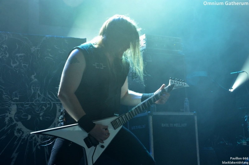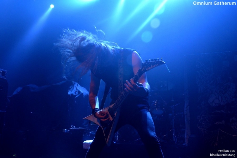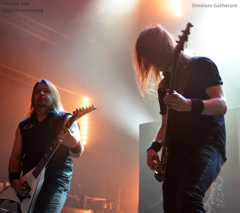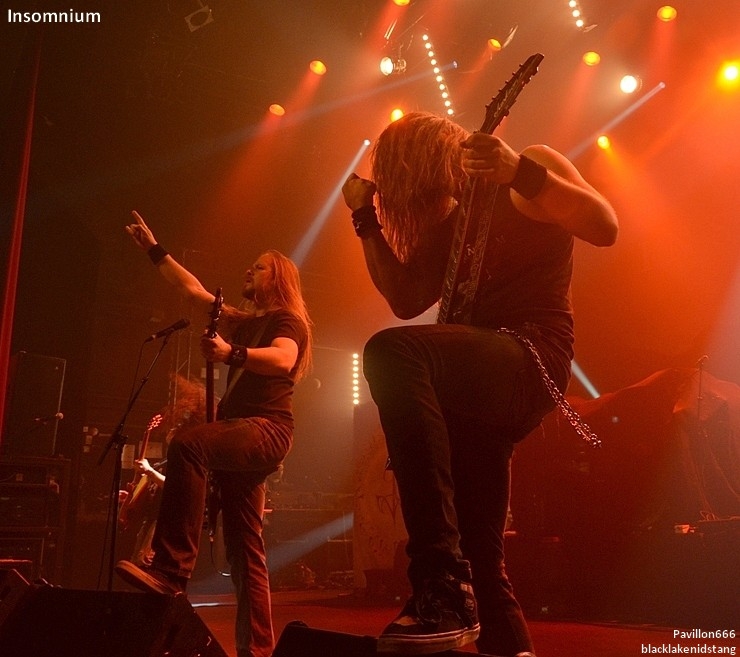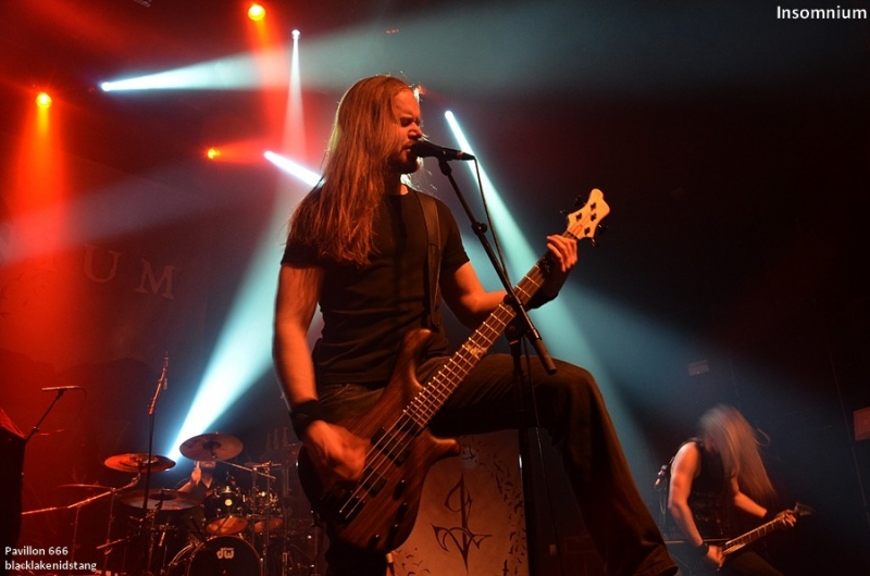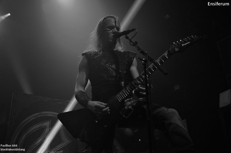 L’annonce de la tournée rassemblant Ensiferum mais également Insomnium et Omnium Gatherum m’a donc plongée dans une grande joie : celle de pouvoir assister lors d’une seule et même soirée à trois sets pleinement attendus. En effet, grande amatrice de melodic death metal, un tel line-up ne pouvait que représenter un événement immanquable. C’était donc pour moi la troisième occasion de voir les Finlandais d’OMNIUM GATHERUM. Après n’avoir été que peu séduite en 2011 lors du Neckbreakers Ball Tour mais bien plus captivée l’été dernier (cf. mon report du SummerBreeze 2014), ils m’ont, durant cette soirée strasbourgeoise, totalement convaincue. Il faut bien dire qu’au fil des écoutes, Beyond, leur dernier album, a fini par me persuader du talent de ses compositeurs – un talent peu éloigné de leurs compatriotes d’Insomnium pour qui je ne taris jamais d’éloges. Le concert débutant par l’introduction de l’album ("Luoto") promettait un set à la hauteur de cet album, ce qui était déjà quasiment chose faite lors de l’exécution de "New Dynamic" ou encore de "The Sonic Sign". Mais c’est pour moi "The Unknowing" qui a pourtant représenté le moment fort de ce concert grâce à sa sublime progression lancinante. Ceux préférant leur album de 2011 en auront également eu pour leur compte grâce à la présence d’"Everfields", "New World Shadows" et "Soul Journeys" dans la setlist. Je regrette toutefois légèrement le growl de Jukka Pelkonen qui, bien que non-handicapant, ne constitue pas un point fort du groupe (ce qui se remarque déjà en version studio). Mais le groupe que j’attendais le plus ce soir-là était un autre groupe de melodic death finlandais… INSOMNIUM pour moi, aux côtés d’In Mourning et Be’lakor, représente l’excellence d’aujourd’hui de ce genre mythique issu de la belle ville suédoise qu’est Göteborg. En d’autres termes, Insomnium est l’un des groupes que j’apprécie le plus. A ce titre, et parce qu’il s’agissait également de la troisième fois que j’avais l’occasion de voir cette formation, mes attentes étaient immenses. Cependant, une légère crainte s’est formée dans mon esprit lorsque j’ai appris que Ville Friman ne pourrait pas faire partie de la tournée. En effet, en plus de perdre un guitariste, Insomnium perdait également un excellent chanteur (voix claire). Mais son remplaçant, l’inconnu Kari Olli, s’est révélé à la hauteur. Malgré une puissance moindre en comparaison du membre originel, Olli a su placer sa voix sans accroc et nous a même offert une sublime introduction quasi-a cappella du superbe morceau "Where the Last Wave Broke". Bien entendu, je regrette une durée de jeu trop courte et une setlist qui aurait pu être encore plus parfaite, quoiqu’elle avait l’avantage d’être bien différente de celle de l’été dernier au SummerBreeze (pour varier les plaisirs). "The Killjoy", "While We Sleep", "Black Heart Rebellion", "The Promethean Song", "Ephemeral", "Weighed Down with Sorrow" sont autant de brillants morceaux joués durant la soirée. Insomnium a donc livré à son public strasbourgeois un concert exceptionnel, dont je me souviendrais encore longtemps. Ce sont ensuite les notes de "March of War", l’introduction du nouvel album d’ENSIFERUM, qui ont résonné dans La Laiterie, avant d’enchainer sur ses deux premiers titres. Ce troisième groupe finlandais de melodic death – cette fois influencé folk metal – est également un groupe que j’apprécie énormément, à ceci près qu’il s’agissait pour moi de ma 6ème expérience de concert en leur compagnie. Je savais ainsi d’avance qu’il serait énergique et puissant et que j’allais passer un très bon moment. Sans surprise, la tête d’affiche nous a livré une excellente prestation puisqu’elle a réussi, comme à son habitude, à véhiculer sa passion et joie d’être présente. Le concert ne s’est toutefois pas révélé parfait à mon sens puisque le choix des morceaux joués aurait pu se montrer plus judicieux. Tout d’abord, si je n’ai rien à redire sur "Axe of Judgment", "Heathen Horde" et "Warrior Without a War", la quasi-reprise de Boney M. présente dans "Two of Spades" n’est pas de mon goût. Certes, la mélodie attire l’attention et une bonne ambiance était présente dans le public mais je ne parviens pas à intégrer le fait que ce morceau n’est en rien une blague mais au contraire l’un des morceaux phares du nouvel opus. D’autre part, si Ensiferum a eu le mérite de jouer d’anciens morceaux ("Token of Time", "Little Dreamer (Väinämöinen Part II)", "Iron" et "Into Battle"), je regrette de n’avoir toujours pas entendu "Tale of Revenge" et "Lost in Despair". De plus, dans la mesure où mon album préféré d’Ensiferum est Victory Song, je considère qu’il s’agit d’une véritable aberration de ne pas avoir joué "One More Magic Potion" (et "Wanderer"), qui représente toujours pour moi le meilleur moment d’un concert d’Ensiferum… Seuls "Ahti" et "Victory Song" étaient présents dans la setlist. Seconde aberration à mon sens : pas de "Twilight Tavern", autre morceau phare des Finlandais. On aura ainsi compté "From Afar" et "Smoking Ruins" issus de l’album de 2009 et "In My Sword I Trust" et "Unsung Heroes" issus de l’album sorti en 2012. Ce qui m’aura donc véritablement énervée au cours de ce set est le « bonus » choisi par Ensiferum… quel intérêt de faire une reprise de Judas Priest alors qu’il y aurait eu le temps de jouer un morceau bien meilleur à la place ? Quitte à vouloir reprendre un titre, autant faire sourire le public avec "Bamboleo" des Gipsy Kings… Enfin, ma dernière critique concerne l’apparition d’un intrus sur scène. Emmi Silvennoinen, la claviériste, ne pouvant pas être présente lors de cette tournée, elle a été remplacée par une… accordéoniste (Netta Skog). Cela si