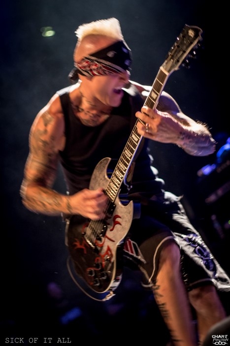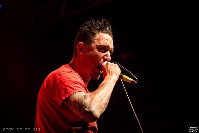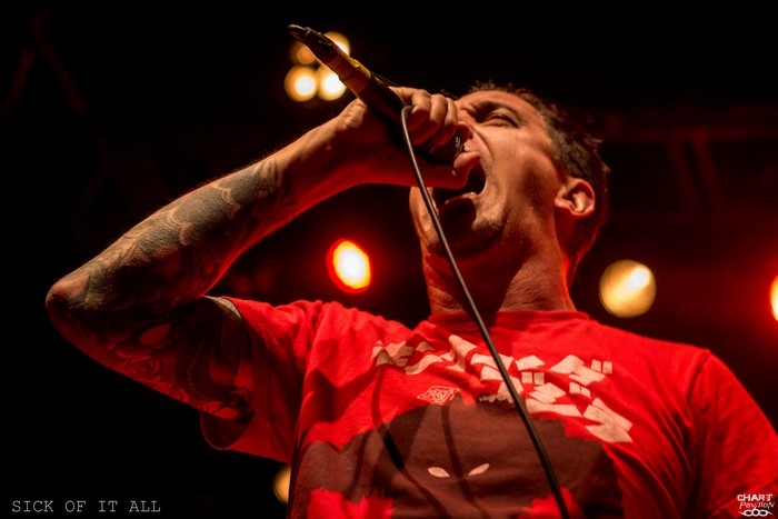 Place maintenant aux New-yorkais, les vétérans du hardcore qui officient depuis 30 ans sans lâcher la bride, SICK OF IT ALL. Malgré les années, le quatuor a tenu la barre et maintenant celle-ci est vraiment passée très haute. SICK OF IT ALL, c'est l'énergie du punk et du hardcore à l'état pur. La vitesse, le groove et la lourdeur se donnent rendez-vous sur des morceaux courts mais d'une intensité rare. Je ne crois pas qu'il existe beaucoup de groupes capables de rivaliser avec une telle déferlante. Les frères KOLLER, à la guitare et au chant tiennent la scène comme personne. Pete KOLLER, malgré les années qui passent, tient une forme incroyable, sautant de partout et occupant l'espace comme personne et sans la moindre fausse note. De quoi renvoyer pas mal de jeunots dans les cordes ! Il faut s'appeler Angus YOUNG pour pouvoir rivaliser avec cet homme ! La déferlante de morceaux est totalement renversante et ce set aura raison de ce qui reste d'énergie dans le pit avec un point d'orgue avec le titre mythique, « Step Down ». Voilà une prestation rafraîchissante et intense comme on en aimerait à répétition ! SICK OF IT ALL est un monstre sur scène qu'il ne faut rater sous aucun prétexte !