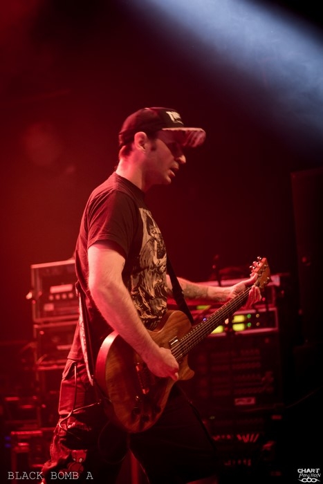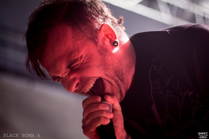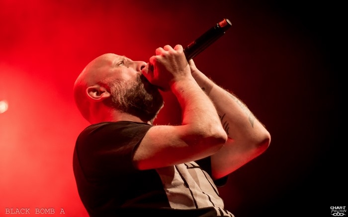 C'est BLACK BOMB A qui prend la relève avec son hardcore ravageur. La présence d'Arno et Poun au chant apporte une dynamique visuelle qui comme d'habitude fait son effet. Il est évident que sans ces deux-là, BLACK BOMB A ne serait pas tout à fait le même groupe tant ils apportent une énergie incroyable. Il n'y a qu'à observer Poun se tortiller dans tous les sens pour comprendre. D'ailleurs, le retour d'Arno au chant est une aubaine pour BLACK BOMB A tant ces deux-là se complètent à merveille. Les avoir sur cette affiche et à ce niveau là est fort rafraîchissant. On nous a promis une bonne soirée sur le papier et dans les faits c'est incontestablement réussi. Même s'il est encore un peu tôt, le Transbordeur s'est bien rempli et la fosse explose déjà à grands coups de circle pit et de wall of death.