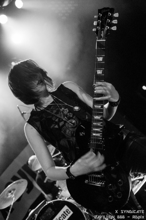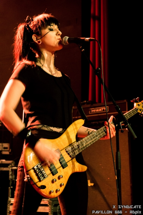 Le groupe est composé de 4 filles bien déjantées qui se partagent les micros ainsi que les instruments à cordes. Le seul chromosome Y sur scène était le batteur qui s’est fait discret derrière ses fûts sans néanmoins rater le moindre temps. Le groupe joue dans un registre naviguant entre un métal bien construit et un punk rythmé par certains passages aux sonorités plus proches du hardcore. Et le tout a franchement de la gueule. Force était de constater que les filles qui ne payaient pas de mine en arrivant sur scène nous ont tous scotchés sur place. Leur set d’une puissance incroyable a su mettre tout le monde d’accord. Chaque morceau était ponctué par des acclamations sincères et les encouragements de la foule.
