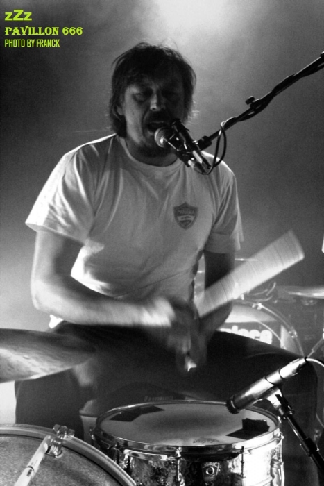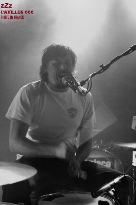 Médiatone a concocté un menu peu commun et éclectique pour illustrer une affiche haute en couleur avec en tête les New-yorkais de « A Place To Bury Strangers » et en première partie, les Amstellodamois de zZz. Les Néerlandais de zZz démarrent leur set plein pot et carrément en bord de scène. Un poil encore devant et ils étaient dans la salle. Le groupe n’est pas à la dimension d’un orchestre philarmonique puisqu’ils ne sont que deux, un batteur qui est aussi au « chant » et un clavier (synthétiseur, orgue et tout le saint frusquin…). Leur musique est vraiment étonnante autant que détonante. C’est une musique à la fois électro dark et en même temps très psychédélique. Les rythmes sont hyper soutenus et le batteur frappe comme une boîte à rythme. Il n’y a pas d’effets de style et l’ensemble est assez brut de décoffrage, ce qui est vraiment intéressant car cela permet de replacer la musique tendance électro à une échelle humaine et non pas à des programmes informatiques, des samplers etc. Le clavier se déchire complètement sur ses instruments produisant des sons complètement hypnotiques allant de l’ultra moderne jusqu’au son d’orgue des sixties mixant lui-même ses sons, créant l’atmosphère qui fait que zZz est à la fois un groupe avec un groove énorme conduisant vers la transe extrême, tout comme un groupe à la musique plus ambiante, plus planante, qui emmène l’auditeur loin de lui-même. Une bien agréable prestation des Néerlandais de zZz avec qui j’aurai passé un très bon moment pour cette première partie. Comme je le dis toujours, ce n’est pas parce que nous sommes à Pavillon 666 que nous ne chroniquons que du Metal, bien au contraire. Nous sommes ouverts à tous les horizons et à toutes les musiques de ce monde car nous sommes avant tout des passionnés et s’il fallait chroniquer « Le Mystère Des Voix Bulgares », croyez moi que c’est avec plaisir que je le ferais. Bref, la soirée avance et A Place To Bury Strangers tarde un peu à monter sur scène et c’est malheureusement maintenant que l’histoire va commencer à déraper. Une fille complètement défoncée arrive comme une furie devant la scène en éjectant les personnes à côté de moi, pose sa pinte de bière sur la scène et commence à s’amuser à recracher la bière qu’elle boit sur le matos du guitariste et cela plusieurs fois de suite. Pendant plus de dix minutes elle va s’amuser à triturer tous les potards des effets du guitariste, appuyant avec furie sur les switch des pédales, tripotant la guitare sur laquelle elle a copieusement craché. Difficile de dire quoi que ce soit car la fille semble complètement défoncée aux acides et les réactions sont parfois assez imprévisibles. Bref, les membres de A Place To Bury Strangers prennent soudainement d’assaut la scène du Marché Gare et c’est dans une ambiance sonore totalement noisy et sauvage que le concert commence. Les membres du groupe sont totalement déchainés, ils sont dans une sorte de transe difficile à palper. Saturation Fuzz et larsen, basse rugueuse et lourde, batterie du genre entreprise de démolition, c’est l’hystérie sur les planches comme dans la fosse. Le guitariste et chanteur n’attendra même pas le troisième morceau pour choper le manche de sa gratte à deux mains et la fracasser sur la scène. Regardez bien le peu de photos que j’ai pu faire du groupe qui ne sont malheureusement pas très bonnes car je n’ai pas eu le temps de me caler pour en faire d’autres, mais vous verrez que la partie supérieure de sa gratte est cassée, il en manque des morceaux. A Place To Bury Strangers pratique une musique violente et vindicative chargée d’une étrange énergie qui renvoie certains groupes que l’on qualifie de malsains à leur couche culotte. La scène semble être un véritable exutoire pour ces Américains totalement borderline. S’ensuit les incidents qui vont mettre fin à ma présence à ce concert. La fille hystérique qui crachait de la bière sur le matériel du guitariste est devenue maintenant complètement hors contrôle. D’un coup elle balance sa pinte de bière encore à moitié pleine sur moi. Je ne vous dit pas l’état de mon matériel photo et dans la foulée, je ne comprends pas ce qu’elle fait, il semble qu’elle tente de monter sur scène et fait tomber le pied de micro du guitariste, dont je vais recevoir la barre de réglage en plein dans l’œil gauche et après sur mon reflex, ce qui va déboîter mon objectif. Fantastique !!! J’ai dû partir immédiatement, tout d’abord parce que je ne voyais plus rien et la douleur était intense et aussi pour protéger mon matériel photo. C’est lamentable… Bien. Cette chronique étant terminée, je tiens quand même à remercier l’équipe de Médiatone pour l’accréditation à ce concert. Par contre, je ne comprends pas comment fonctionne la sécurité dans cette salle car j’ai vu des agents surveiller les chiottes au lieu d’être au bord de la scène pour éviter que l’on crache et que l’on maltraite le matériel des musiciens. Je ne suis pas allé voir aux poubelles, mais peut-être y avait-il un agent de sécurité en embuscade ici aussi. De la vraie science fiction quoi !! |