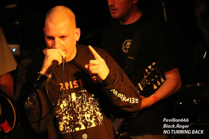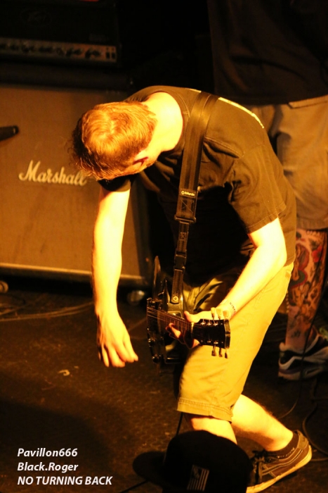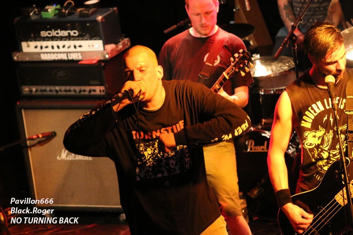 La tension monte dans le public, la chaleur aussi. Au bar c’est la guerre pour se faire servir, sur scène on s’active pour installer le groupe suivant, les fameux NO TURNING BACK qui ont déjà eu l’occasion d’enflammer les « coreux » Lyonnais à plusieurs reprises.