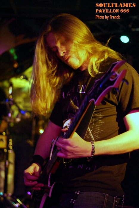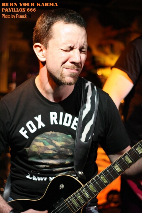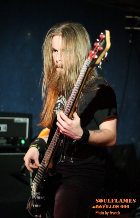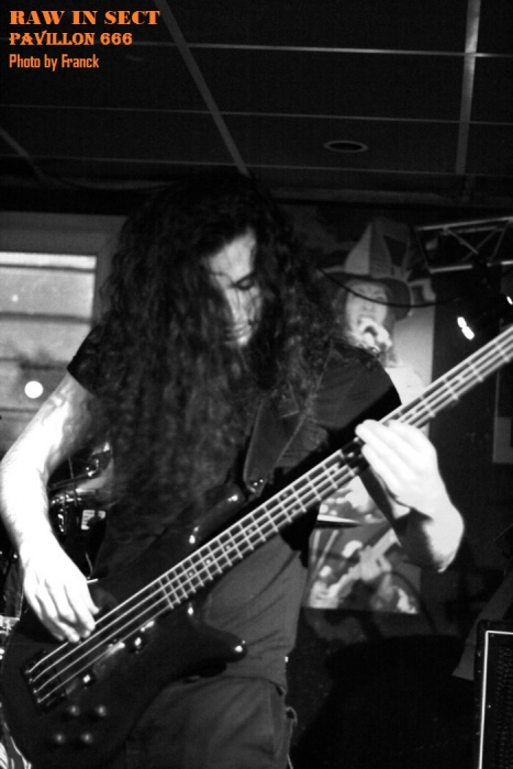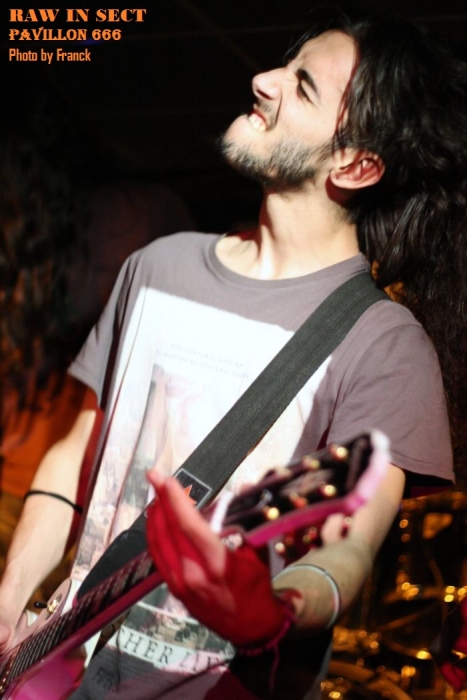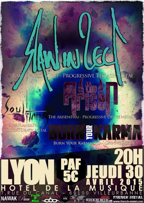 Au programme ce soir, quatre groupes aussi différents les uns que les autres, avec une grosse tête d’affiche, les Grecs de Raw In Sect, sans oublier les Lyonnais de The Arisen qui font la release de leur EP « Rising Times ». Le début de la soirée tarde un peu car ça patine point de vue technique et les derniers réglages sont longs à faire. Ce sont donc les Lyonnais de Soulflames qui vont ouvrir le bal. Ils sont bons ces petits Lyonnais et ils envoient déjà du lourd. Sur scène, leur musique possède vraiment un bon groove et ils déroulent un très bon death metal mélodique tout au long d’un set qui est déjà bien au point. David et Julien se partagent les assauts de guitares entre rythmiques et solos et les riffs fusent sur la crête de sons bien saturés. A la batterie, c’est Thibault qui envoie le tempo et son coup de baguette est rapide. Sylvain à la basse, que l’on retrouvera également sur scène avec The Arisen, assure des lignes mélodiques d’enfer avec sa 5 cordes. Arnaud, c’est le frontman et il envoie sévère le garçon, on ne peut pas dire qu’il ne mouille pas le maillot. Sa prestation vocale est un véritable aboiement digne des chiens de l’enfer. Il est sans cesse en mouvement et n’hésite pas à aller au contact du public, ni non plus à aller carrément dans le public pour inciter tout le monde à bouger. Il fait une excellente prestation et du coup hausse le groupe de plusieurs crans quant à leur prestation scénique. Les Soulflames sont un nom à retenir, je pense que nous les reverrons très bientôt. Le second groupe à prendre la main sont les Stéphanois de Burn Your Karma. Rien qu’au son, on sent déjà le groupe plus expérimenté. Un très gros son, un super bon metal très groovy, attention, ça castagne à mort. Le quintet de Sainté est vraiment un groupe très accrocheur. Ils vont nous faire une excellente prestation scénique. Les guitares de Julien et de Bertrand ont un son totalement monstrueux. A la basse, Benoît cogne sur son instrument comme si c’était une batterie. Laurent à la batterie ne sert pas de ses fûts comme une basse mais plutôt comme d’un véritable défouloir où il allie puissance et régularité. Burn Your Karma à l’expérience de la scène et cela se voit et s’entend. Ils ne lâchent rien et nous tiennent en haleine jusqu’à la fin de leur set. Seules quelques petites phrases tombent teintées d’humour avec quelques petits pics bon enfant et le tout enrobé d’une excellente musique. Xavier au chant est un frontman impressionnant. En tout premier lieu par sa stature, mais surtout grâce à sa voix vindicative et sauvage. C’est un véritable orage qui gronde lorsqu’il s’empare du micro. Il est toujours en mouvement et exhorte sans cesse le public à s’approcher de la scène et à bouger. Ce groupe possède vraiment un bon feeling et tous les aficionados de Pantera, Lamb Of God ou autre Soulfly y retrouveront leurs billes. C’est au tour d’une des affiches les plus attendues de ce soir d’entrer en scène : The Arisen. Nous ne présentons plus certains membres qui composent ce combo, comme Kevin Paradis à la batterie ou encore Jordan Bonnevialle, guitariste de Deathawaits. Enfin bref, il y a du beau monde sur scène, ou du moins des personnes qui ont du talent. Ce qui est d’autant plus impressionnant c’est qu’il s’agit là de la seconde prestation scénique de The Arisen qui sort déjà son premier EP. C’est vous dire le niveau. Les garçons ont sorti l’artillerie lourde pour le set. Jordan est armé d’une 8 cordes tandis que Clément n’en a que 7. C’est normal, il est moins grand et moins balèze que Jordan, donc moins de cordes. Trêve de plaisanterie, ça envoie du lourd dès les premières mesures et c’est vraiment du technique de chez technique. Alors après je suis d’accord, ce n’est pas forcément tout le monde qui va accrocher, mais lorsque l’on veut bien se donner la peine d’écouter attentivement, il y a une richesse musicale chez The Arisen qui est impressionnante. Je me permets de les comparer à ce que fait actuellement Carnage Of Children. A quelques détails près ils sont sur la même longueur d’onde. Il faut juste que Carnage retrouve un nouveau chanteur. Jordan au chant, ça le fait très bien. De la grosse voix death à la voix la plus claire en passant durant le set par tout un stade de niveaux de voix. Ce que fait Jordan est vraiment intéressant et colle carrément à l’empreinte sonore de The Arisen. J’espère qu’ils ne vont pas y toucher et tout laisser comme ça car cela fonctionne très bien. Par contre, techniquement et là je parle pour les compositions, c’est rude. Les morceaux sont en effet particulièrement complexes à interpréter. Il y a beaucoup de ruptures de rythmes et les guitares aux accordages graves contrastent avec les lignes mélodiques utilisant le système tonal. A la basse, c’est le même service. Sylvain Colon que nous avions déjà entendu en début de soirée avec Soulflames est lui aussi monté de plusieurs crans à la basse. Vocalement, il est également présent, assurant les contrechants derrière la voix de Jordan. Les compos de cet EP jouées sur scène prennent une autre dimension et s’inscrivent au rang des réussites du moment sur la scène death progressive. Avec les expériences personnelles et cumulées des quatre membres de The Arisen, ce set est un sans faute et une release party qui remplit donc toutes ses promesses. Pour clôturer cette soirée, ce sont les Grecs de Raw In Sect qui vont entamer leur set. C’est la grosse affiche de ce soir avec The Arisen et ils sont attendus, surtout par moi qui ne les connais que de youtube et qui attends avec impatience de voir ce que cela donne sur scène. C’est parti, les Grecs partent à l’assaut avec une musique qui dépareille vraiment avec les groupes qui les ont précédés. Nous sommes dans un metal purement progressif 